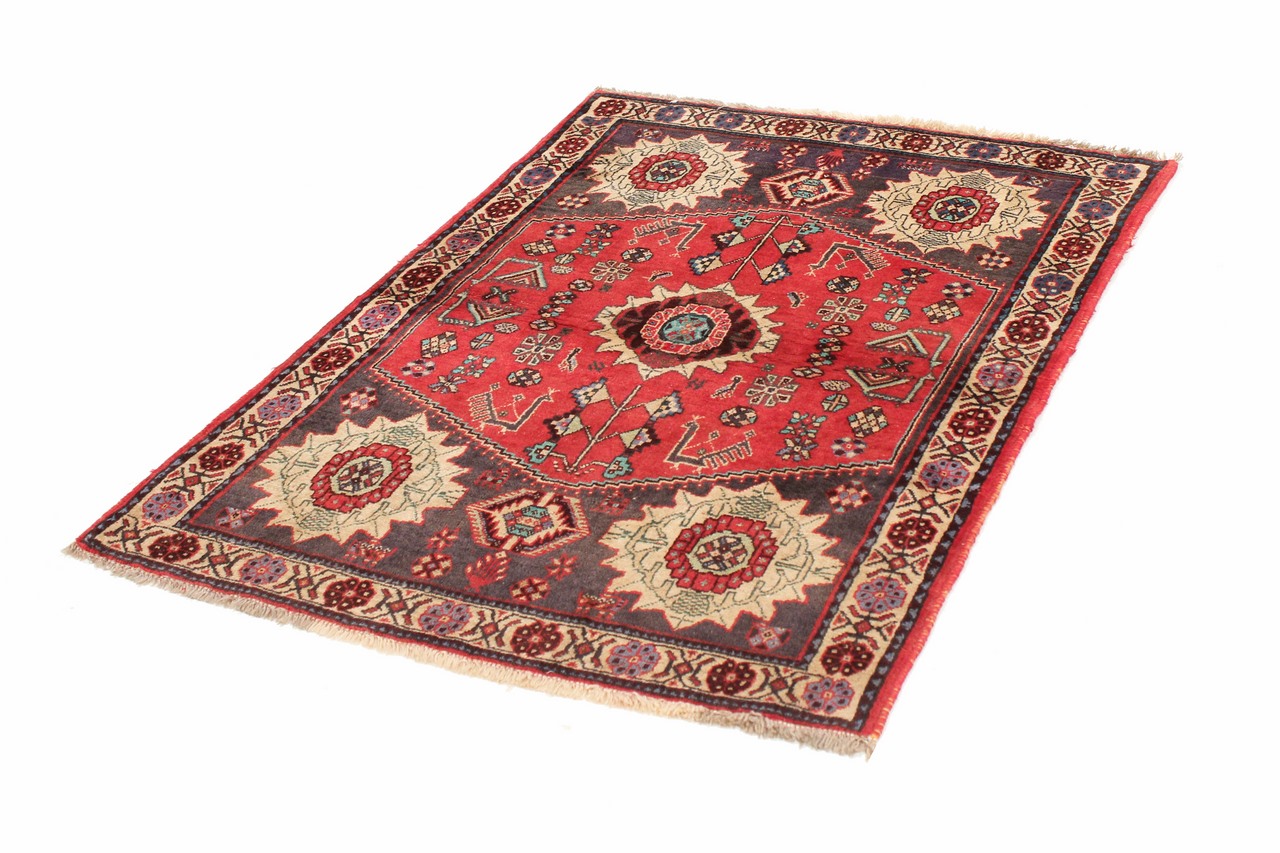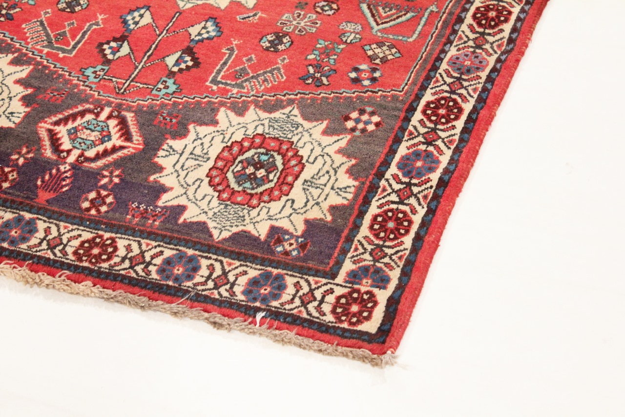 This rug belongs to village and nomadic rugs from Iran, formerly Persia. This type of rug is knotted by hand in smaller towns and villages in old tradition. Even nomads still knot Persian rugs in the open air. The rugs are knotted without a draft and completely from the mind. They are characterized by classical ornaments, which are arranged in straight and geometrical patterns. Thanks to their cultural-traditional origin, these rugs have a unique character that embodies ancient Persia.