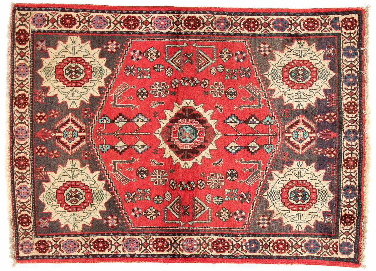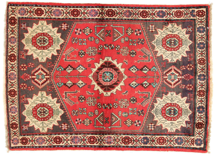 Carpet ID: 7836003641 Size: 143x103 cm Thickness: ap. 12 mm Knot density: 128 000 - 160 000 / m² Manufacturing: Knotted by hand Pile: Handspun wool Warp: Sheep wool Origin: Persia Age: 20-30 years Weight: ap. 4 kg Also know as Qashqai, Gaschgai, Gashghai, Kashgai In stock: Unique - Only 1 in stock