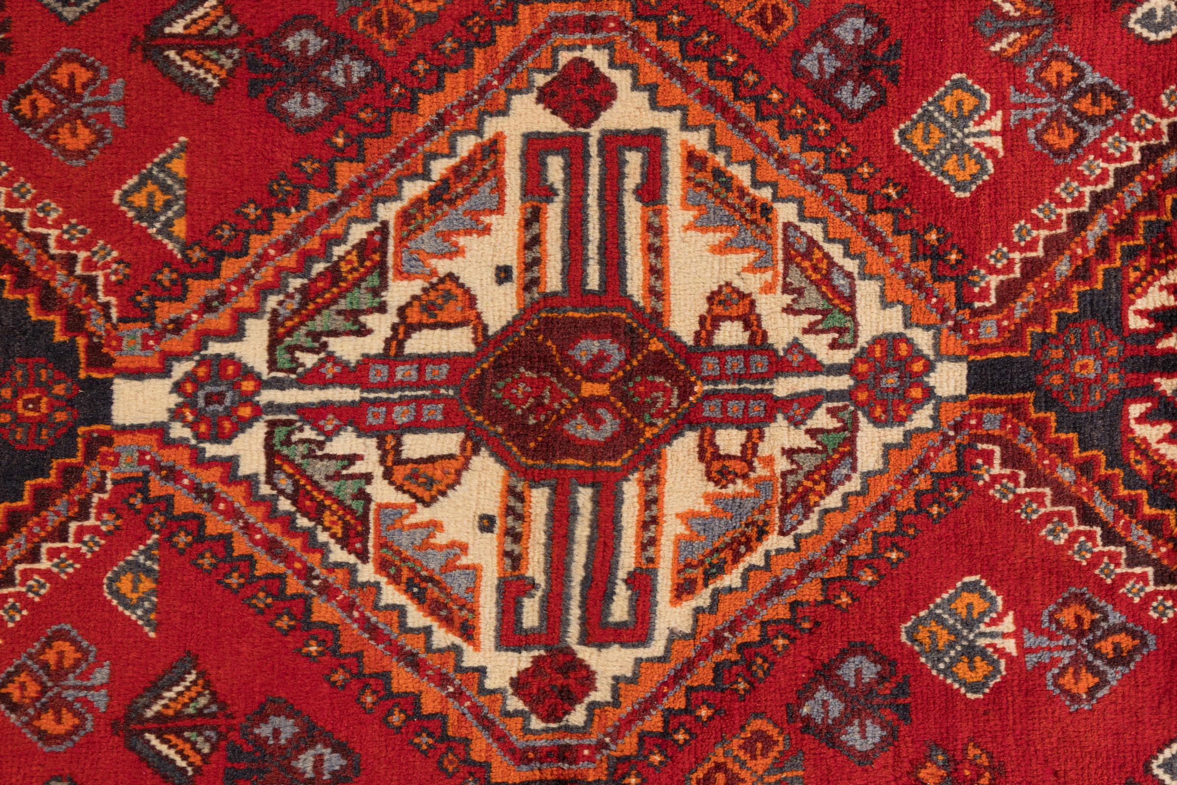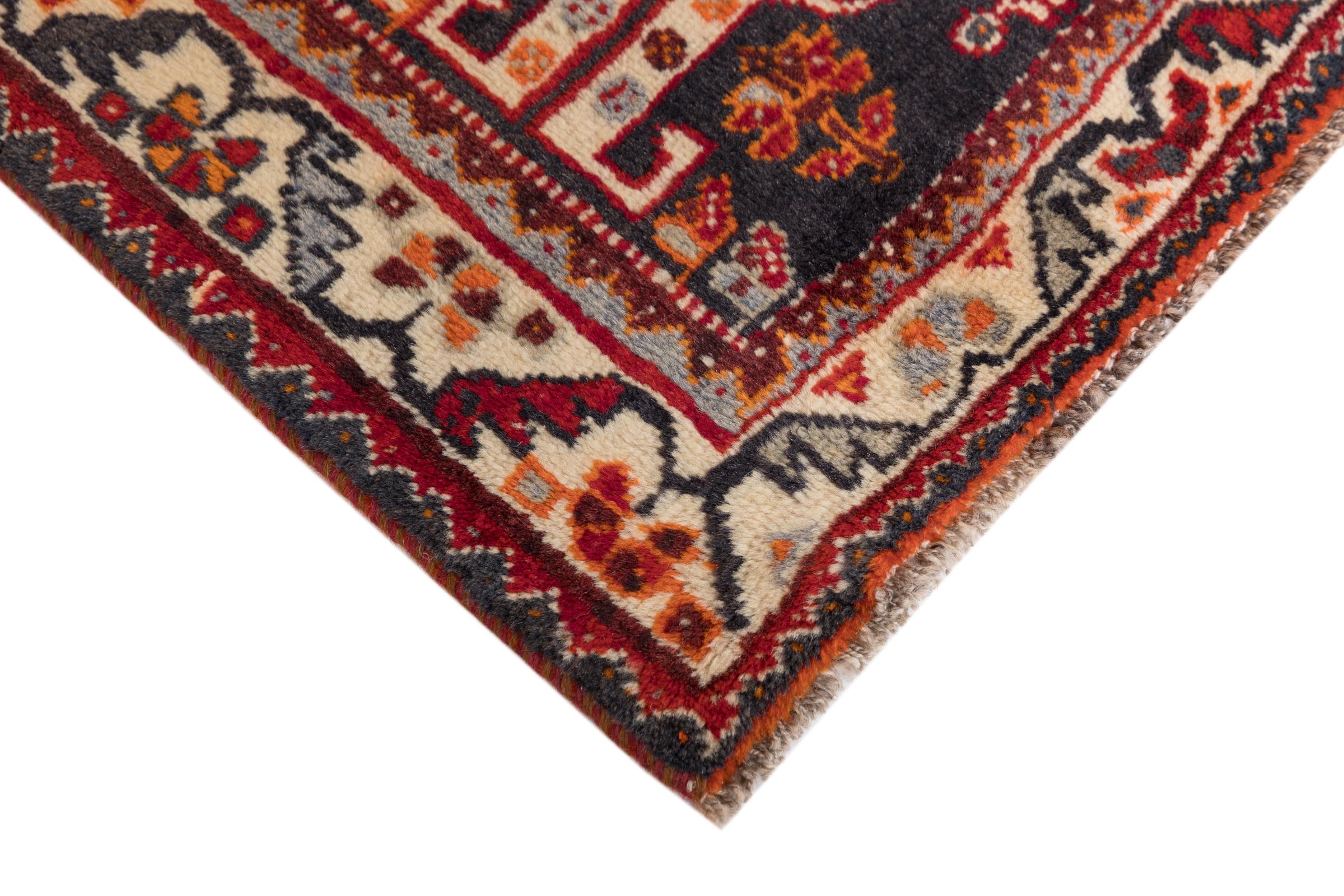 This rug belongs to village and nomadic rugs from Iran, formerly Persia. This type of rug is knotted by hand in smaller towns and villages in old tradition. Even nomads still knot Persian rugs in the open air. The rugs are knotted without a draft and completely from the mind. They are characterized by classical ornaments, which are arranged in straight and geometrical patterns. Thanks to their cultural-traditional origin, these rugs have a unique character that embodies ancient Persia.