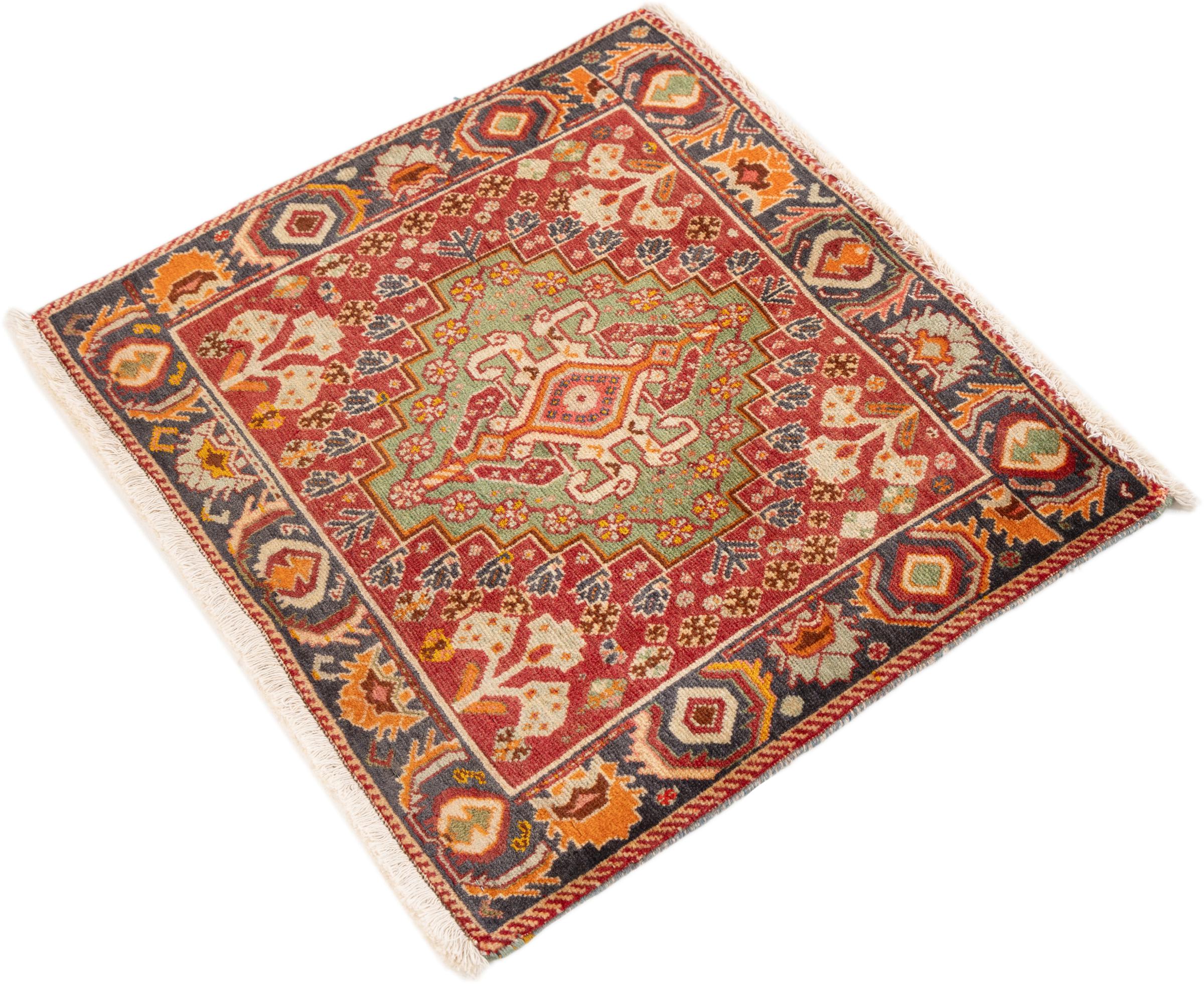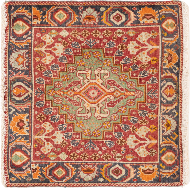 Carpet ID: 295213004011 Size: 60x65 cm Thickness: ap. 12 mm Knot density: 200 000 - 250 000 / m² Manufacturing: Knotted by hand Pile: Handspun wool Warp: Cotton Origin: Persia Age: New Weight: ap. 1 kg Also know as Qashqai, Gaschgai, Gashghai, Kashgai In stock: Unique - Only 1 in stock