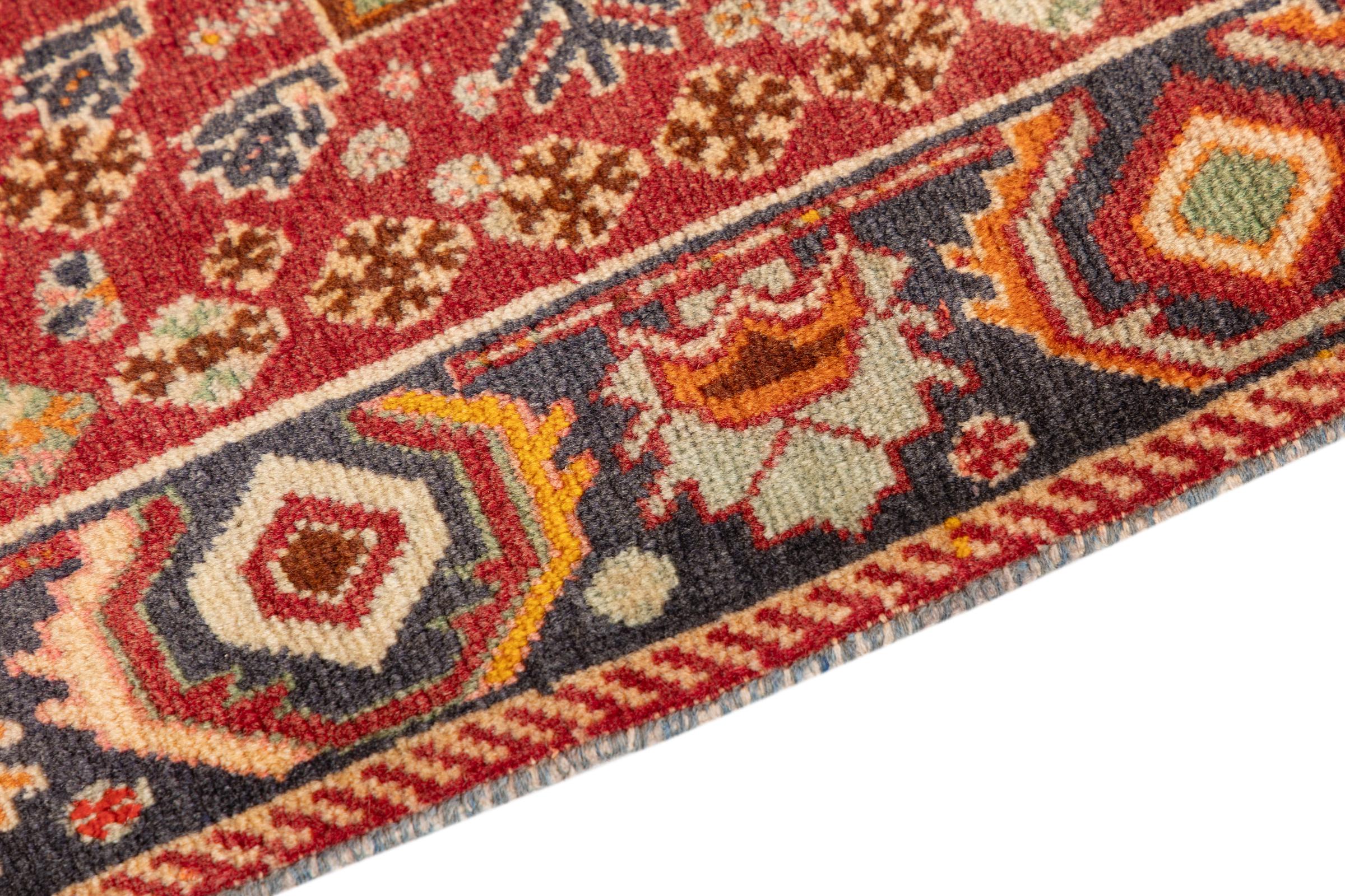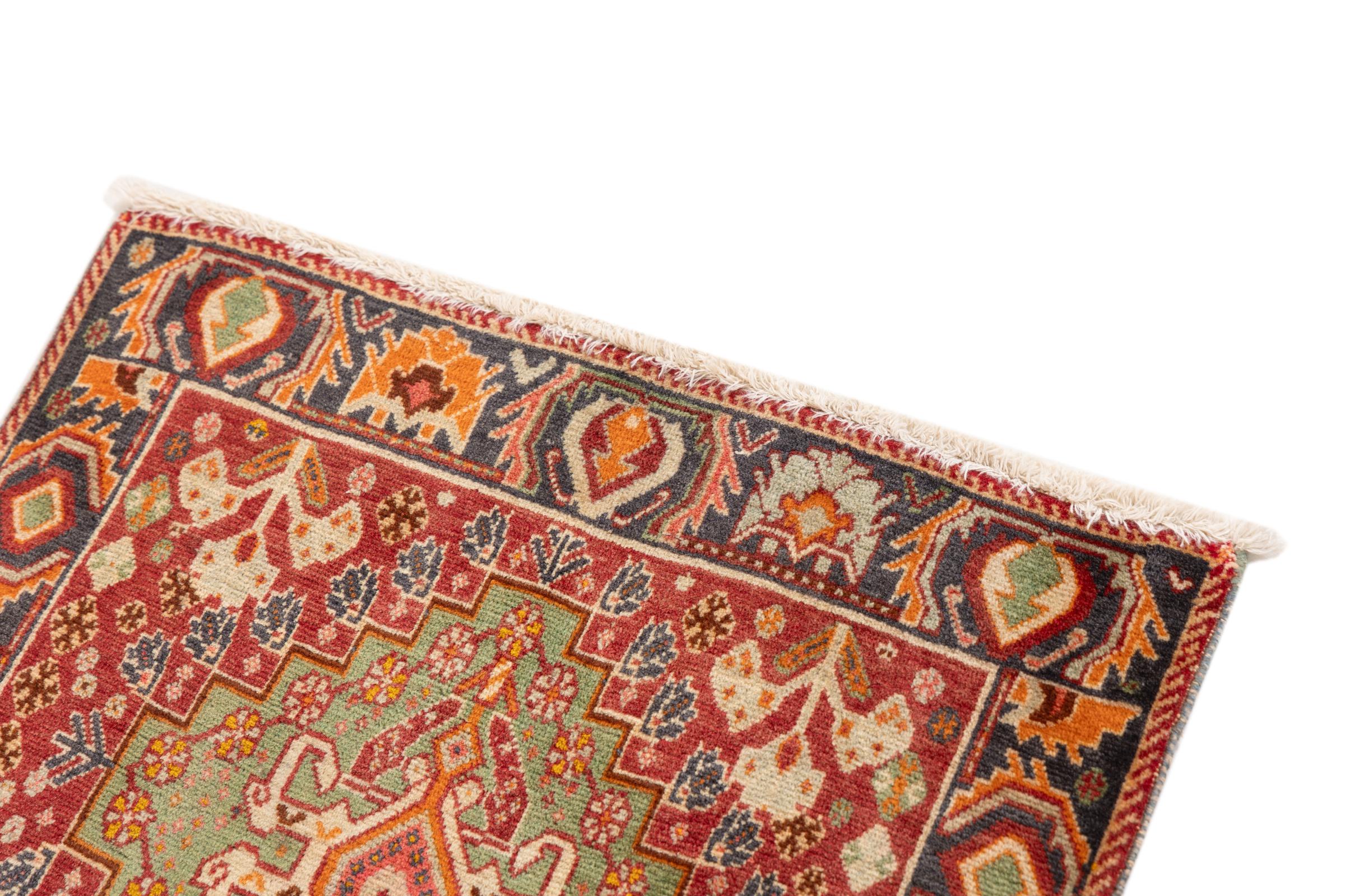 This rug belongs to village and nomadic rugs from Iran, formerly Persia. This type of rug is knotted by hand in smaller towns and villages in old tradition. Even nomads still knot Persian rugs in the open air. The rugs are knotted without a draft and completely from the mind. They are characterized by classical ornaments, which are arranged in straight and geometrical patterns. Thanks to their cultural-traditional origin, these rugs have a unique character that embodies ancient Persia.