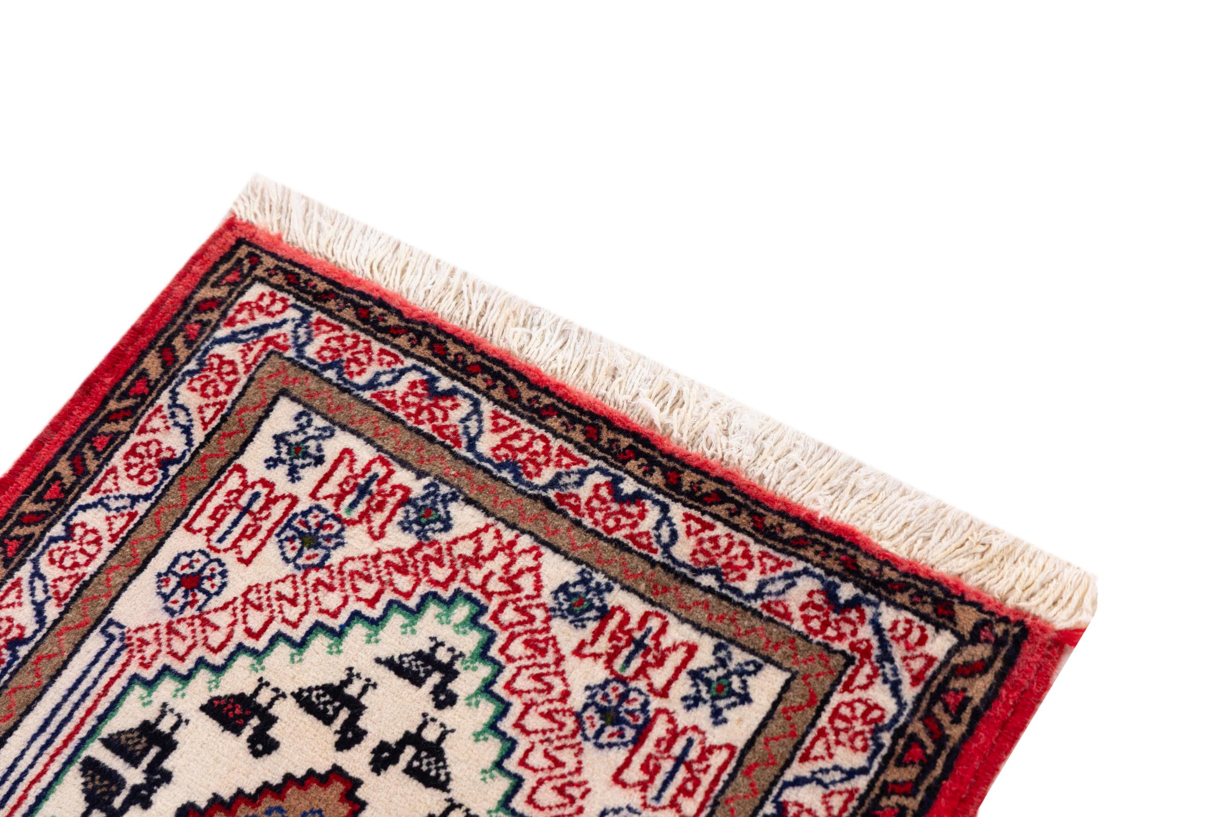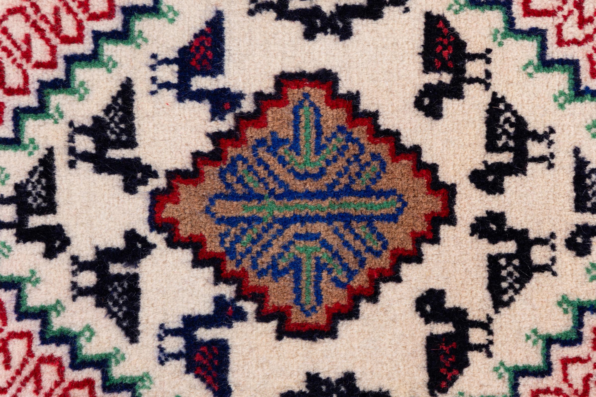 This rug belongs to village and nomadic rugs from Iran, formerly Persia. This type of rug is knotted by hand in smaller towns and villages in old tradition. Even nomads still knot Persian rugs in the open air. The rugs are knotted without a draft and completely from the mind. They are characterized by classical ornaments, which are arranged in straight and geometrical patterns. Thanks to their cultural-traditional origin, these rugs have a unique character that embodies ancient Persia.