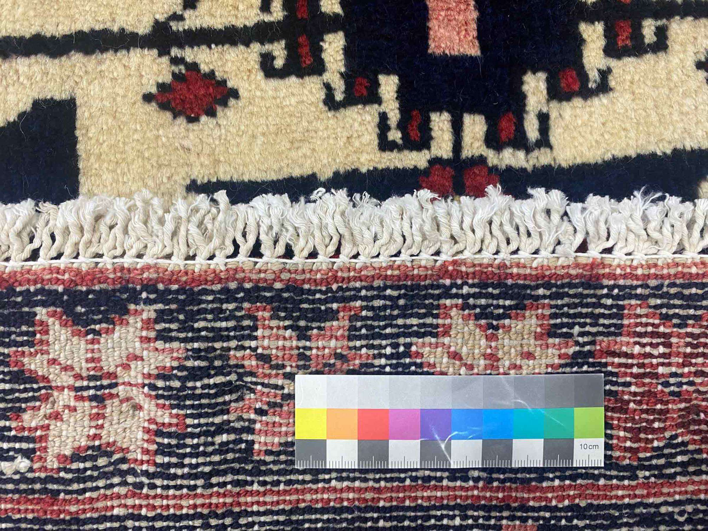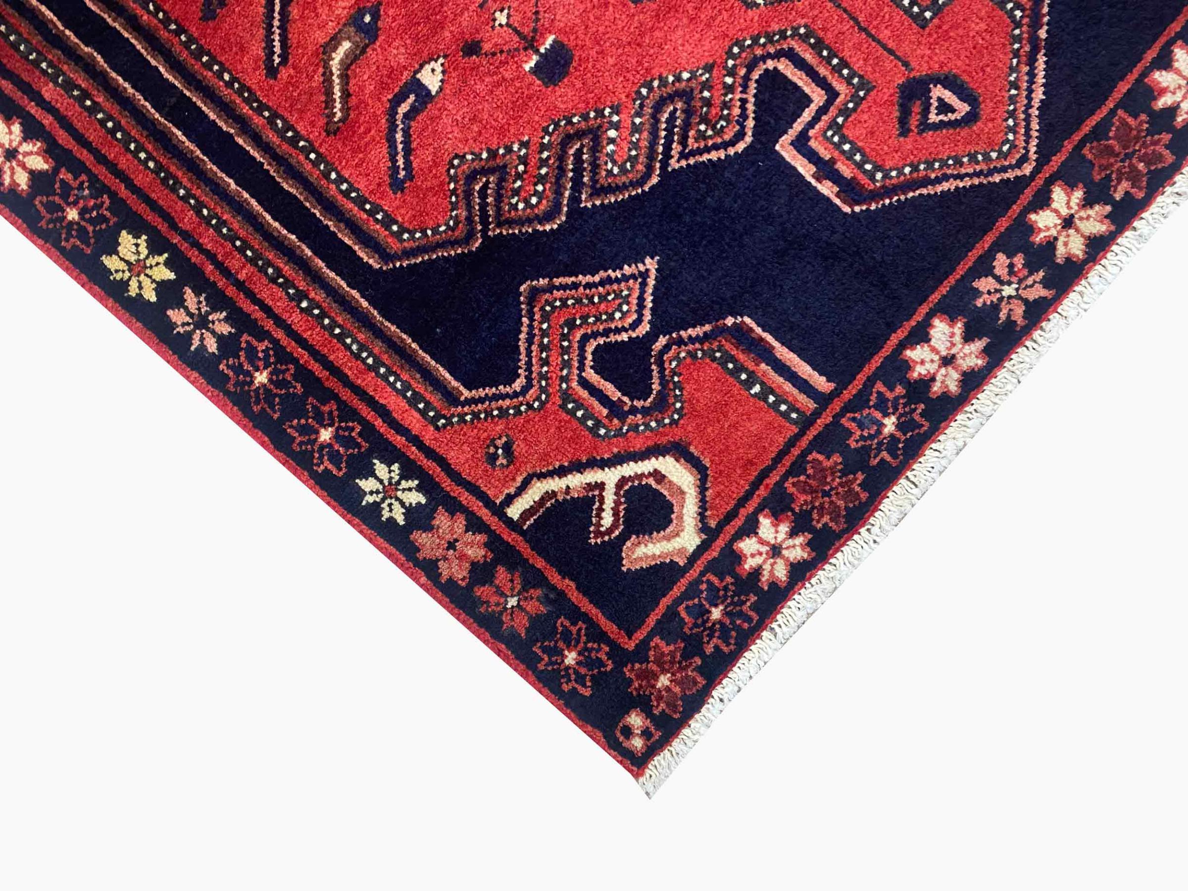 This rug belongs to village and nomadic rugs from Iran, formerly Persia. This type of rug is knotted by hand in smaller towns and villages in old tradition. Even nomads still knot Persian rugs in the open air. The rugs are knotted without a draft and completely from the mind. They are characterized by classical ornaments, which are arranged in straight and geometrical patterns. Thanks to their cultural-traditional origin, these rugs have a unique character that embodies ancient Persia.