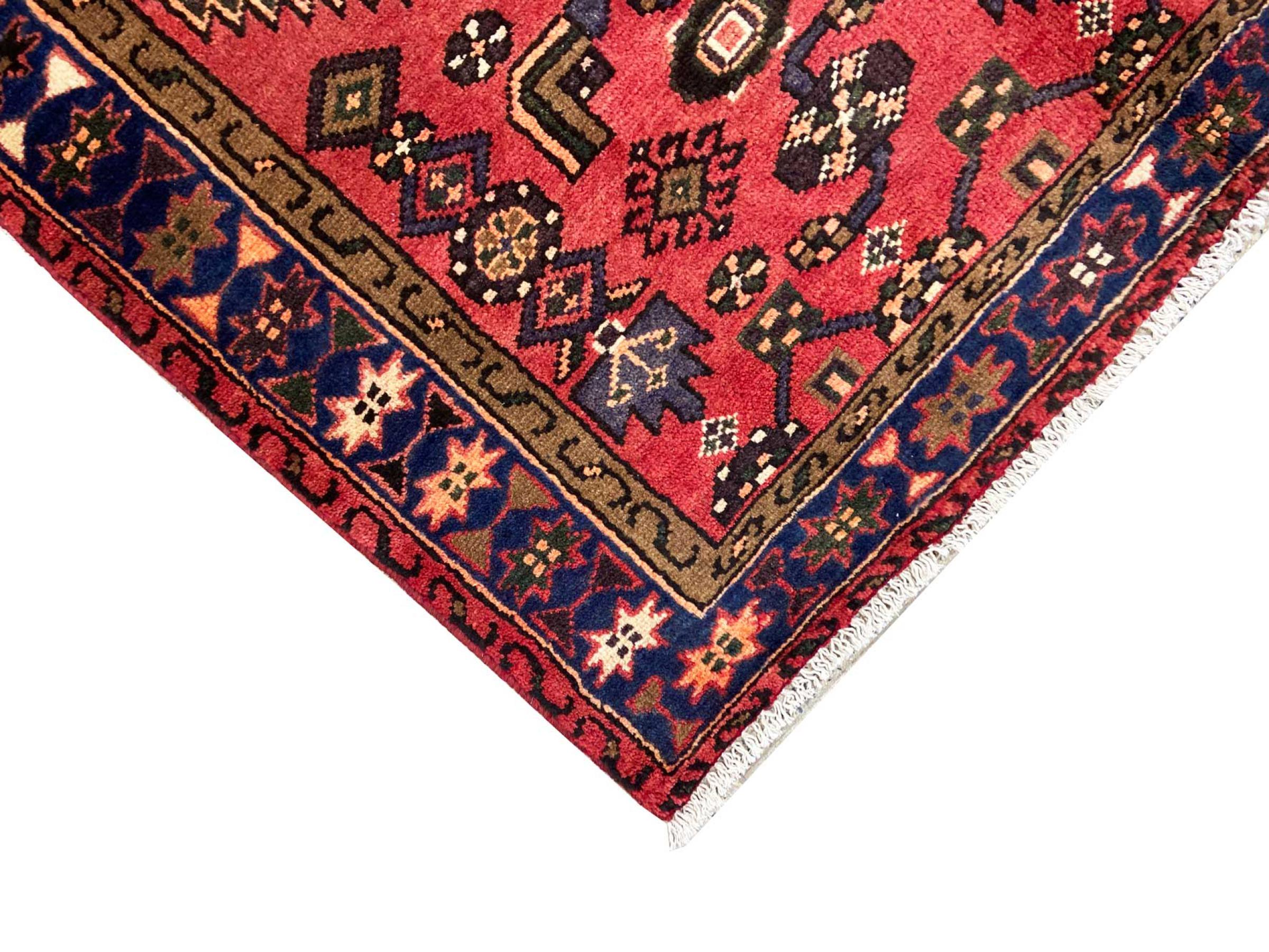 This rug belongs to village and nomadic rugs from Iran, formerly Persia. This type of rug is knotted by hand in smaller towns and villages in old tradition. Even nomads still knot Persian rugs in the open air. The rugs are knotted without a draft and completely from the mind. They are characterized by classical ornaments, which are arranged in straight and geometrical patterns. Thanks to their cultural-traditional origin, these rugs have a unique character that embodies ancient Persia.