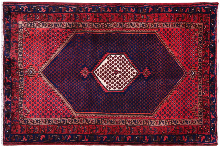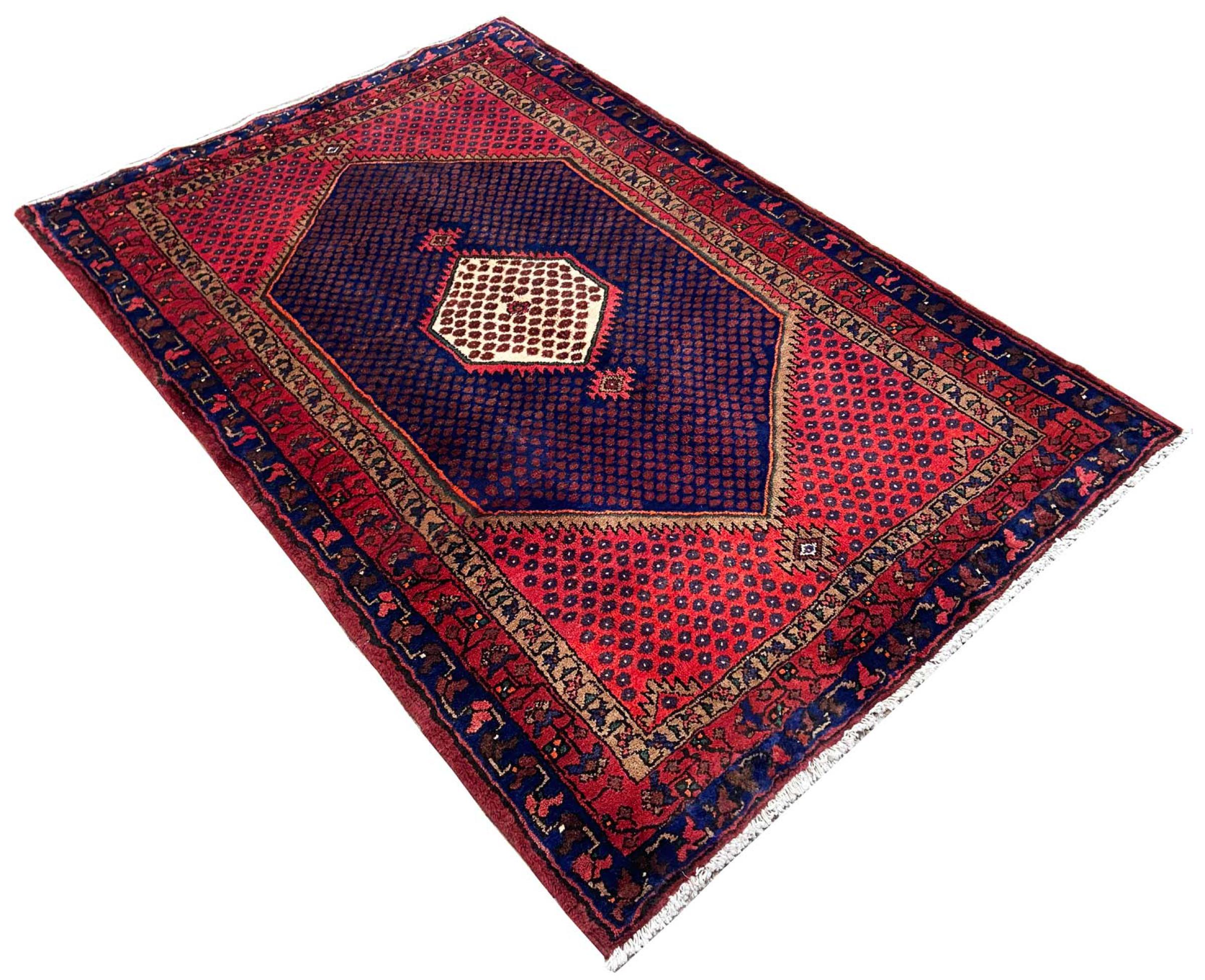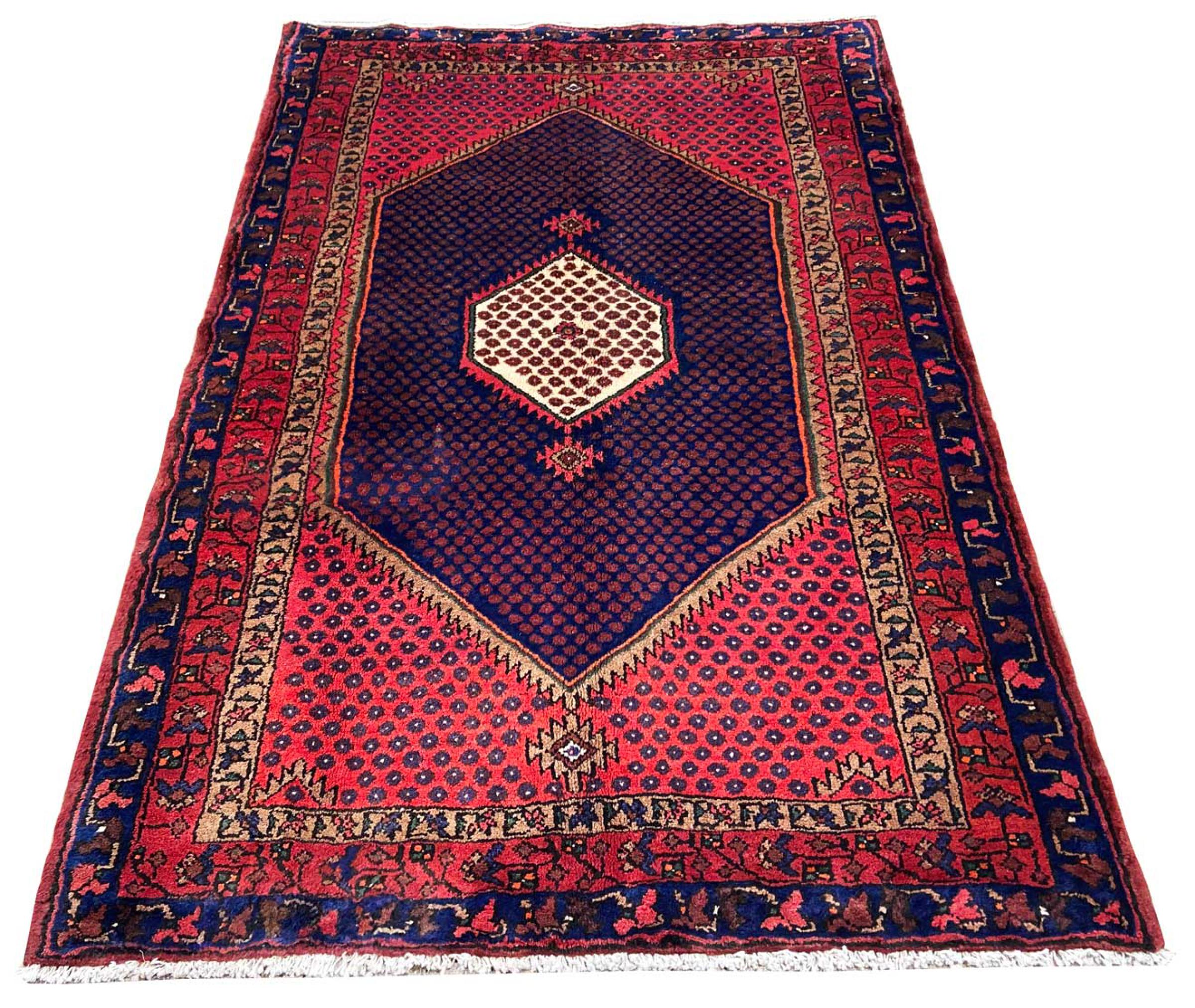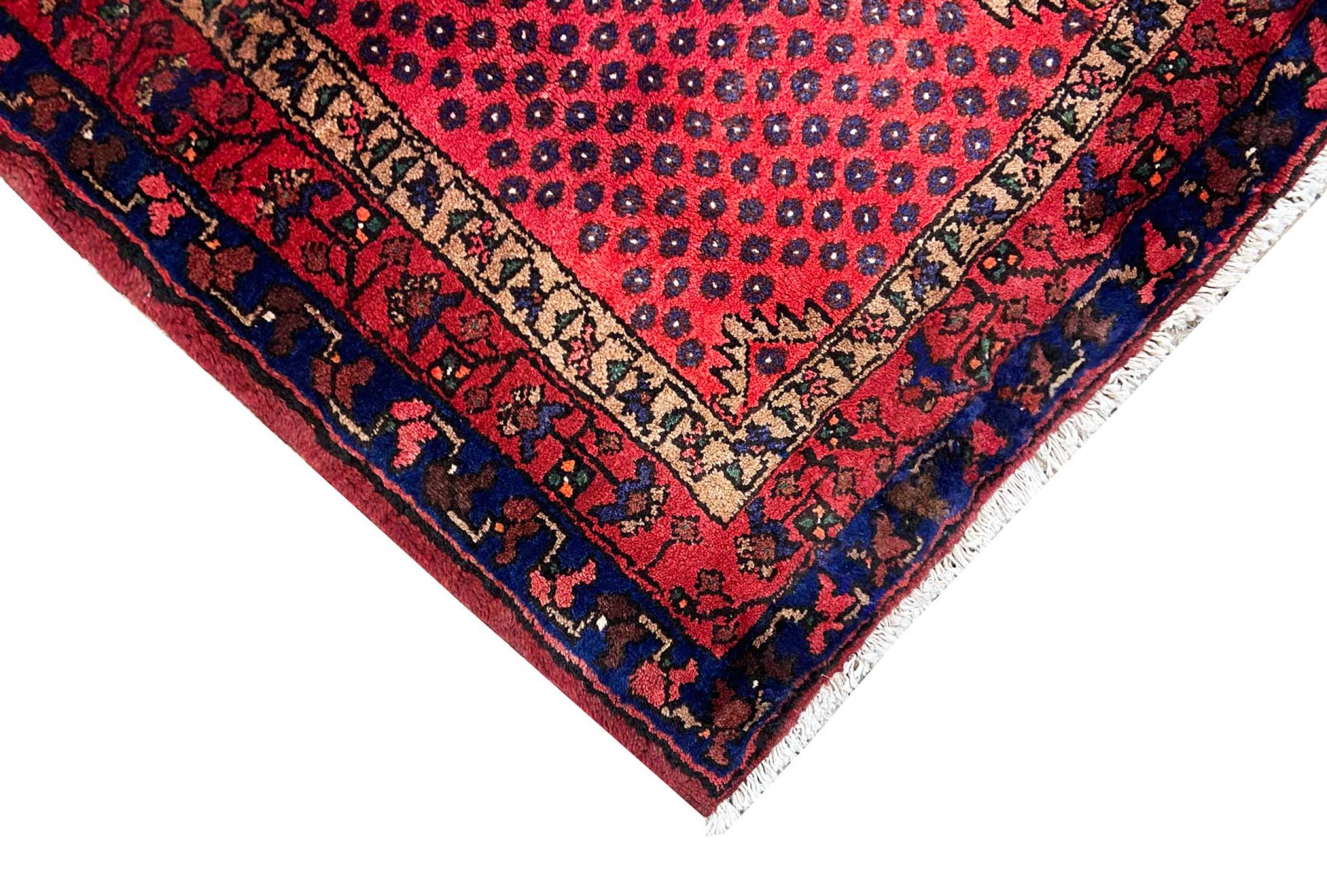 This rug belongs to village and nomadic rugs from Iran, formerly Persia. This type of rug is knotted by hand in smaller towns and villages in old tradition. Even nomads still knot Persian rugs in the open air. The rugs are knotted without a draft and completely from the mind. They are characterized by classical ornaments, which are arranged in straight and geometrical patterns. Thanks to their cultural-traditional origin, these rugs have a unique character that embodies ancient Persia.