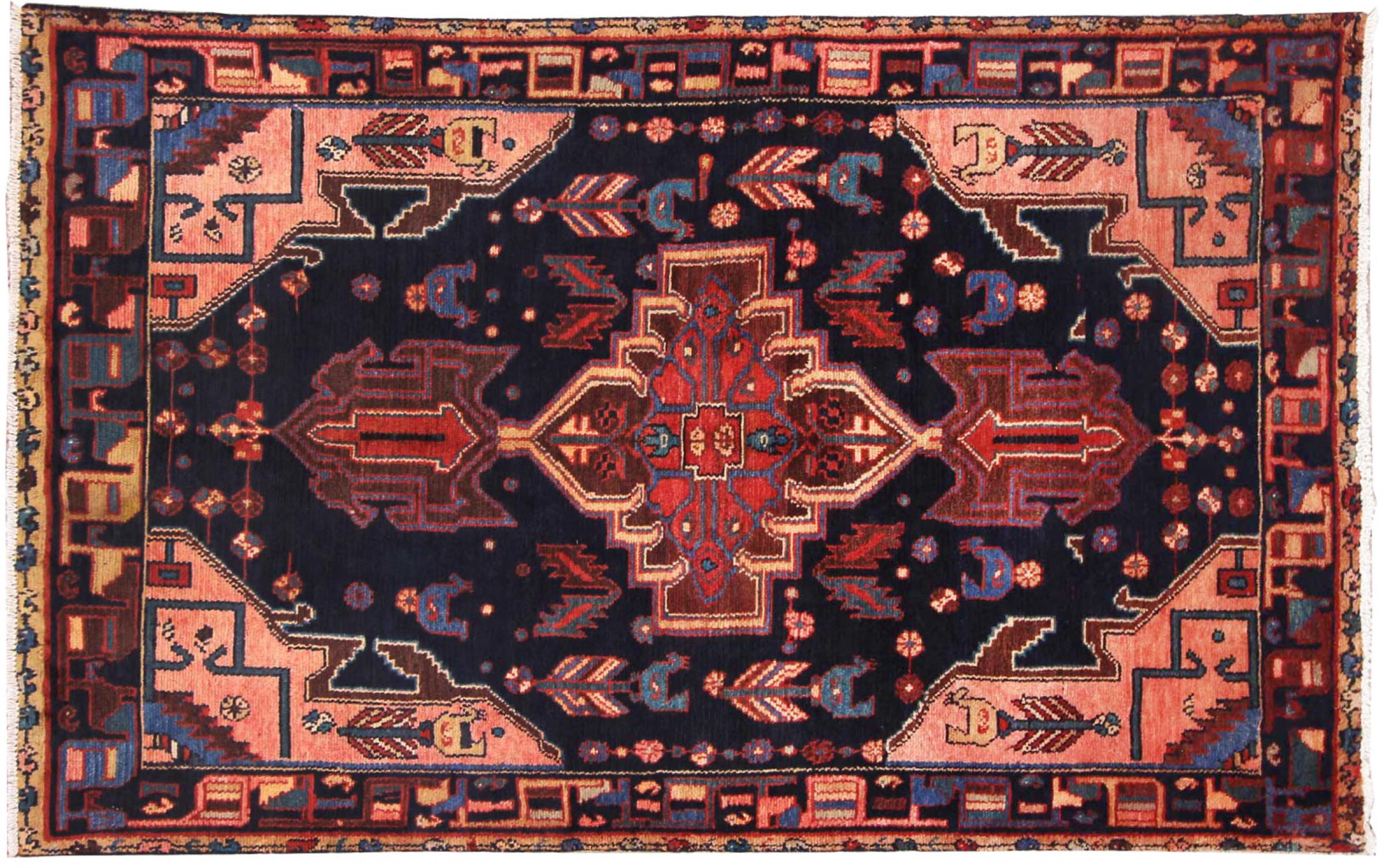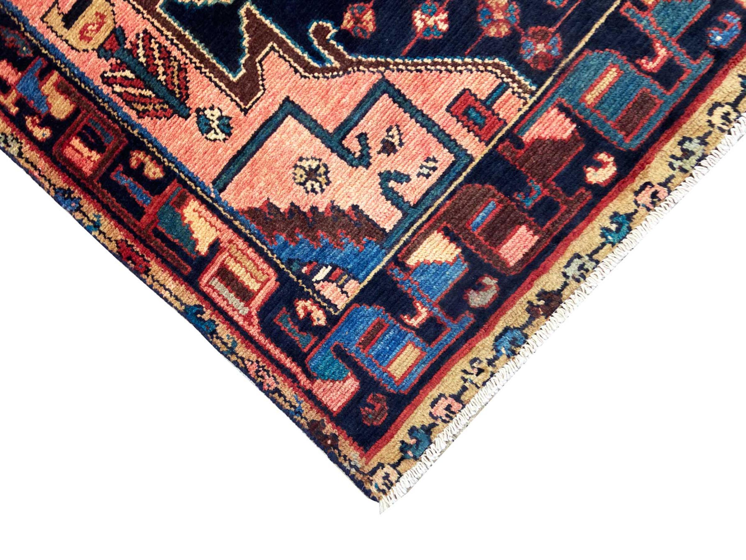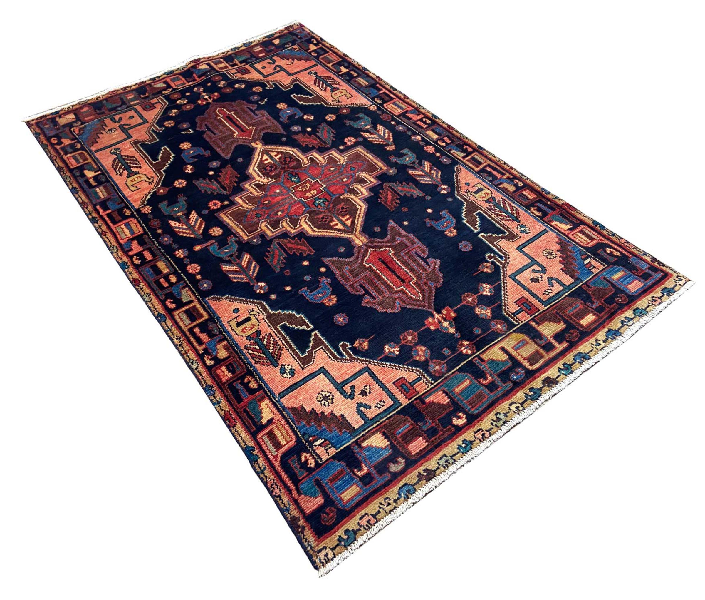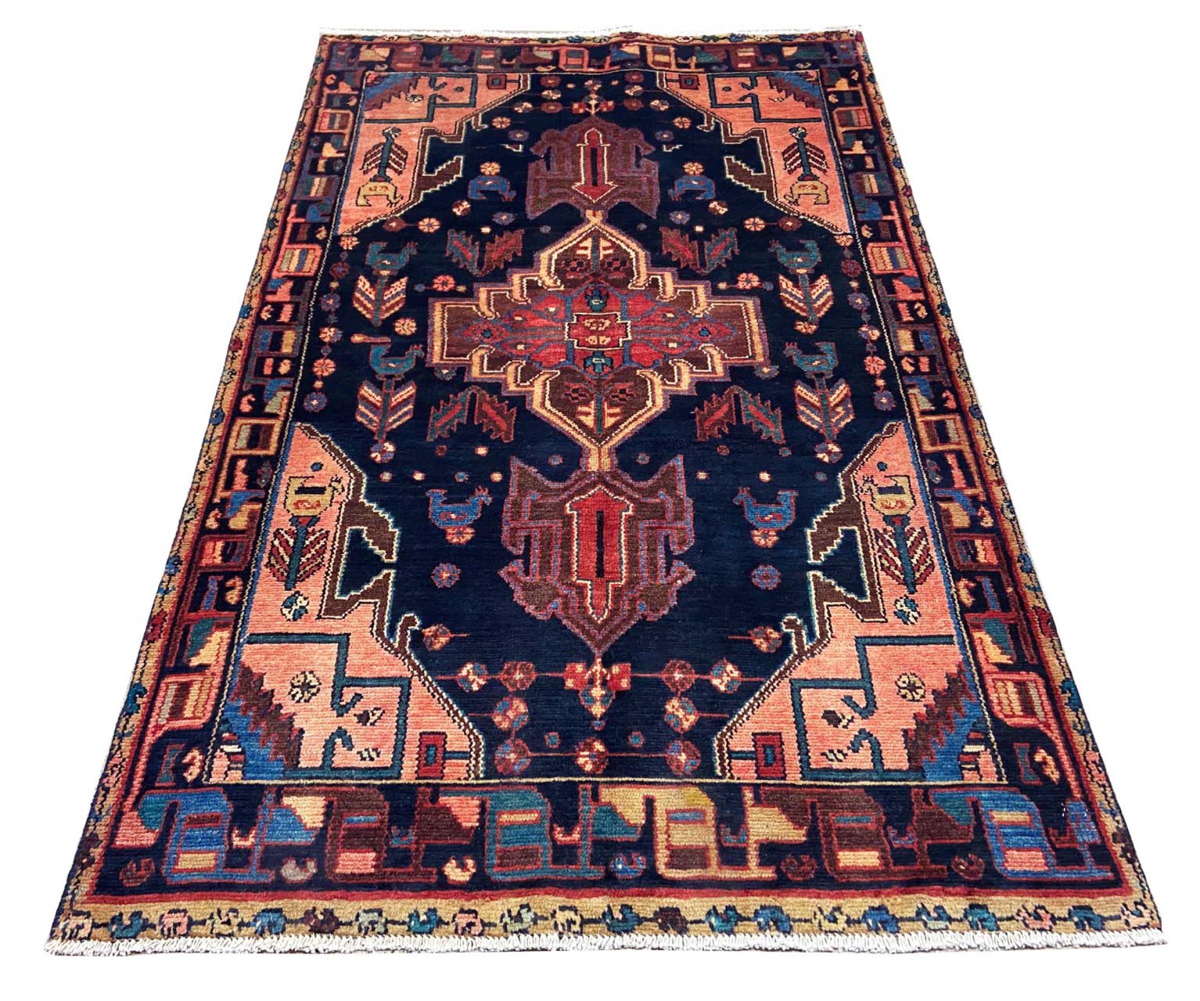 This rug belongs to village and nomadic rugs from Iran, formerly Persia. This type of rug is knotted by hand in smaller towns and villages in old tradition. Even nomads still knot Persian rugs in the open air. The rugs are knotted without a draft and completely from the mind. They are characterized by classical ornaments, which are arranged in straight and geometrical patterns. Thanks to their cultural-traditional origin, these rugs have a unique character that embodies ancient Persia.