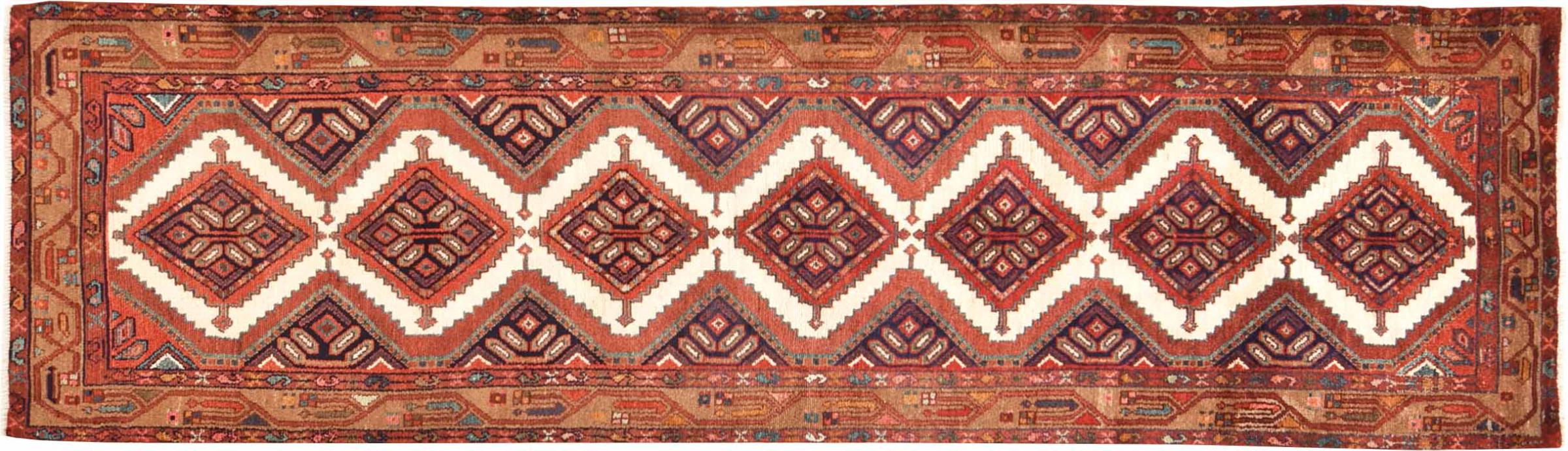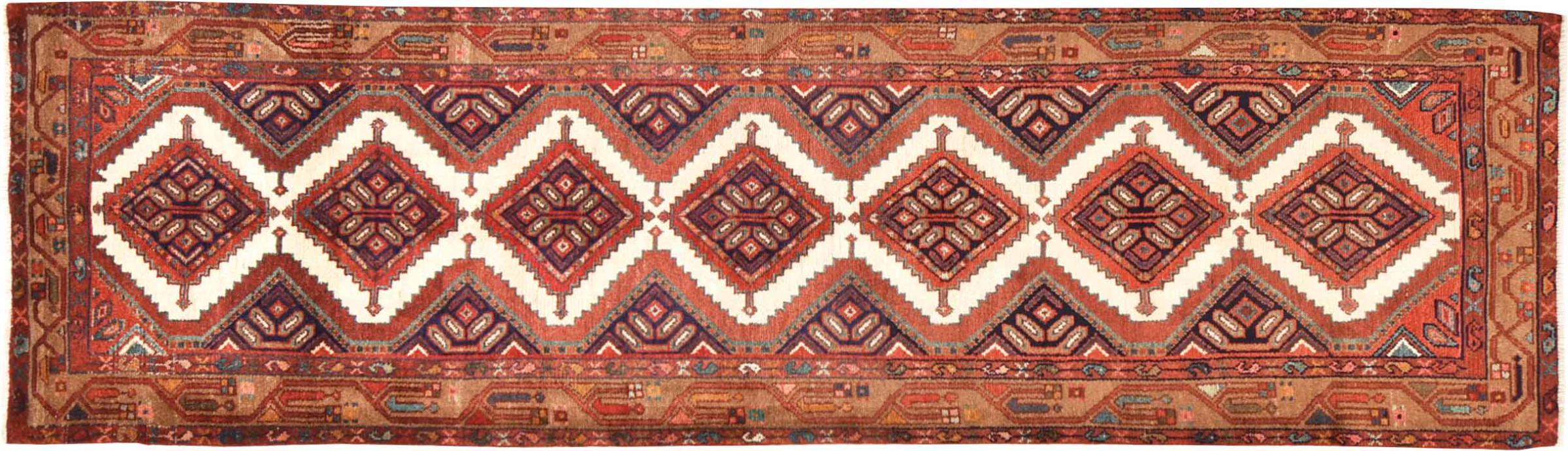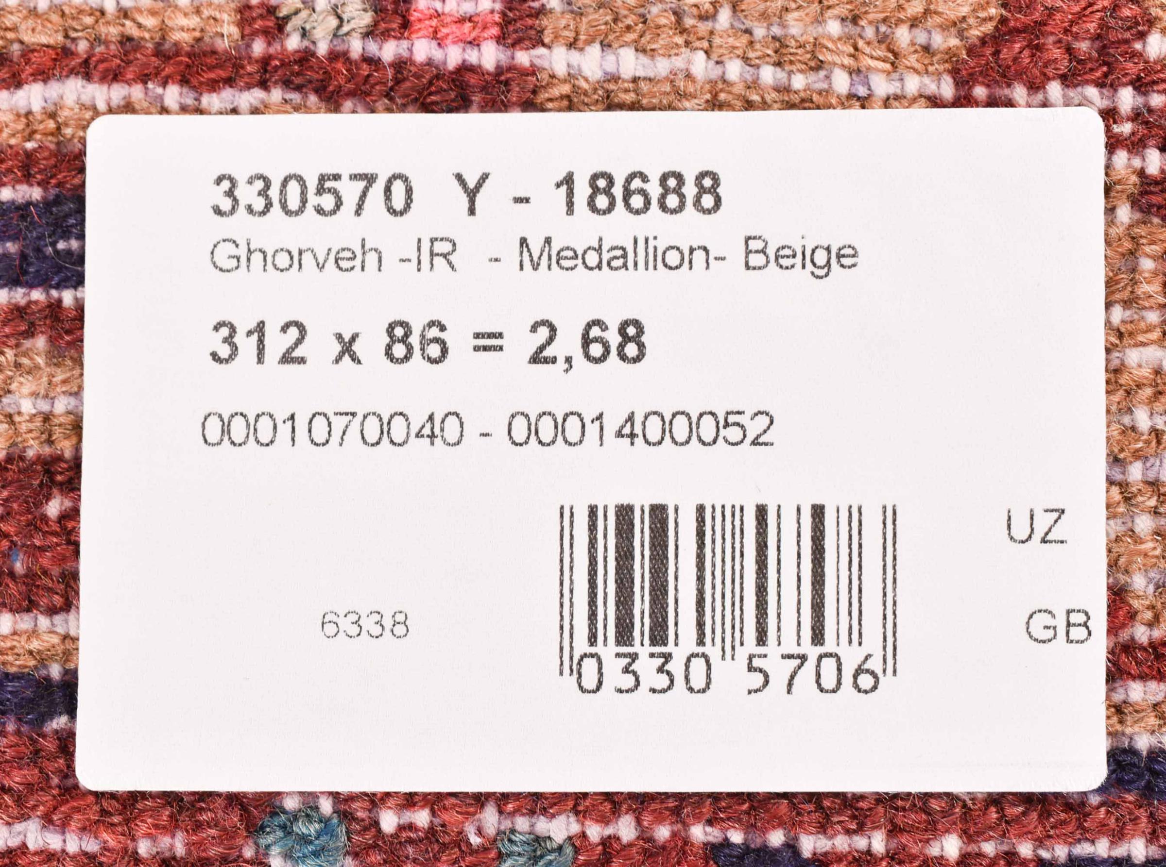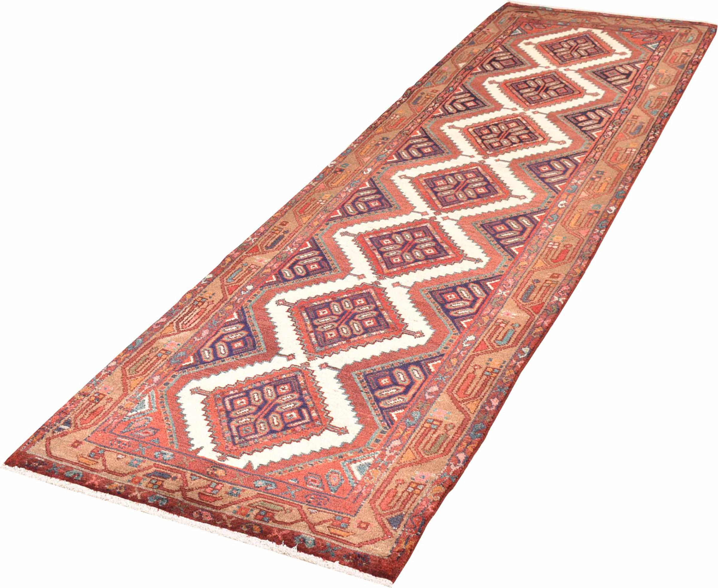 Carpet ID: 300945008964567 Size: 313x87 cm Thickness: ap. 8 mm Knot density: 128 000 - 160 000 / m² Manufacturing: Knotted by hand Pile: Handspun wool Warp: Cotton Origin: Persia Age: New Weight: ap. 10 kg Also know as Huseinabad In stock: Unique - Only 1 in stock