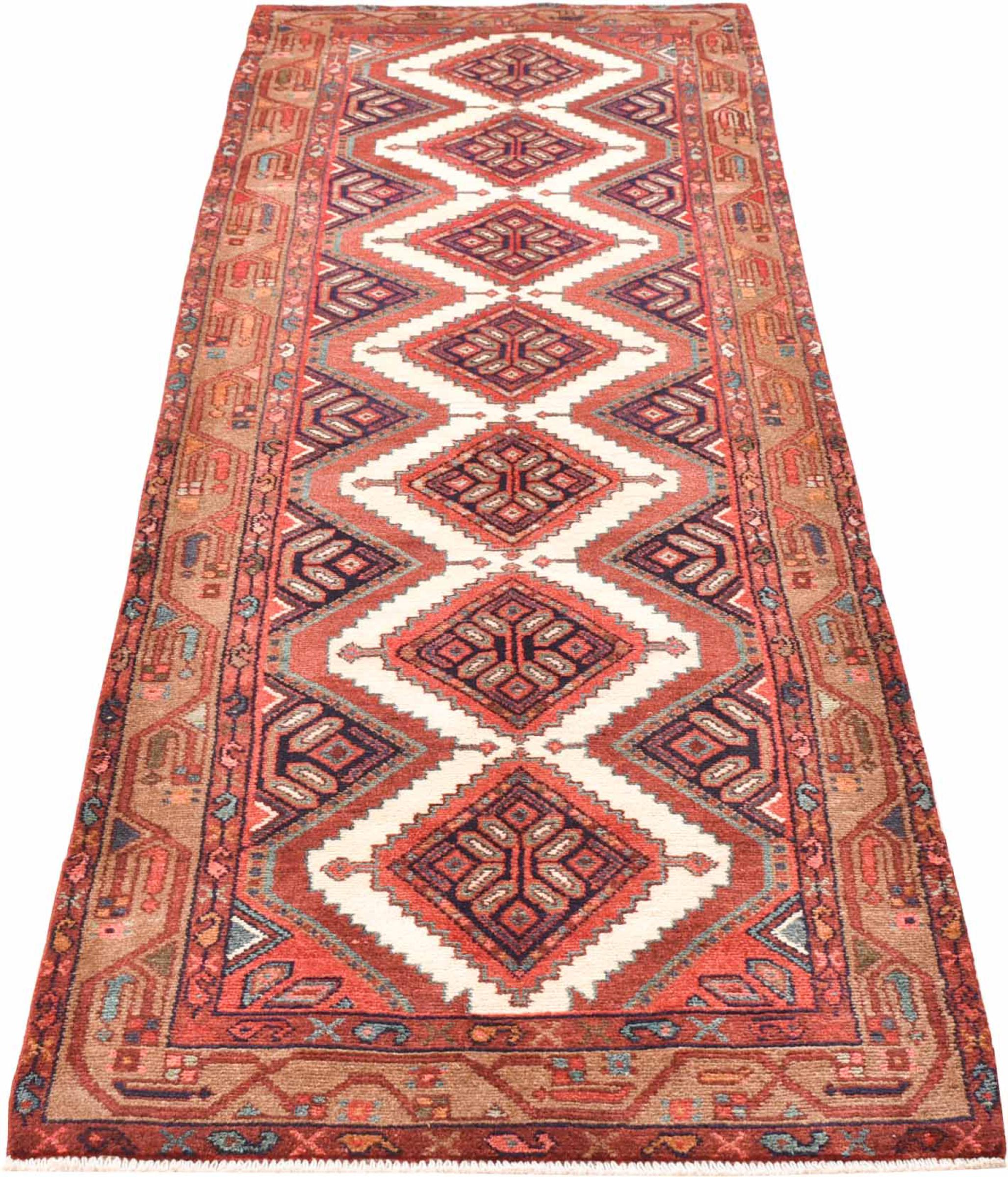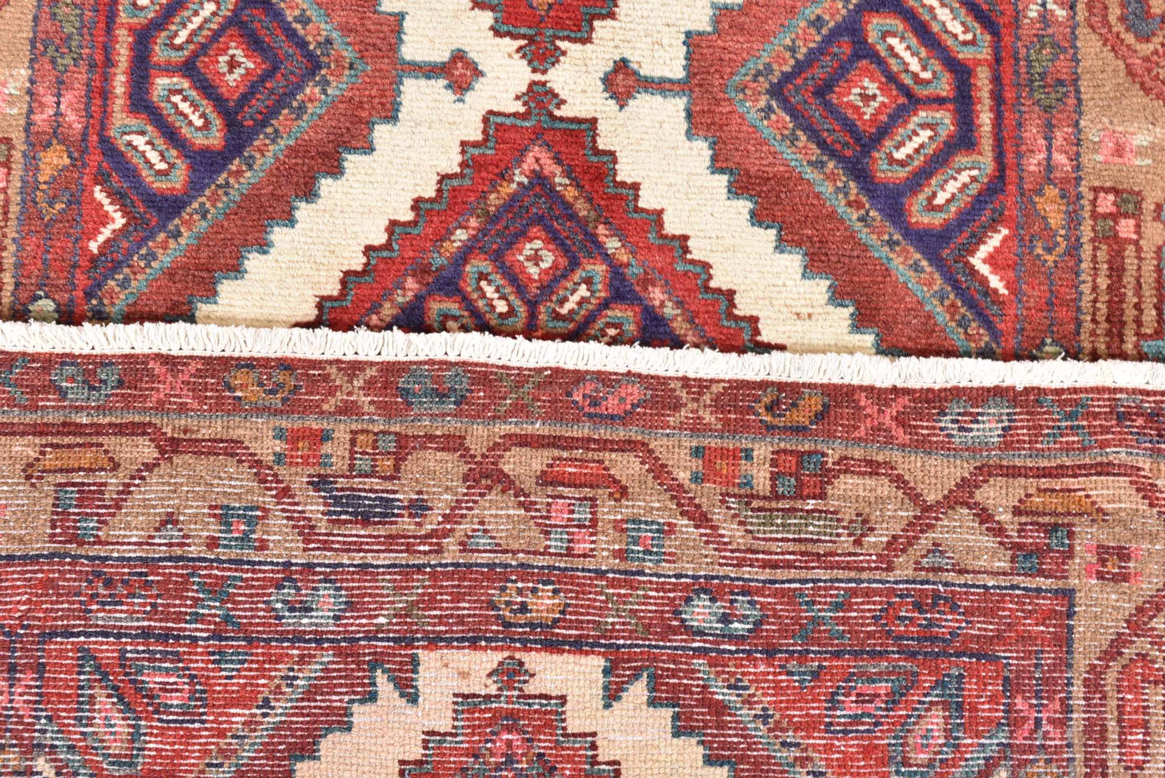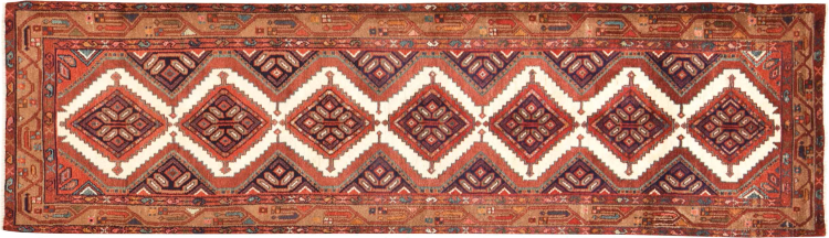 This rug belongs to village and nomadic rugs from Iran, formerly Persia. This type of rug is knotted by hand in smaller towns and villages in old tradition. Even nomads still knot Persian rugs in the open air. The rugs are knotted without a draft and completely from the mind. They are characterized by classical ornaments, which are arranged in straight and geometrical patterns. Thanks to their cultural-traditional origin, these rugs have a unique character that embodies ancient Persia.
