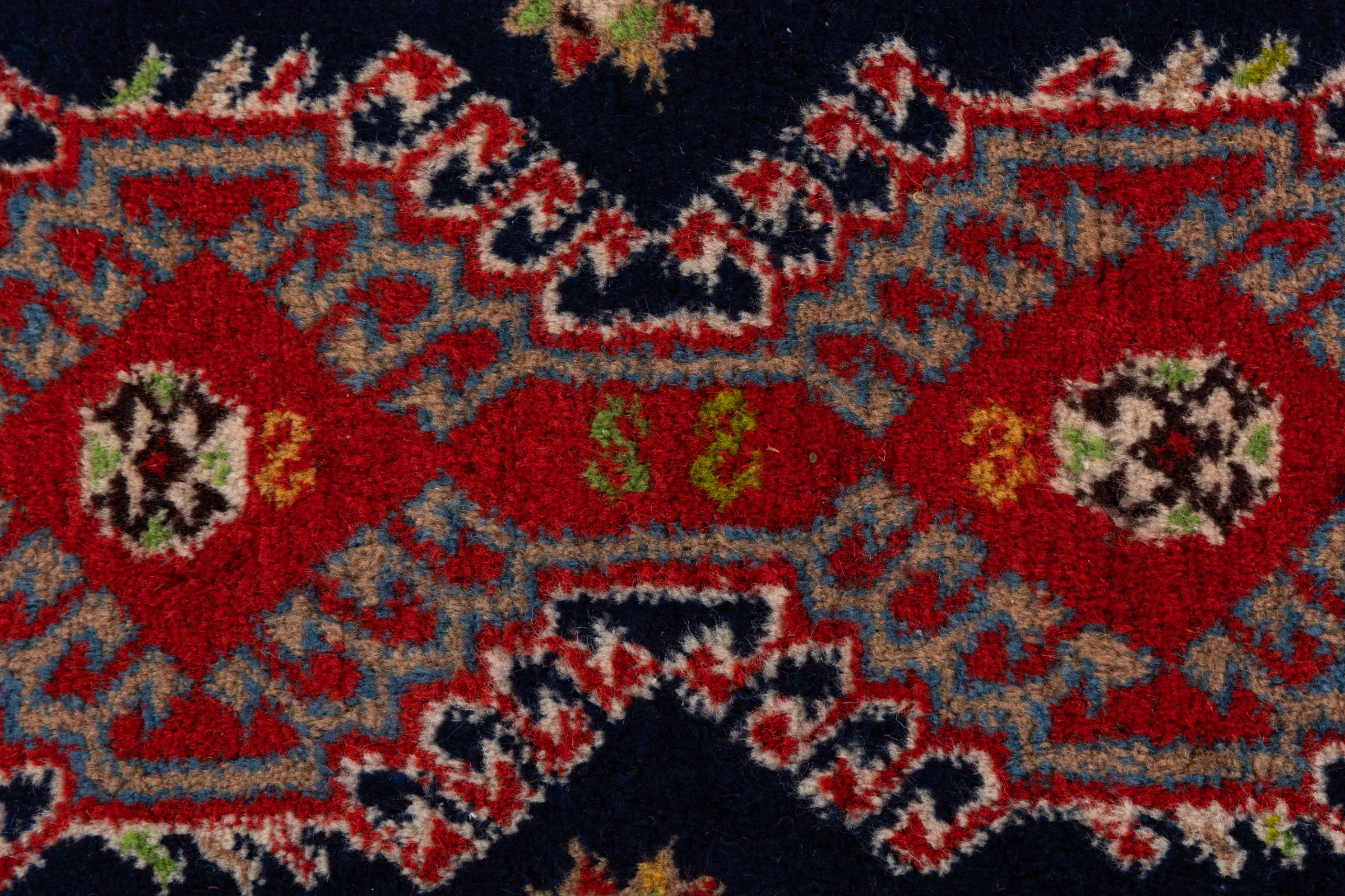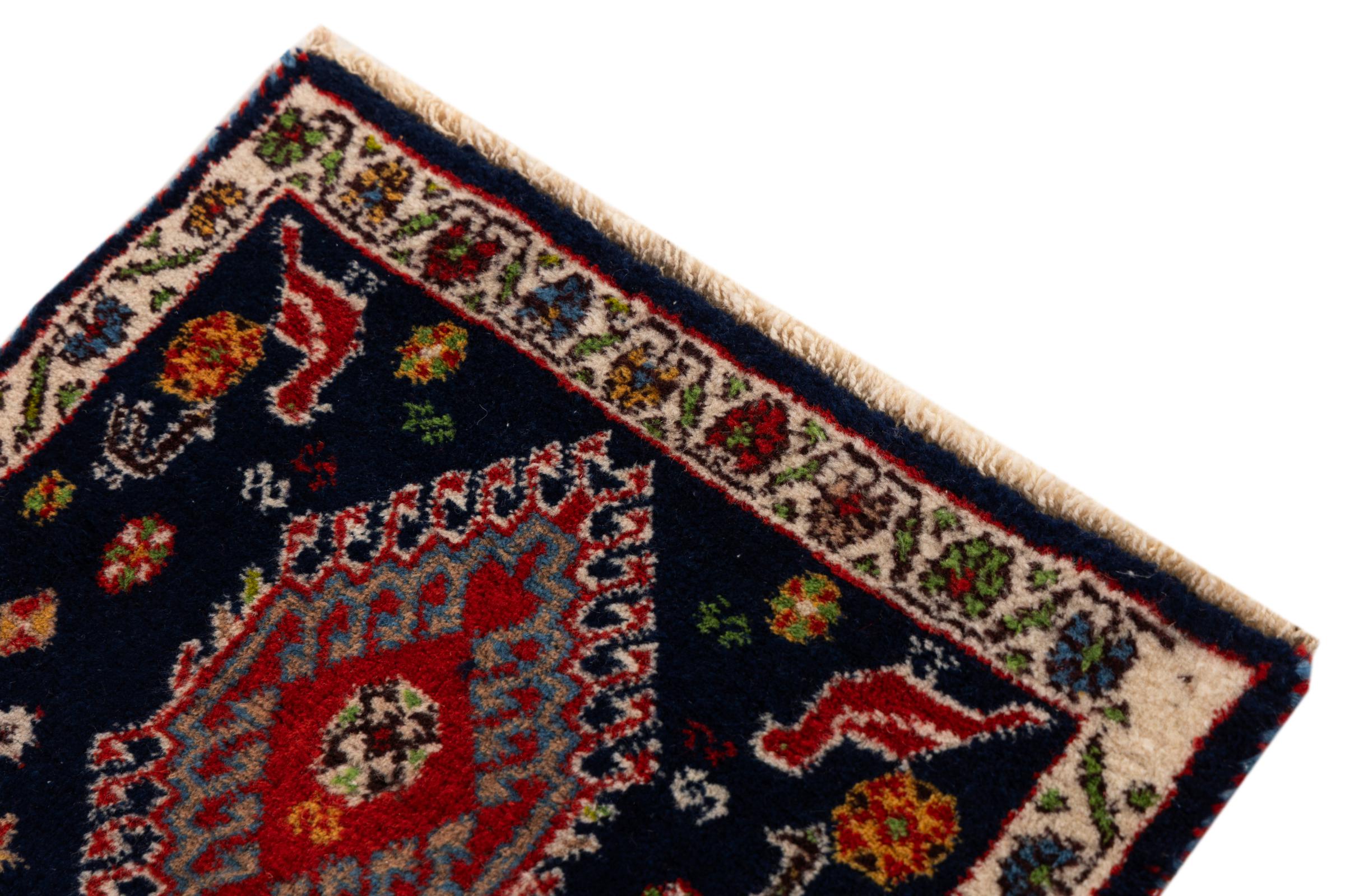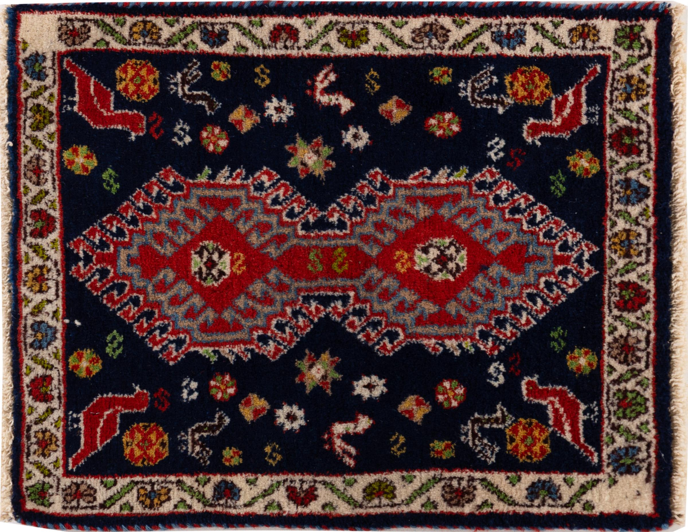 Carpet ID: 30713600105639 Size: 70x57 cm Thickness: ap. 8 mm Knot density: 128 000 - 160 000 / m² Manufacturing: Knotted by hand Pile: Handspun wool Warp: Cotton Origin: Persia Age: New Weight: ap. 1 kg Also know as Huseinabad In stock: Unique - Only 1 in stock