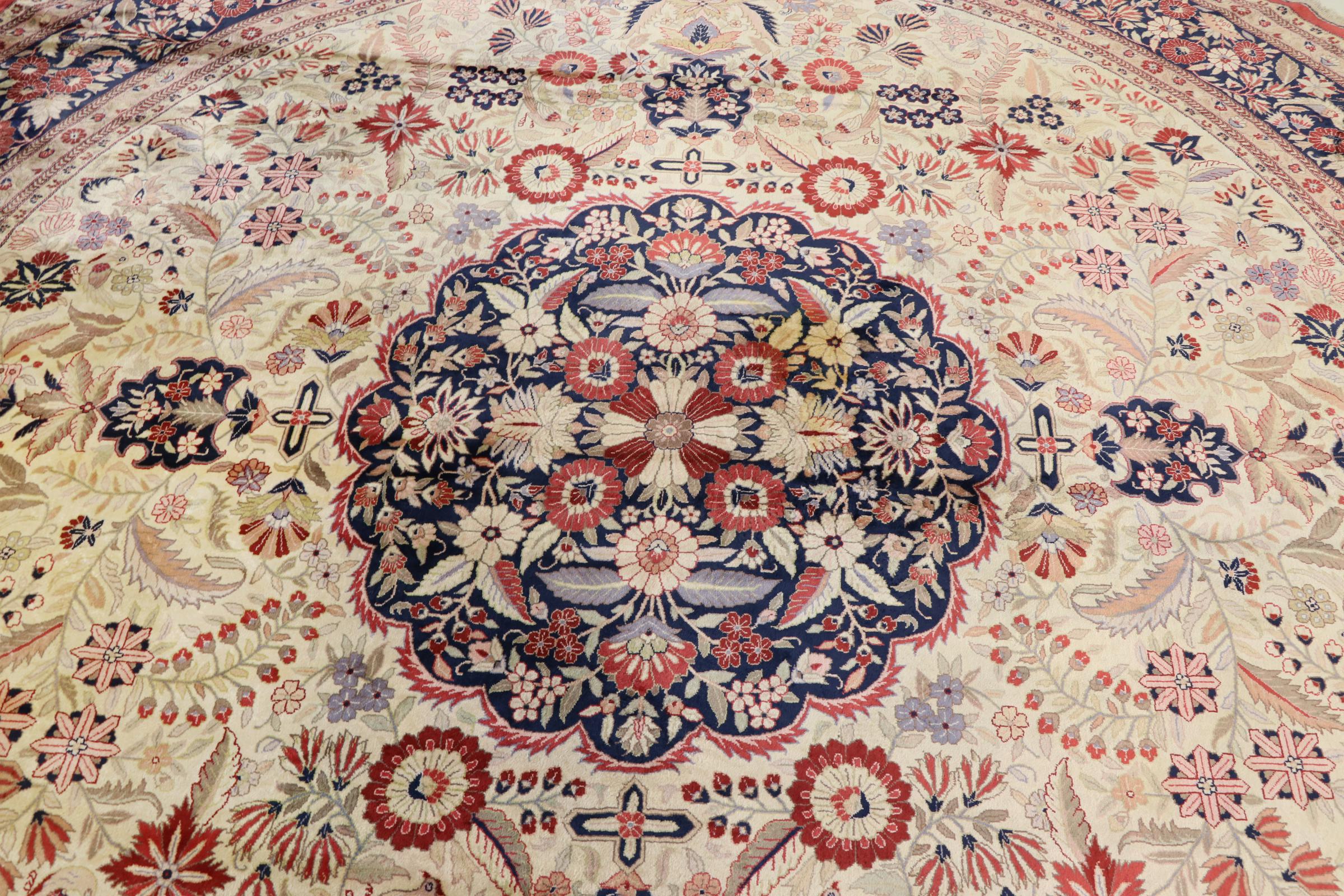 Carpet ID: 304080009888963 Size: 301x299 cm Thickness: ap. 5 mm Knot density: 640 000 / m² Manufacturing: Knotted by hand Pile: Silk Warp: Silk Origin: China Age: New Weight: ap. 27 kg In stock: Unique - Only 1 in stock