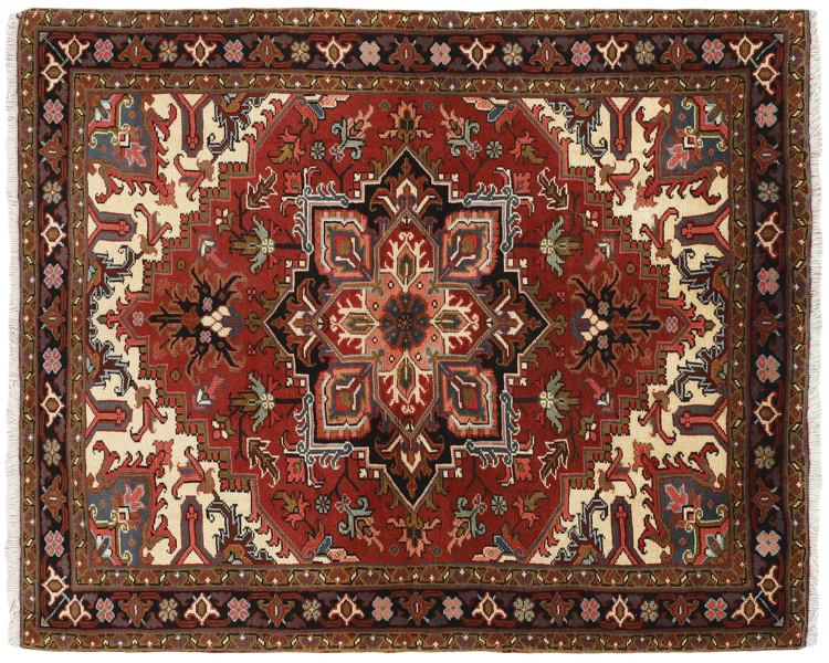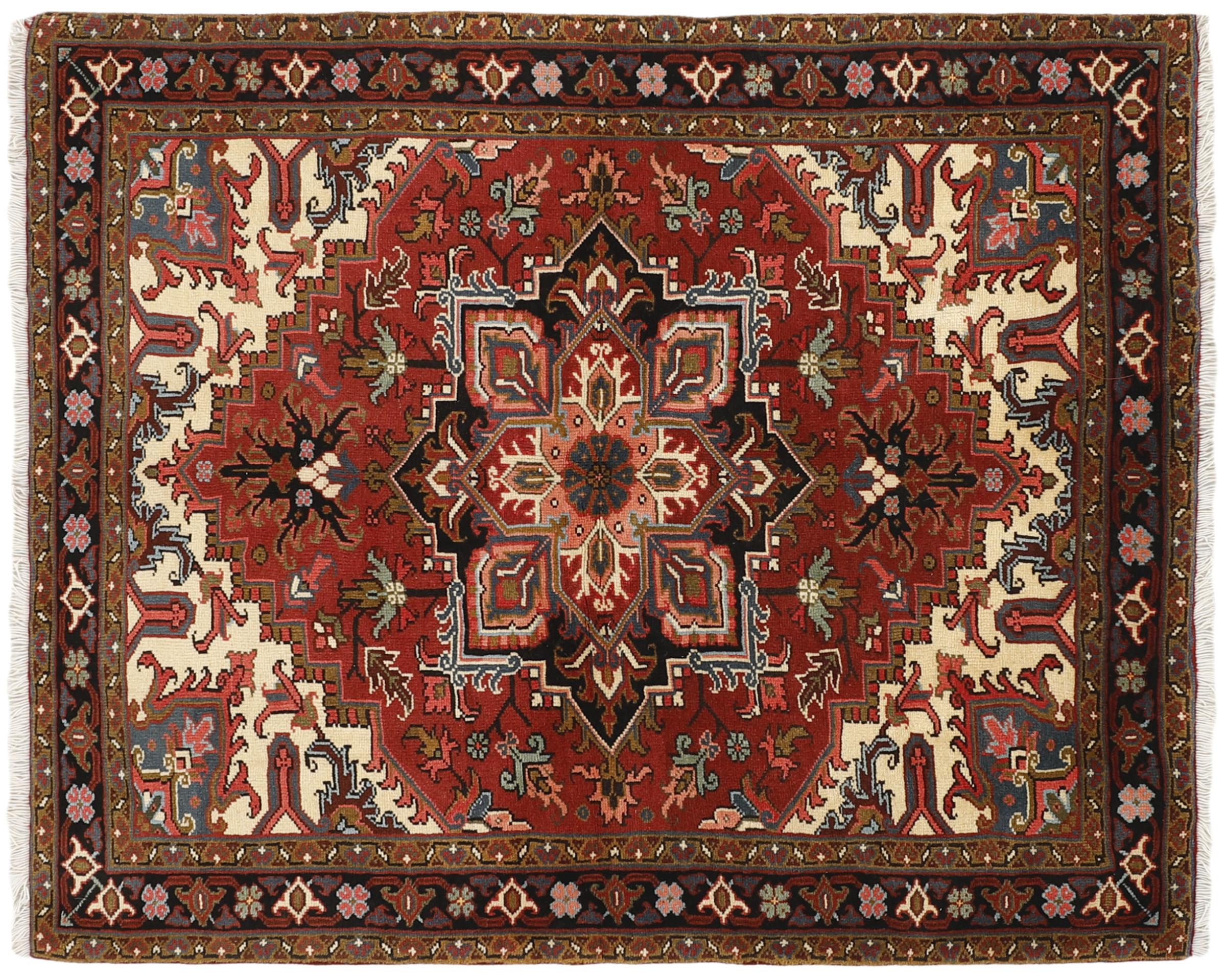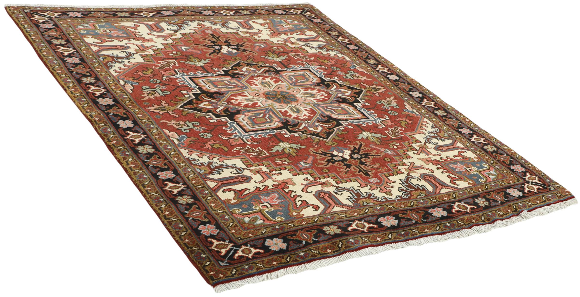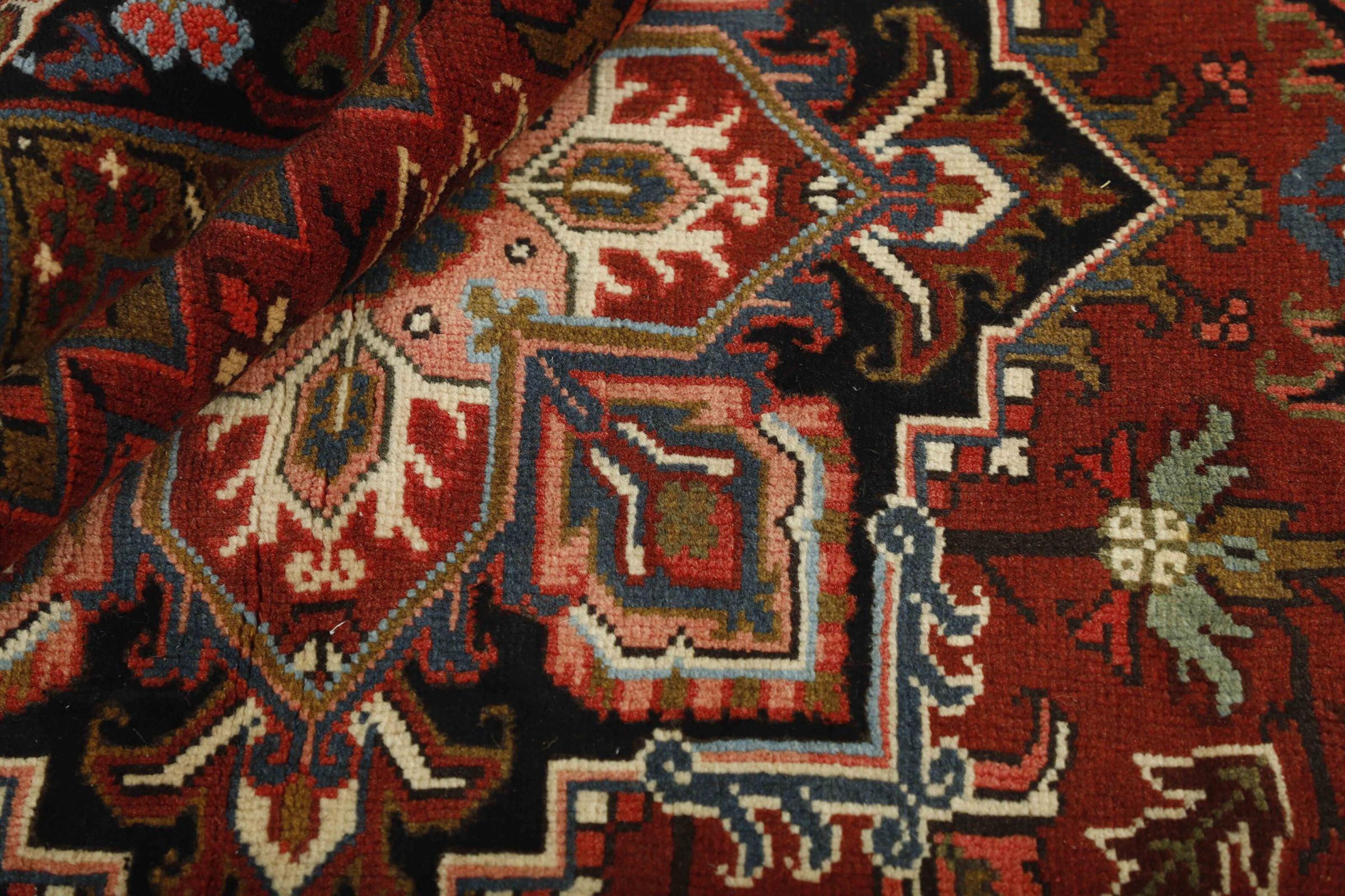 This Heriz carpet is a beautiful example of Persian carpet craftsmanship. Its rustic design is a testament to its durability. It was hand-knotted in the city of Heriz, which is located near Tabriz in north-west Iran. Anyone looking for a Persian rug that will give pleasure for a long time and is highly modern will love this Heriz. The ornaments of Heriz rugs are extremely popular today and are seen as very modern. You will never give up a rug like this again.