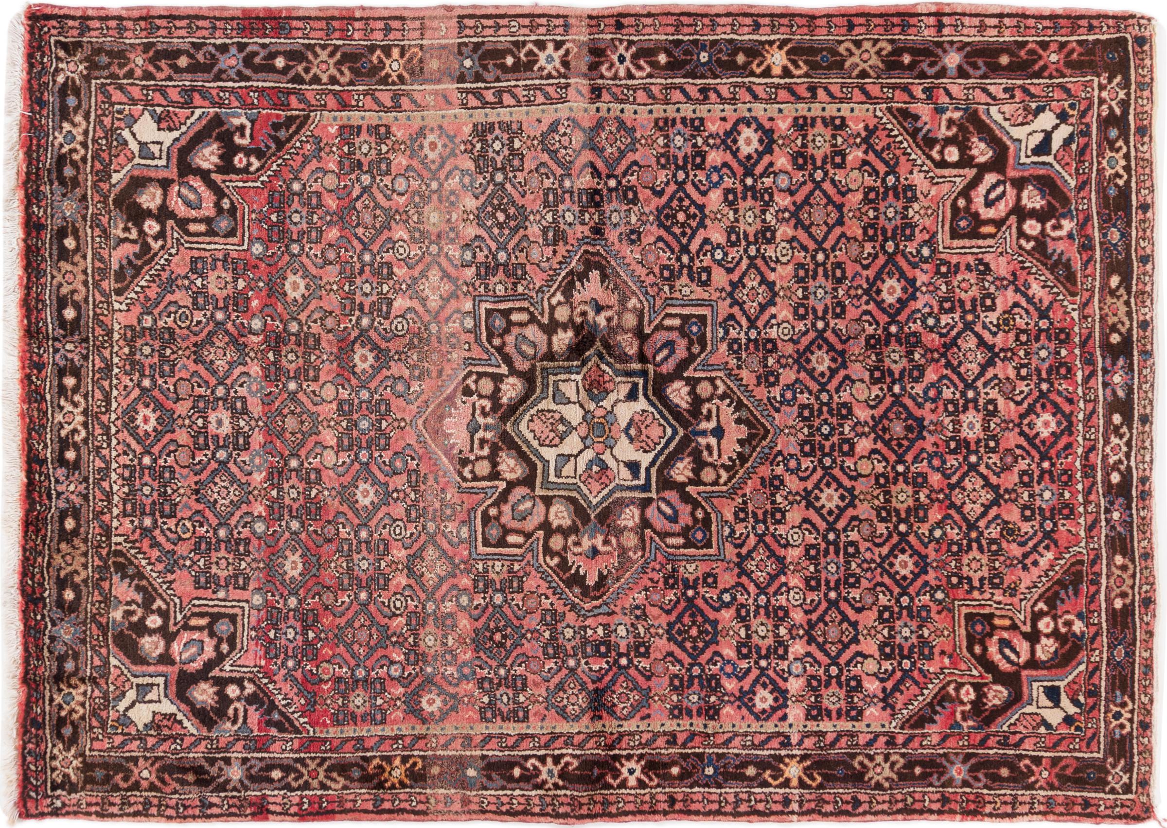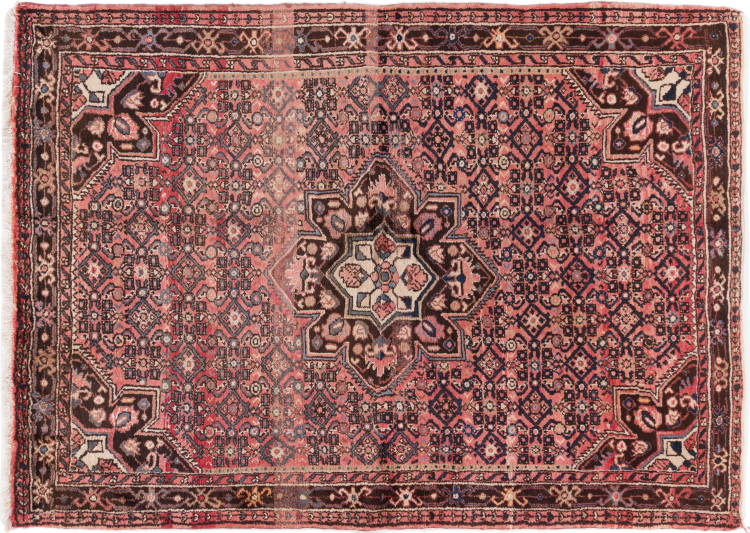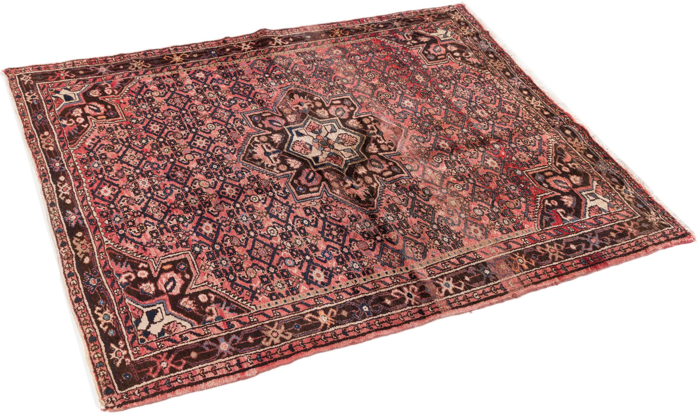 Carpet ID: 296441006733 Size: 224x160 cm Thickness: ap. 12 mm Knot density: 200 000 - 250 000 / m² Manufacturing: Knotted by hand Pile: Handspun wool Warp: Cotton Origin: Persia Age: Old, 30-50 years Weight: ap. 11 kg Also know as Huseinabad In stock: Unique - Only 1 in stock
