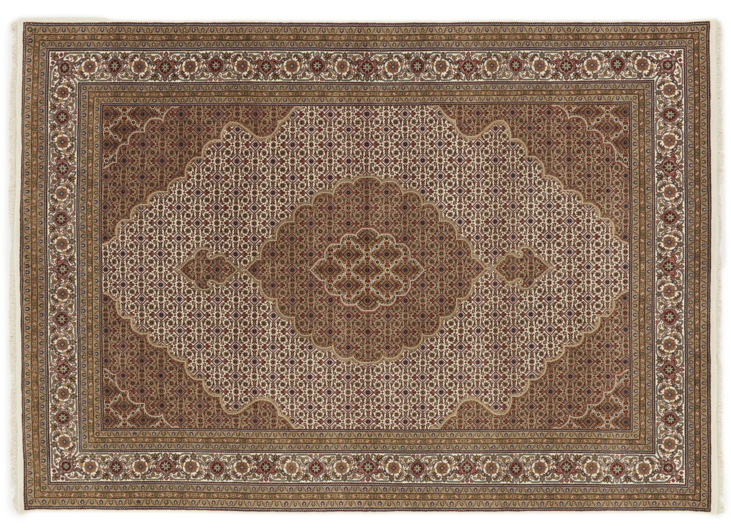 This Indo Tabriz is a very nice example of Indian handicraft. Knotted by hand and made with high-quality wool, it will remain faithful to you for decades. As the name suggests, it is based on the original Persian Tabriz carpets. The somewhat simpler knotting density requires less experience and effort, which makes it much more affordable. This carpet is a beautiful work of art and handicraft that lasts for months.