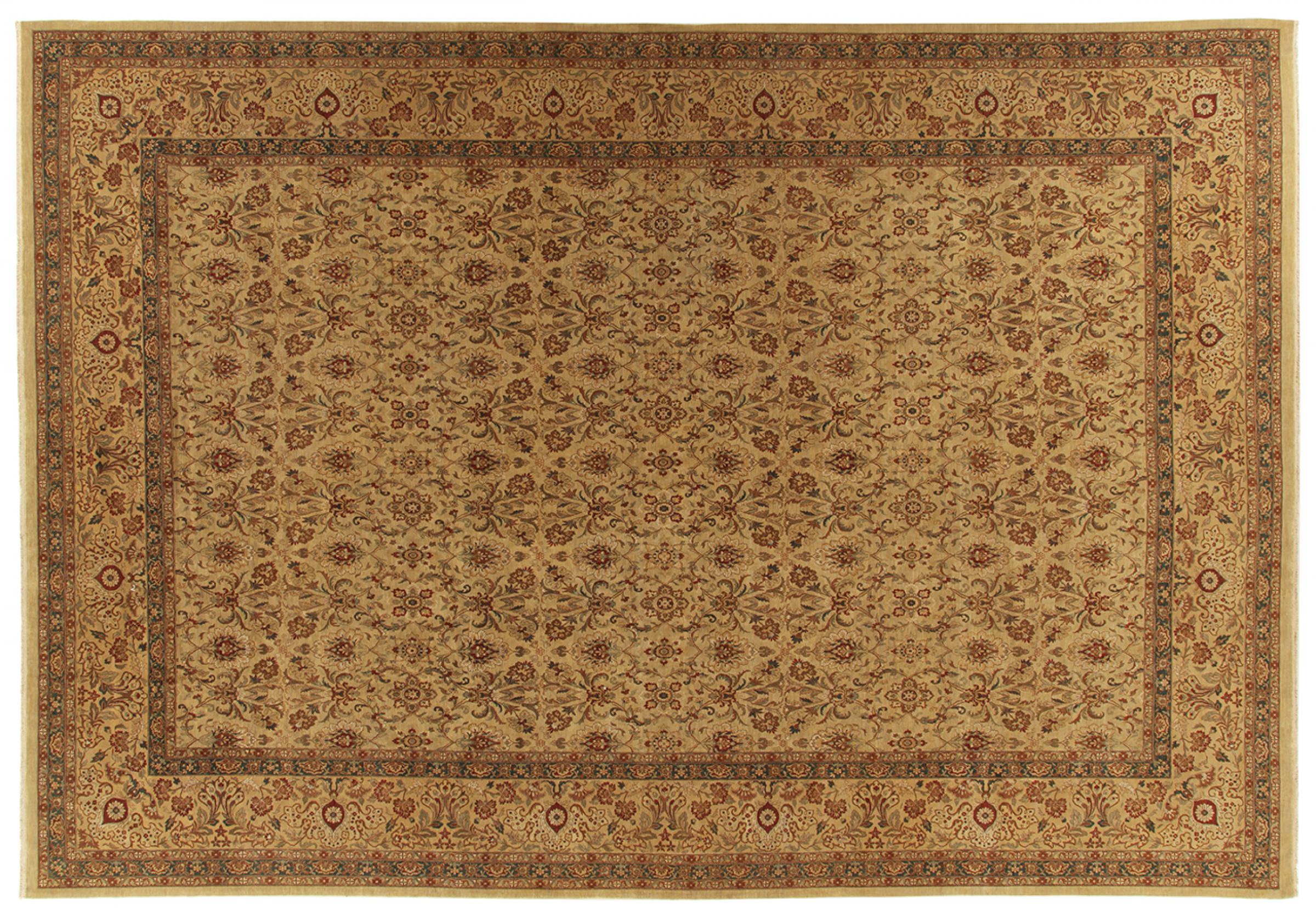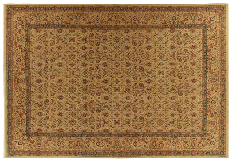 Carpet ID: 108393002666891 Size: 595x412 cm Thickness: ap. 12 mm Knot density: 320 000 - 350 000 / m² Manufacturing: Knotted by hand Pile: Sheep wool Warp: Cotton Origin: India Age: New Weight: ap. 98 kg Also know as Indo Täbriz In stock: Unique - Only 1 in stock