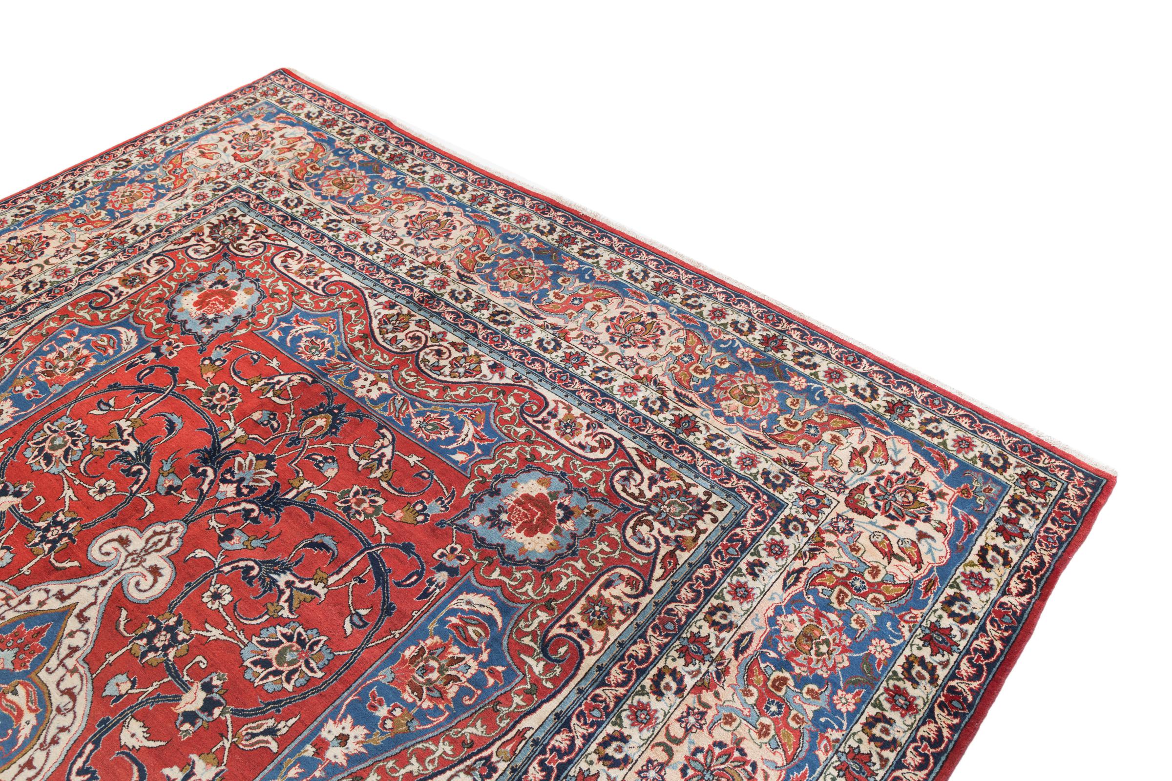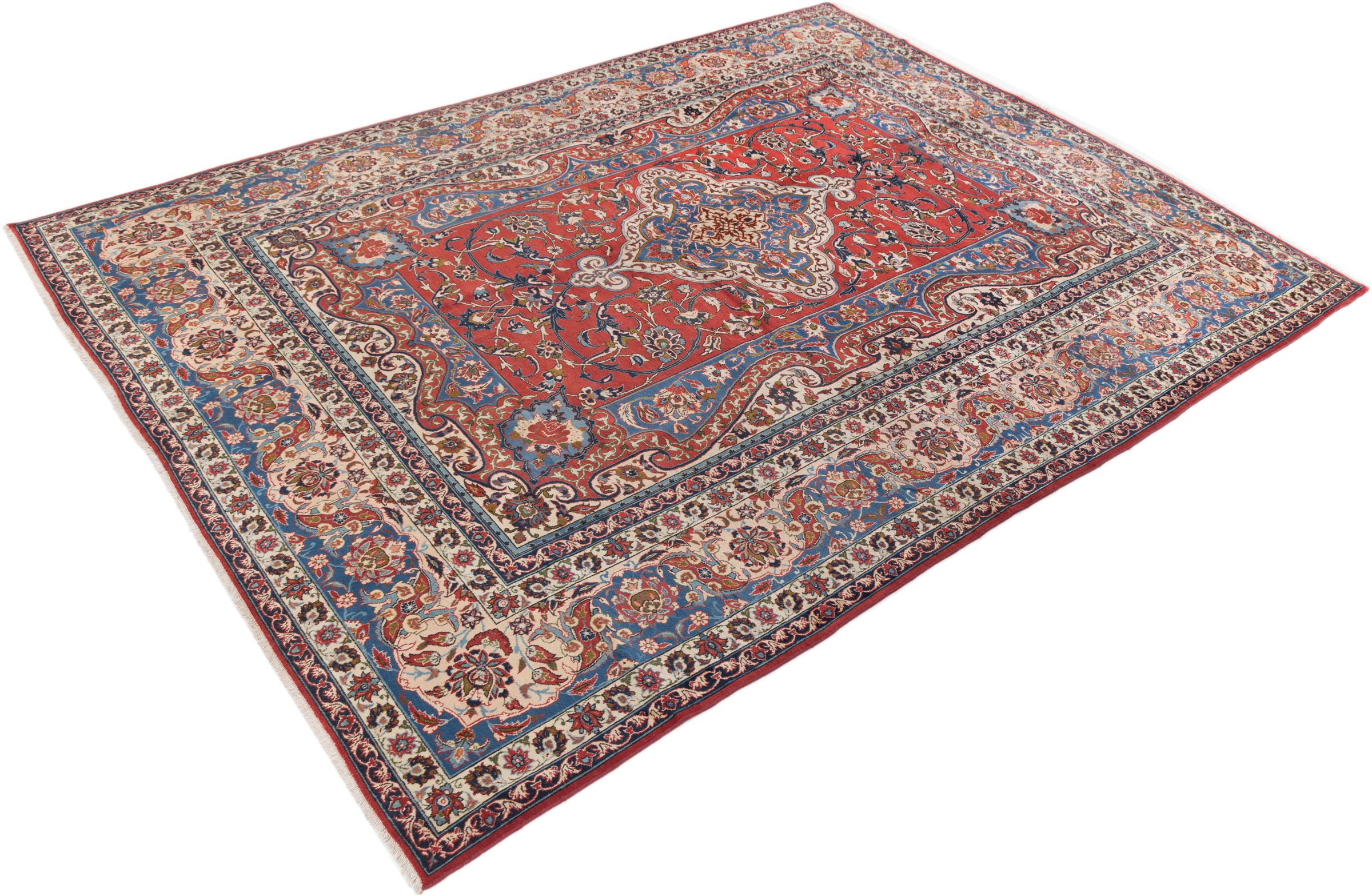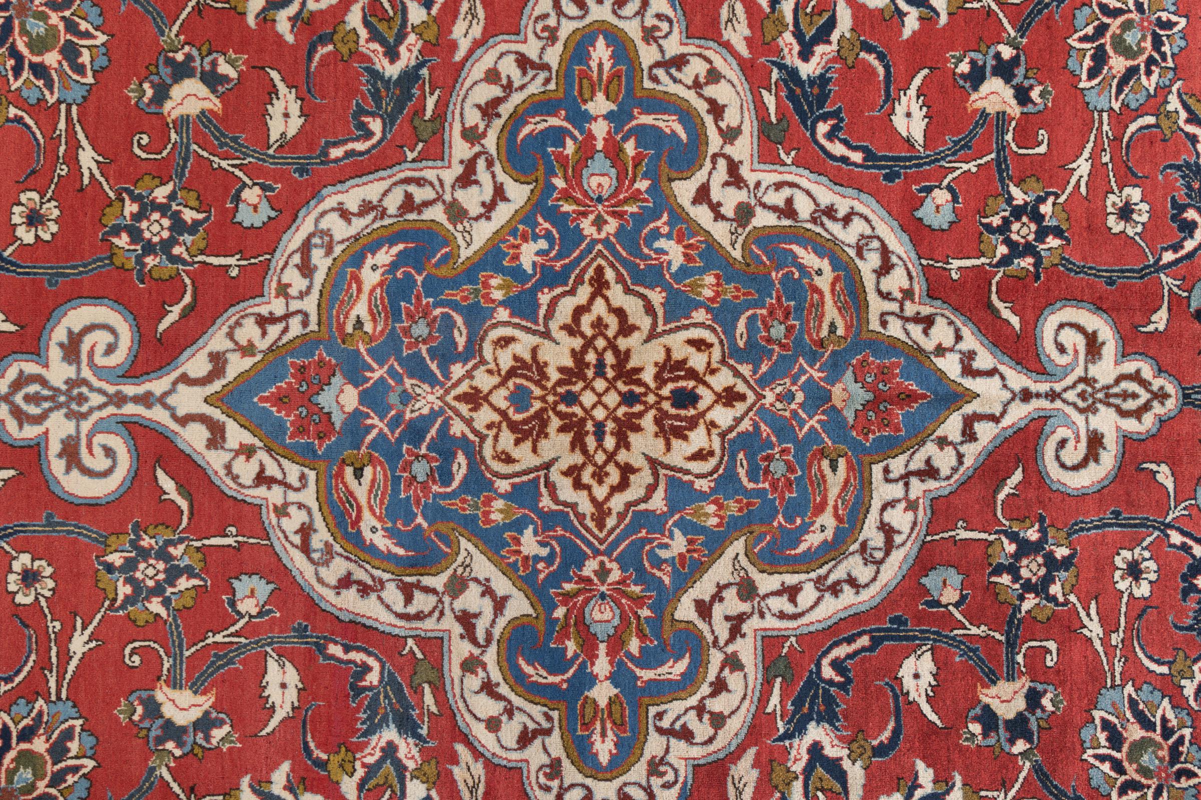 This Isfahan carpet is a piece of the most traditional handicraft. It has been made by hand with the most beautiful patterns. In fact, Isfahan carpets are known to count to the finest Persian carpets. This one has been knotted in Isfahan, which is famous of being the most beautiful city in Iran. The carpet is an exceptionally piece of art.