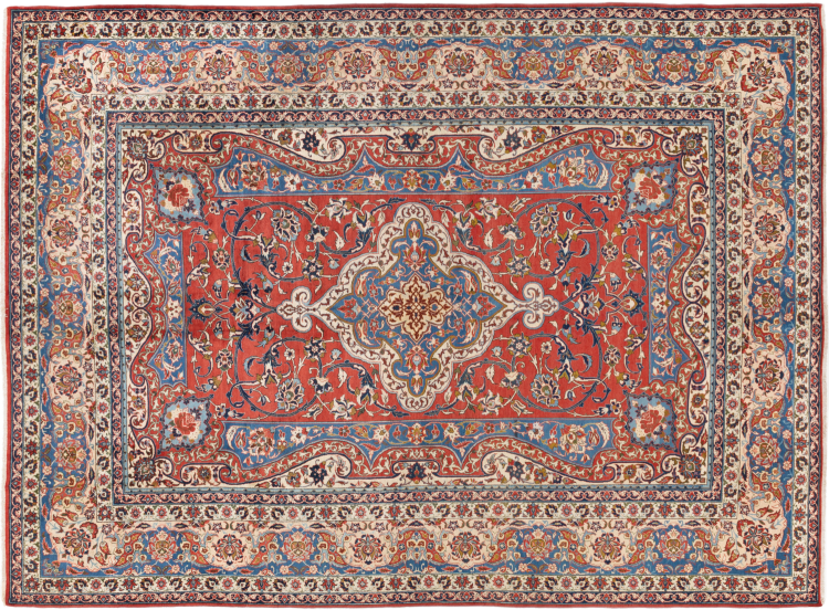 Rugs from this city belong to the probably most valuable hand-knotted Persian rugs worldwide. Very fine Isfahan rugs come from the studios of world-renowned master knotters who achieve a knot density of more than a million knots per square meter. To own an Isfahan means to have a Persian rug of the highest knotting skill. The design of these rugs is mostly inspired by the impressive mosques and squares of the city bearing the same name.