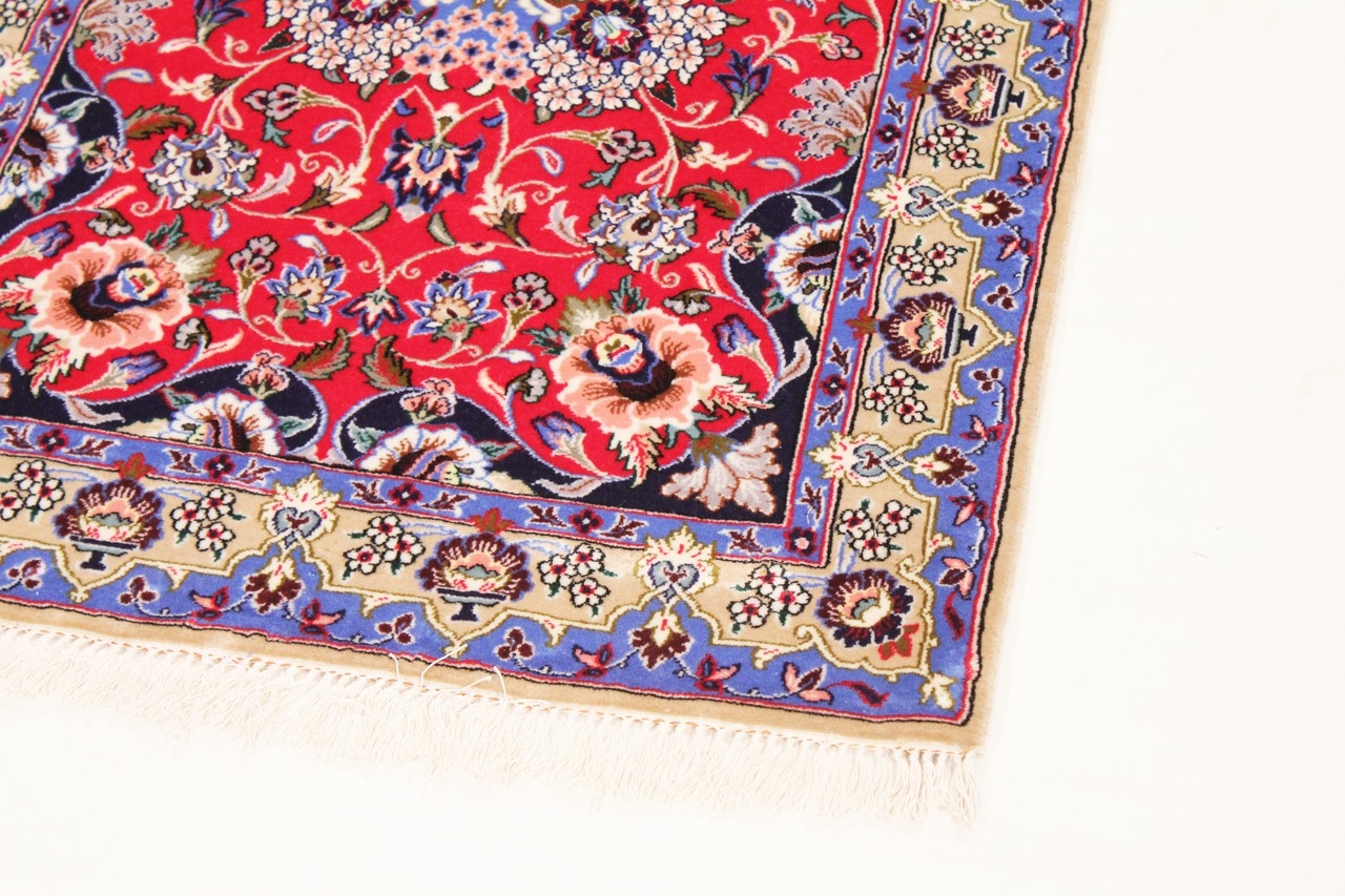 This Isfahan carpet is a piece of the most traditional handicraft. It has been made by hand with the most beautiful patterns. In fact, Isfahan carpets are known to count to the finest Persian carpets. This one has been knotted in Isfahan, which is famous of being the most beautiful city in Iran. The carpet is an exceptionally piece of art.