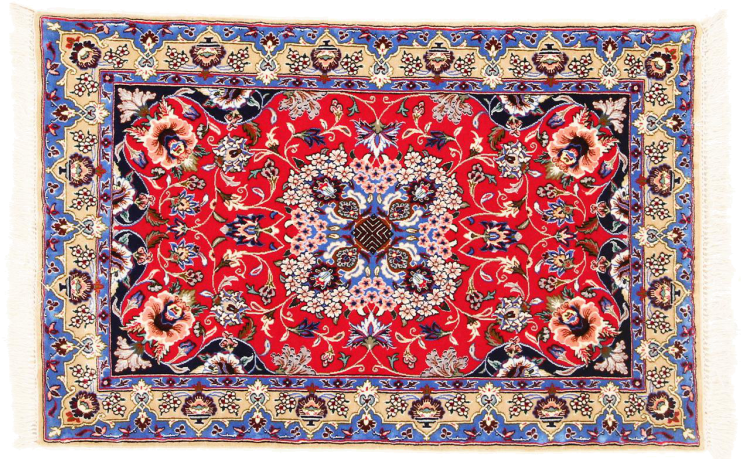 Rugs from this city belong to the probably most valuable hand-knotted Persian rugs worldwide. Very fine Isfahan rugs come from the studios of world-renowned master knotters who achieve a knot density of more than a million knots per square meter. To own an Isfahan means to have a Persian rug of the highest knotting skill. The design of these rugs is mostly inspired by the impressive mosques and squares of the city bearing the same name.
