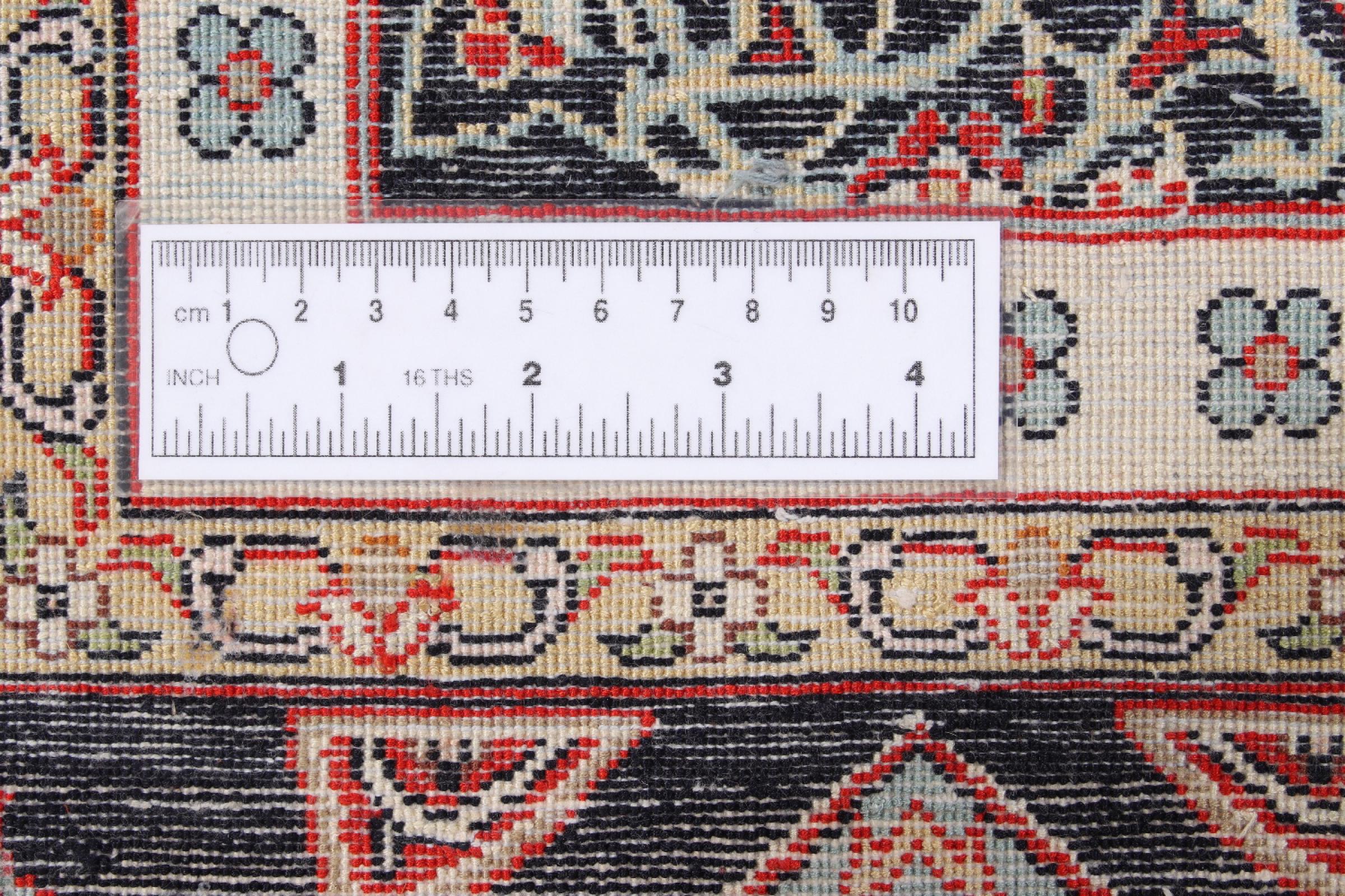 This hand-knotted silk carpet made of cashmere reflects the skills of Indian carpet weavers. The fine natural silk is a fascinating highlight. Not only does it feel particularly soft to the touch, it also lets its colours shine in a wide variety of facets. Depending on the incidence of light, completely new details and colours are visible. You can look at a carpet like this for hours and forget about time - an experience you can't capture in a photo.