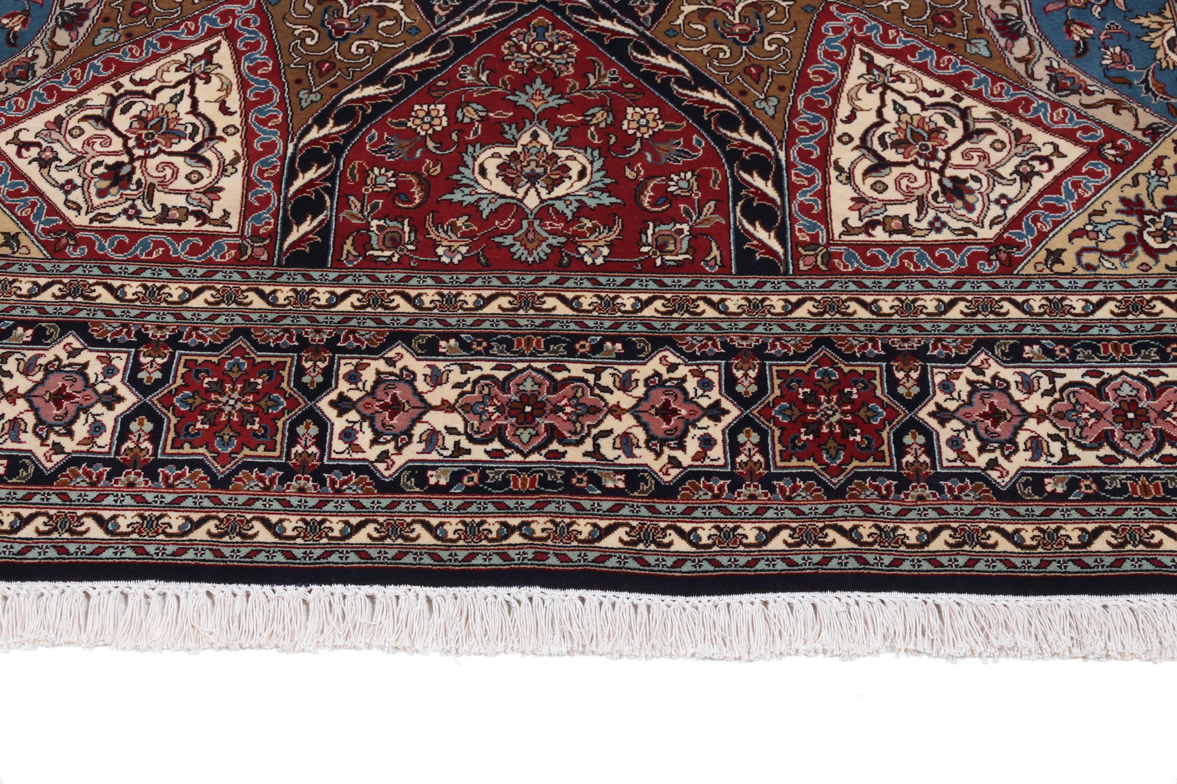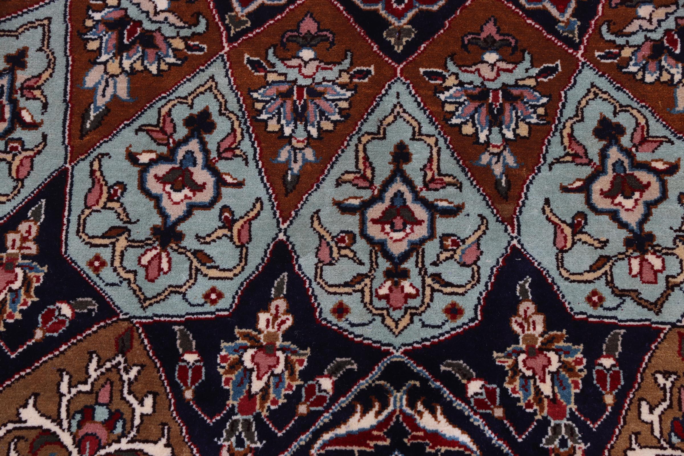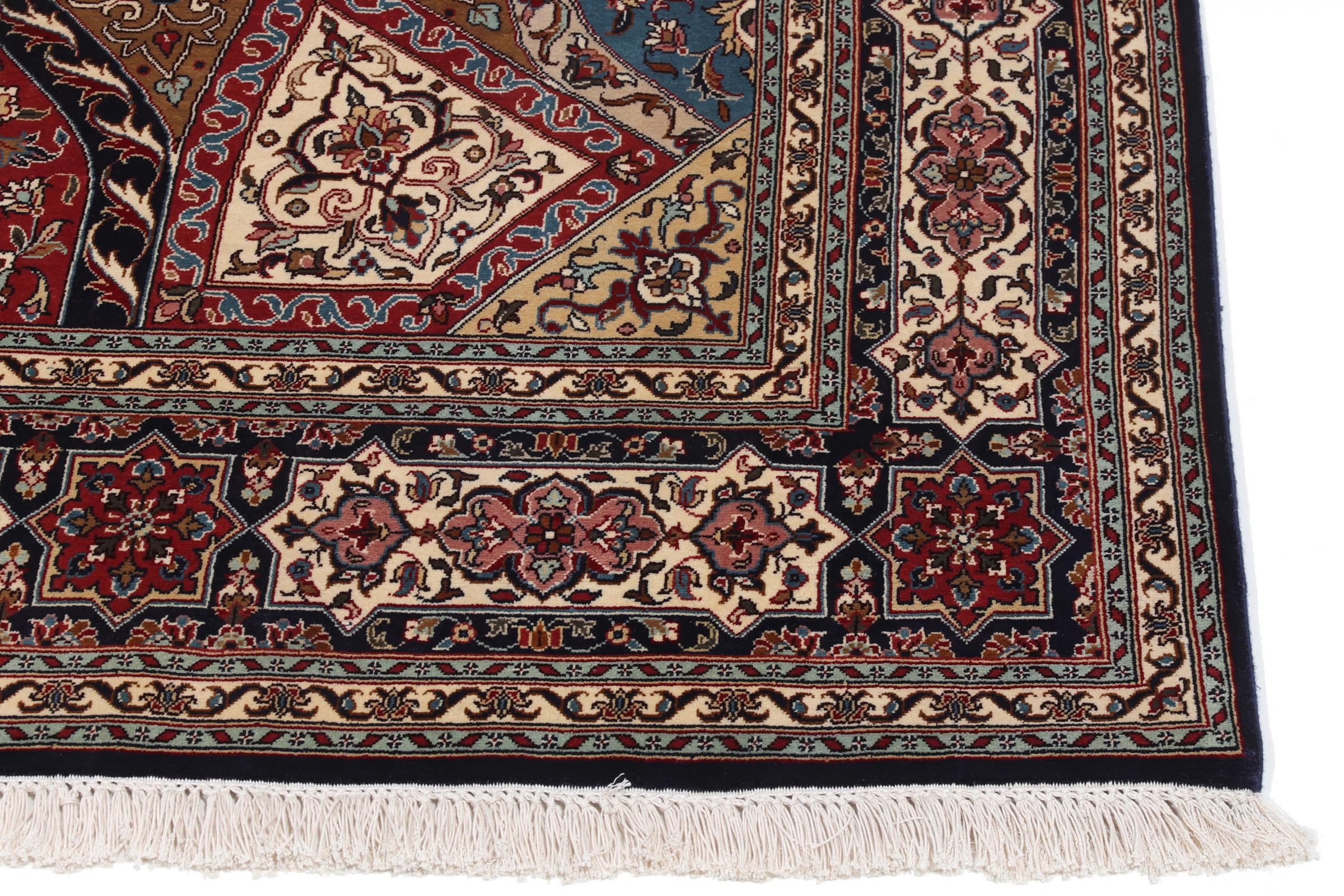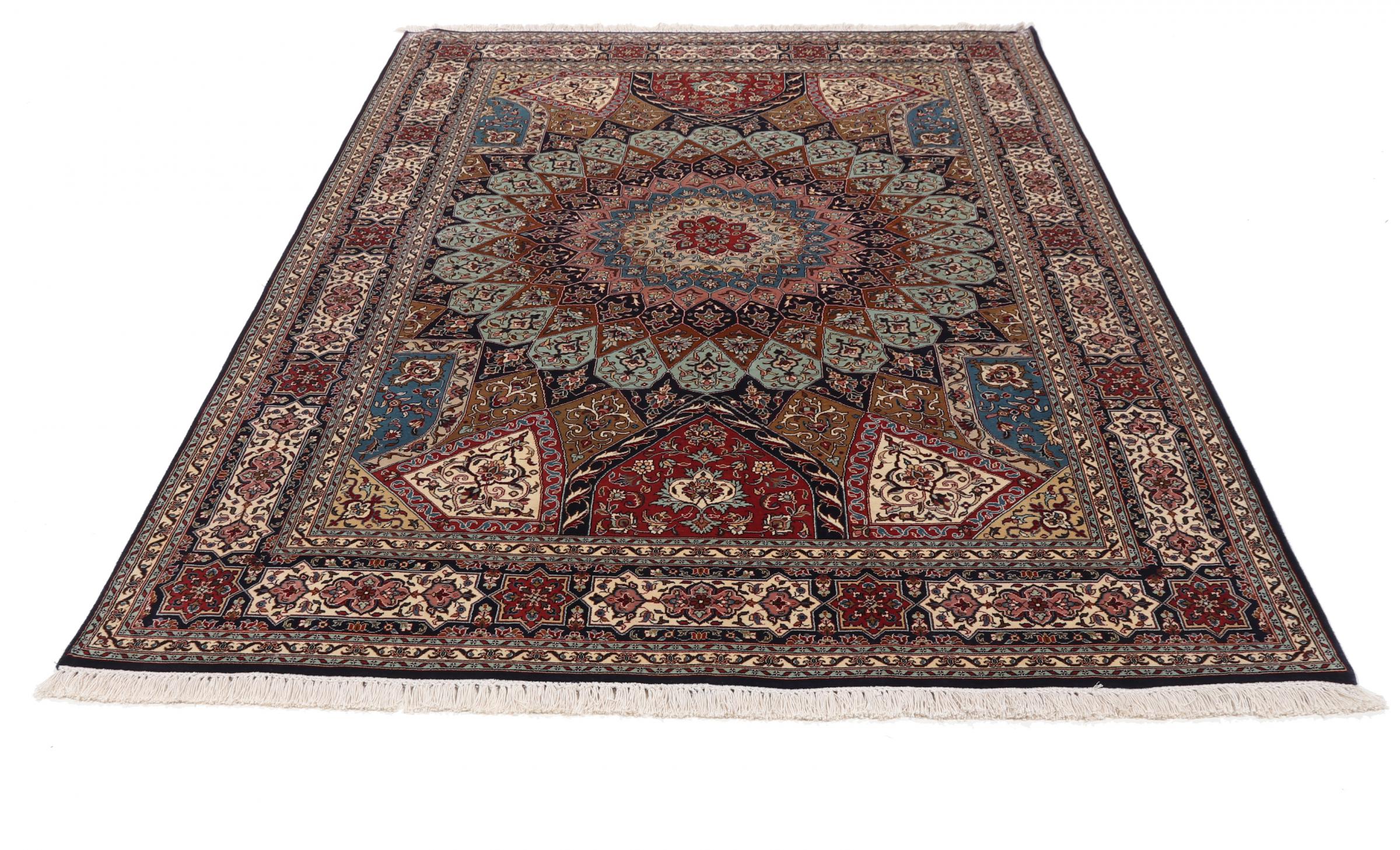 This hand-knotted silk carpet made of cashmere reflects the skills of Indian carpet weavers. The fine natural silk is a fascinating highlight. Not only does it feel particularly soft to the touch, it also lets its colours shine in a wide variety of facets. Depending on the incidence of light, completely new details and colours are visible. You can look at a carpet like this for hours and forget about time - an experience you can't capture in a photo.