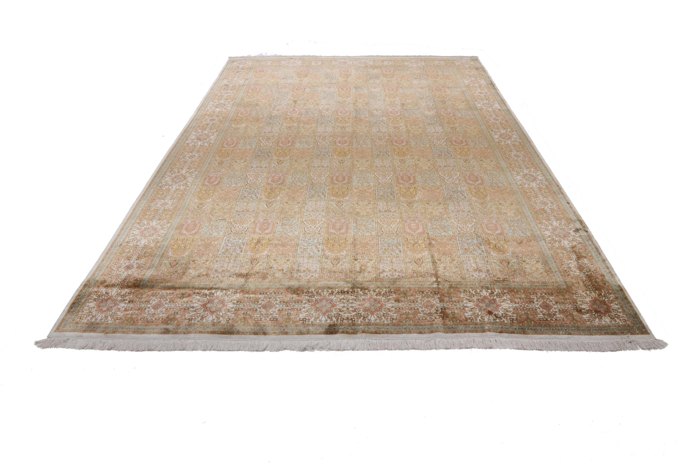 Carpet ID: 34921004344626 Size: 436x302 cm Thickness: ap. 5 mm Knot density: 650 000 / m² Manufacturing: Knotted by hand Pile: Silk Warp: Cotton Origin: India Age: New Weight: ap. 33 kg In stock: Unique - Only 1 in stock