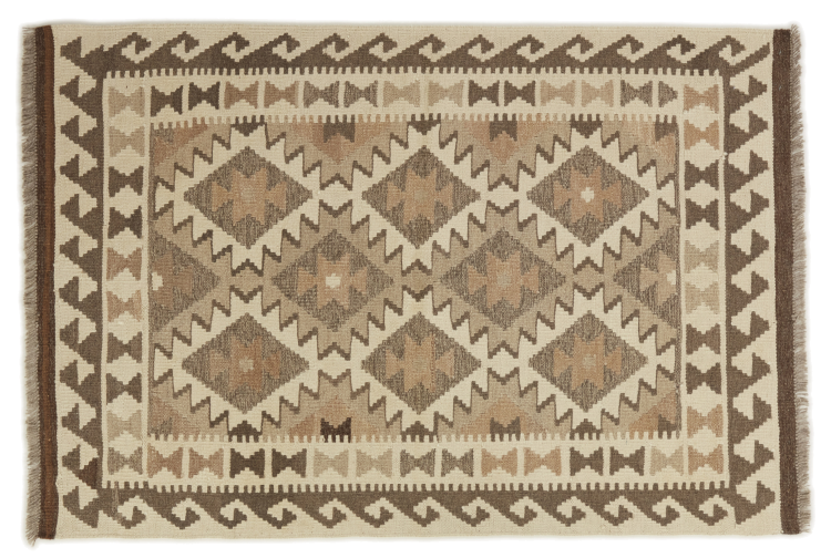 These kilim rugs show a decisive difference to hand-knotted rugs - they are woven by hand. Thus, they do not have a high pile of wool and are often flatter and rougher than knotted wool rugs. Their making is less elaborate and so they are usually much more affordable. As an advantage, kilim rugs are also much lighter and can be laid out from the front and back side. Hand-woven kilims originally come from the former Persia and are now also often made in Afghanistan. They have rather simple, straightforward patterns, which are determined by their weaving technique.