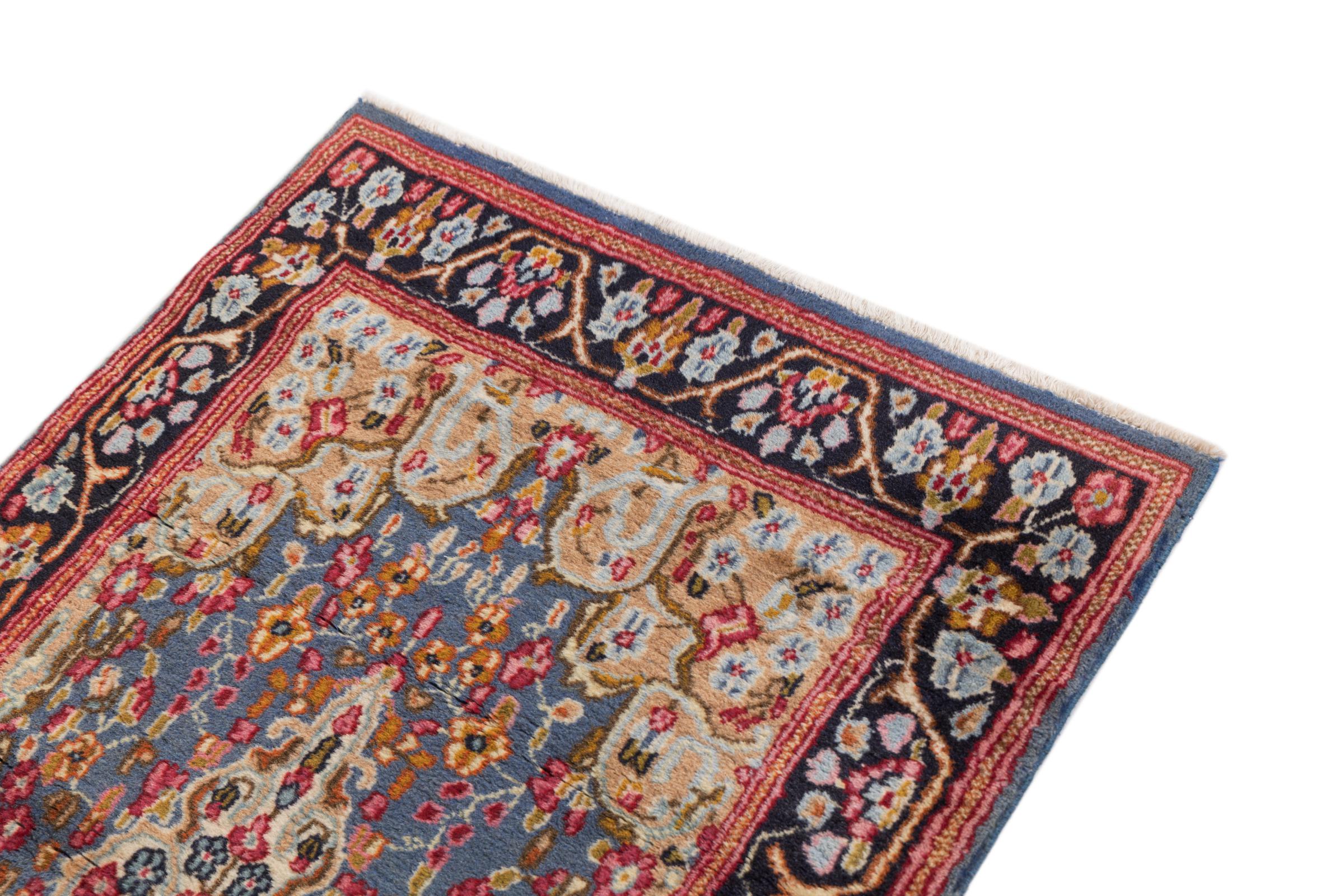 This antique Kerman Carpet is magnifying. Its patterns, the colours and the processed yarn let him be alive after all these years. A masterpiece. Kerman Carpets are handmade in the city of Kerman, which is an oasis in the desert and belong to the best Oriental Carpets of the world. Get yourself a piece of antique handicraft.