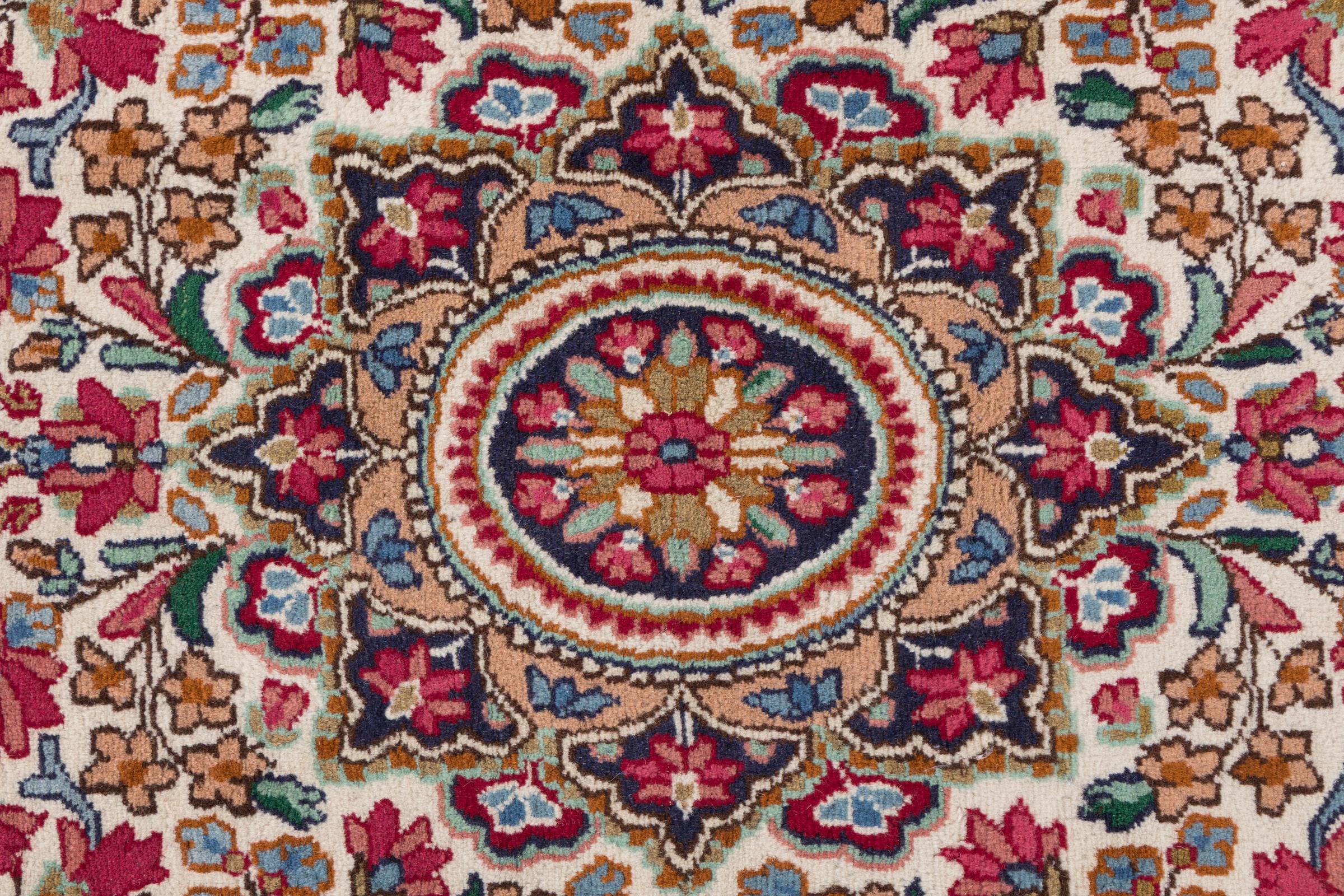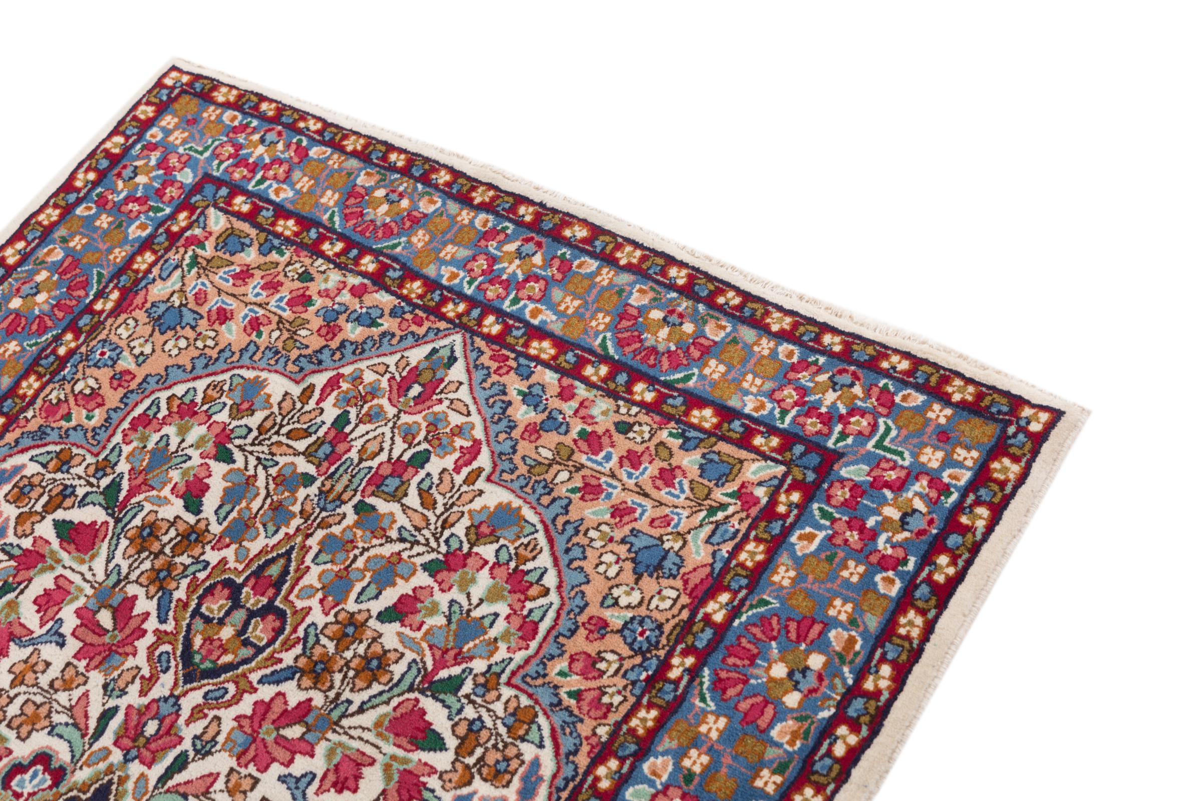 Once, hand-knotted rugs from the desert city of Kerman were considered the best Persian and oriental rugs. Today this reputation is no longer true, but these Persian rugs are still undisputedly among the highest quality oriental rugs. Kerman rugs are known for their rich floral ornaments, the strong plant colours and their pompous medallions in the centre. Kerman carpets have a long tradition.