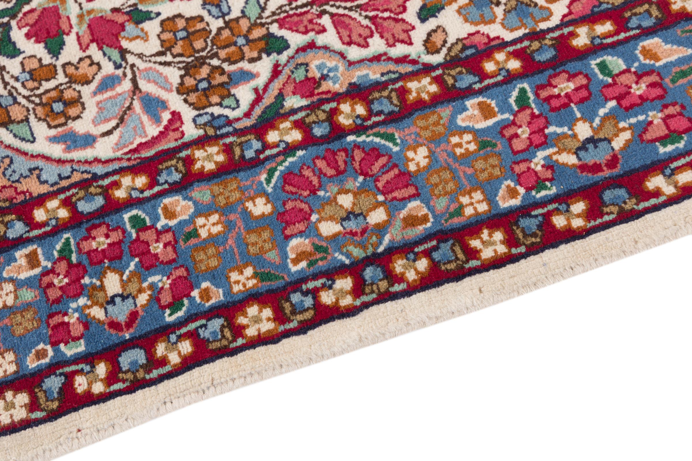 This Kerman carpet is truly impressive, its quality and design are a wonderful composition of oriental art. It has been crafted by hand in Kerman, an oasis in a desert far out from Teheran. Floral ornaments are typical for this type of carpet, something you value highly in an oasis of the wide desert. The design of these carpets is unique and special among other Persian rugs.
