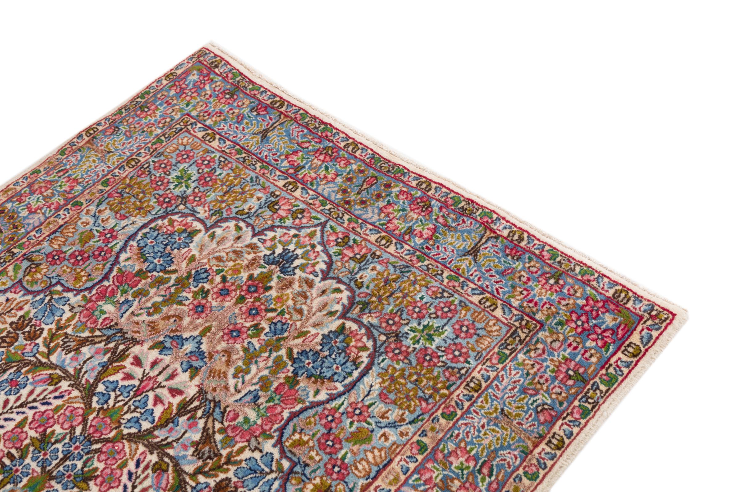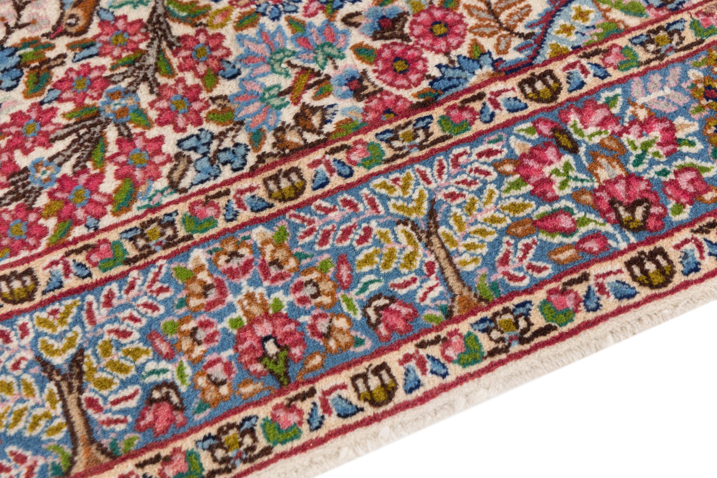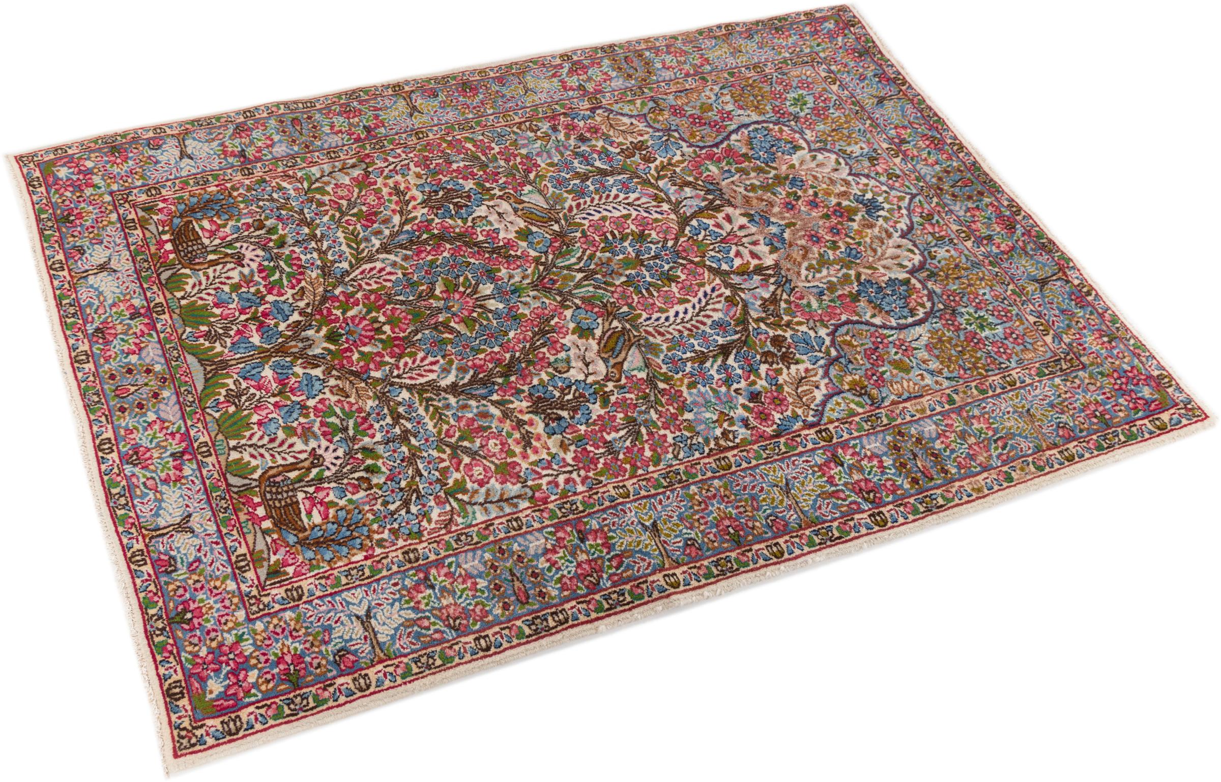 This Kerman carpet is truly impressive, its quality and design are a wonderful composition of oriental art. It has been crafted by hand in Kerman, an oasis in a desert far out from Teheran. Floral ornaments are typical for this type of carpet, something you value highly in an oasis of the wide desert. The design of these carpets is unique and special among other Persian rugs.