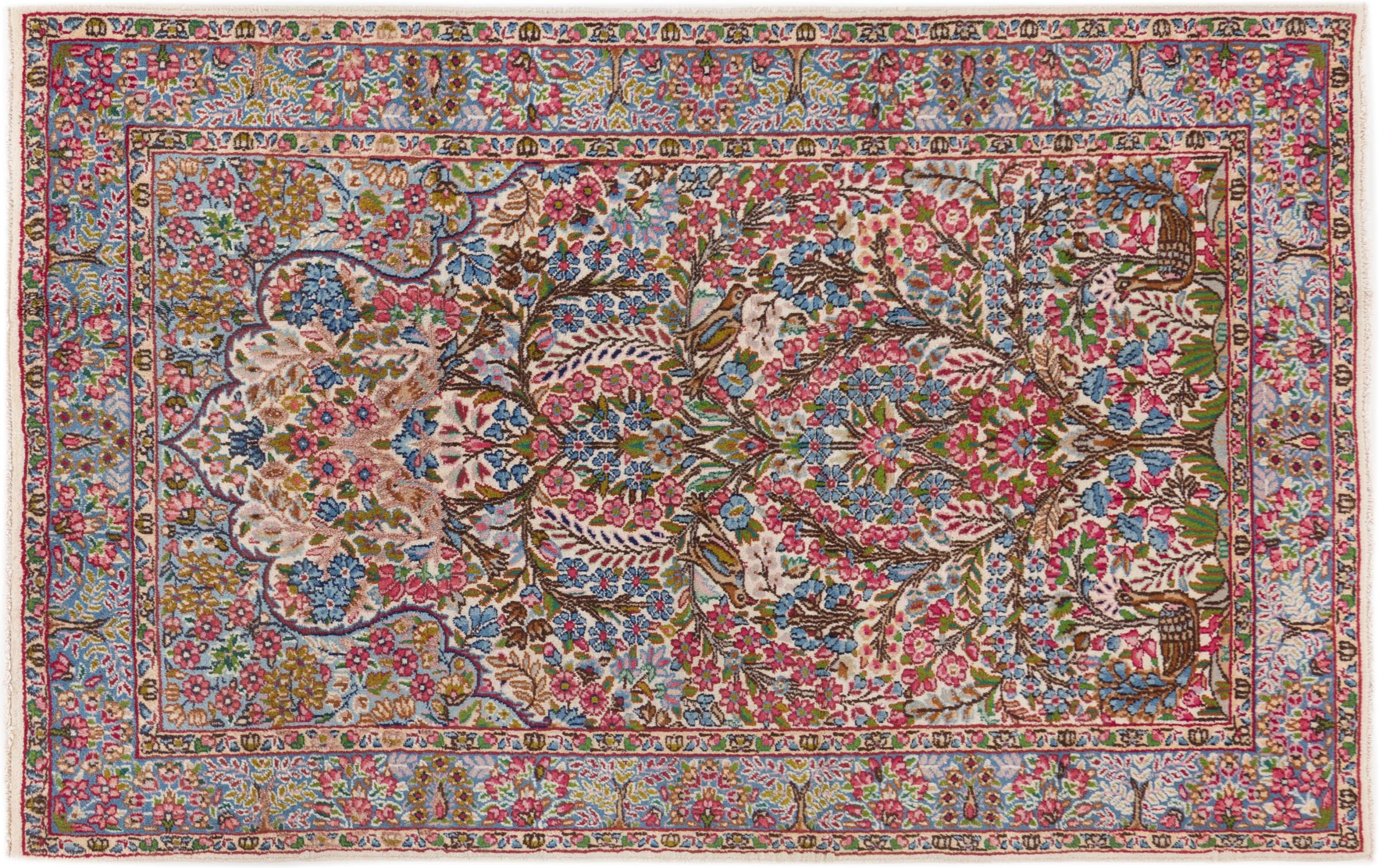 Once, hand-knotted rugs from the desert city of Kerman were considered the best Persian and oriental rugs. Today this reputation is no longer true, but these Persian rugs are still undisputedly among the highest quality oriental rugs. Kerman rugs are known for their rich floral ornaments, the strong plant colours and their pompous medallions in the centre. Kerman carpets have a long tradition.
