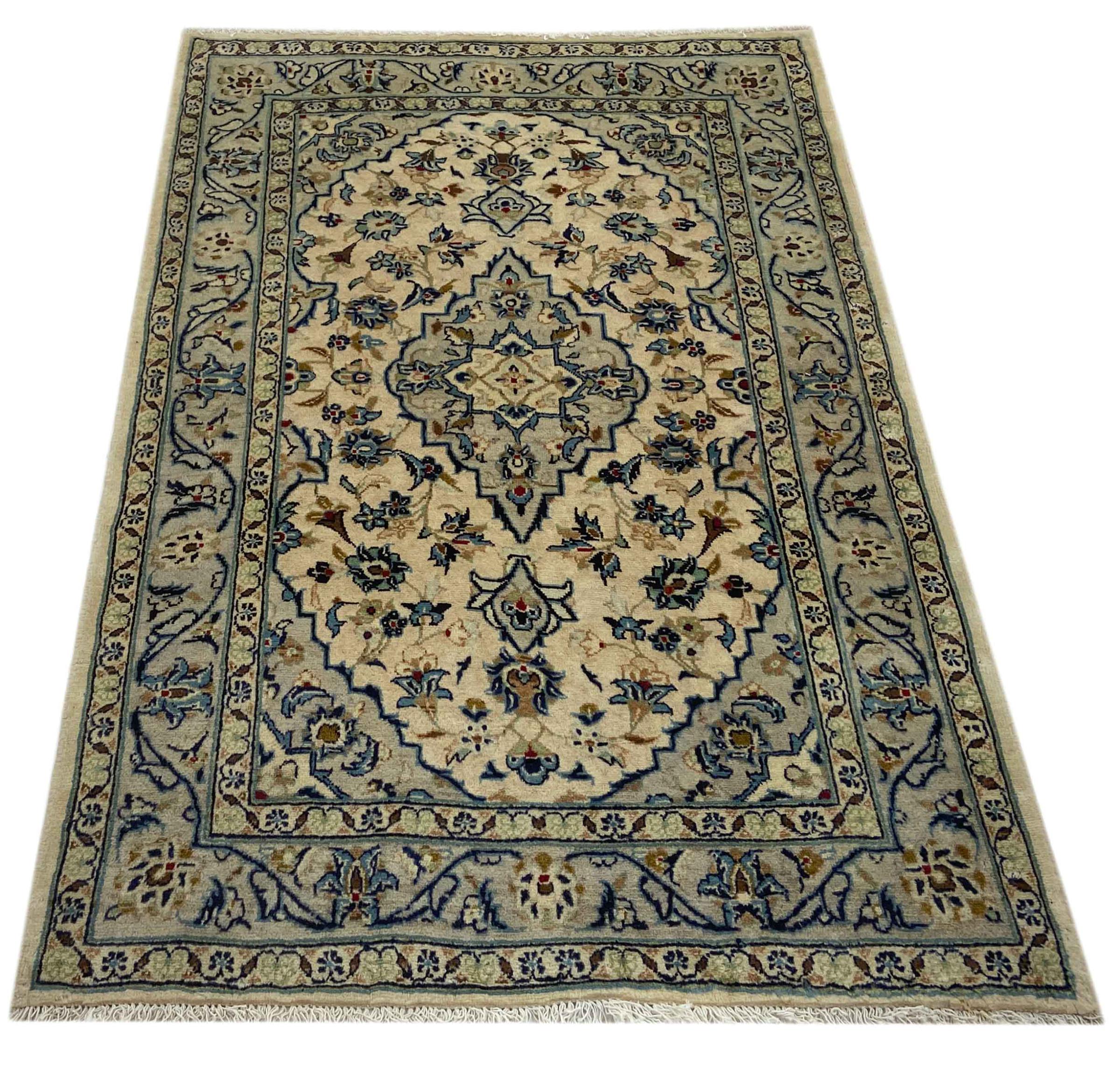 Hand knotted rugs from the city of Kashan (Keshan) are known worldwide. Not only do these Persian rugs have a very popular design, but their quality is undisputedly one of the best. In the Persian Empire the city was considered one of the most important trading places along the famous Silk Road. Kashan rugs usually have a central medallion, floral ornaments and a red background. They are made of high-quality sheep's wool and vegetable dyes.