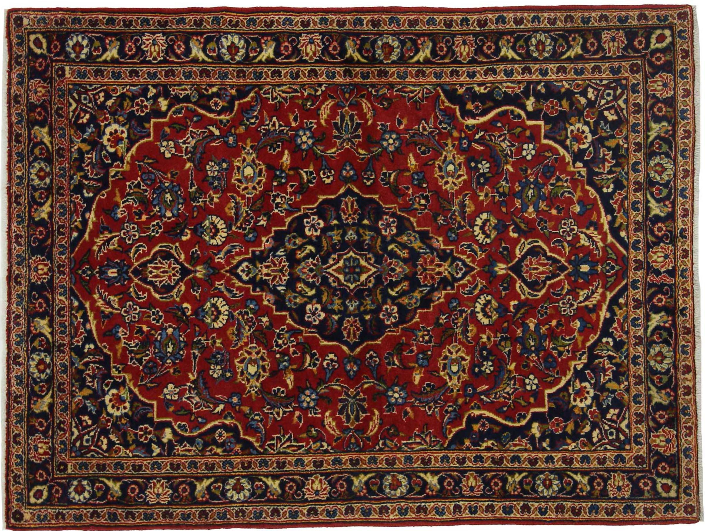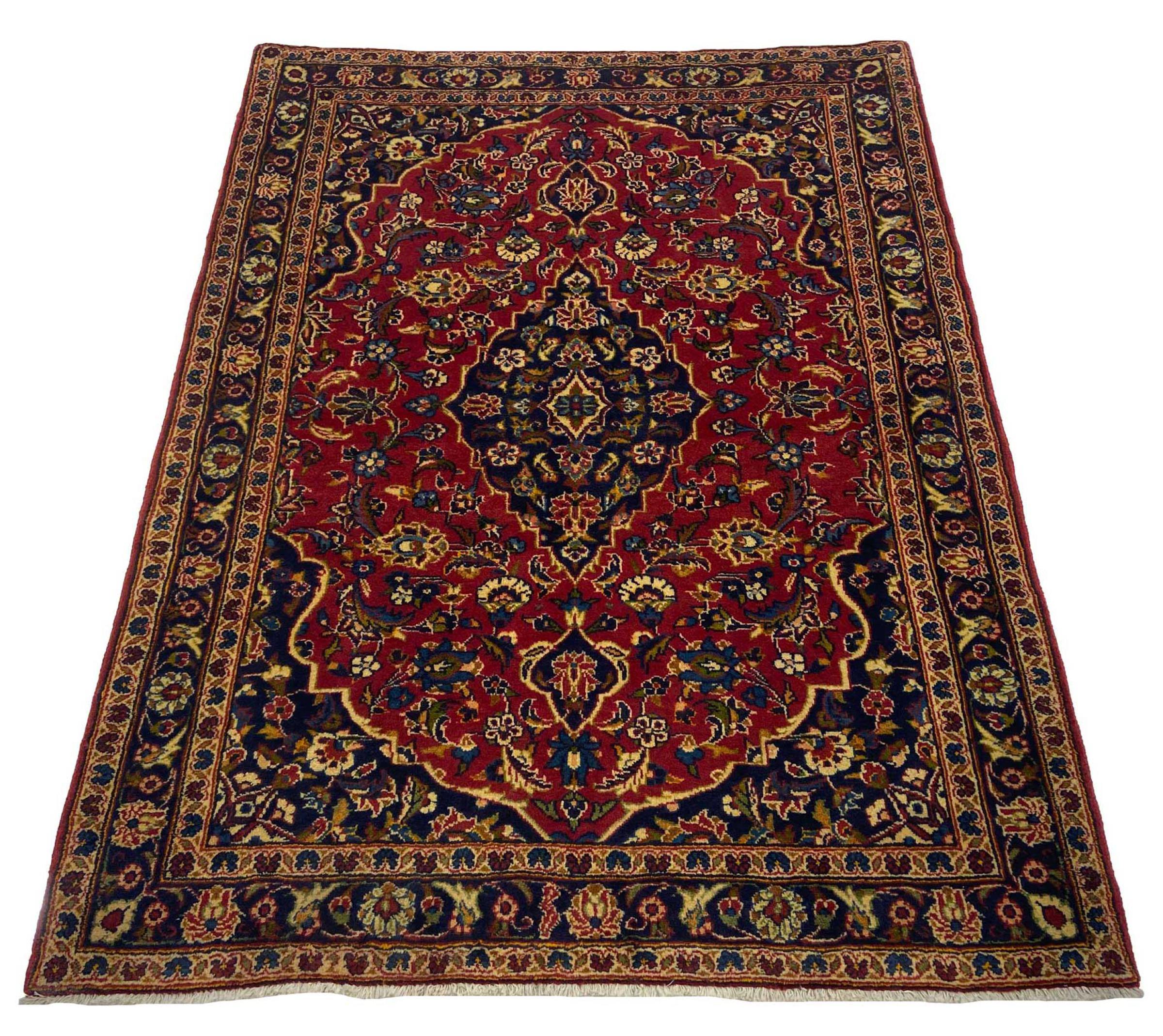 Hand knotted rugs from the city of Kashan (Keshan) are known worldwide. Not only do these Persian rugs have a very popular design, but their quality is undisputedly one of the best. In the Persian Empire the city was considered one of the most important trading places along the famous Silk Road. Kashan rugs usually have a central medallion, floral ornaments and a red background. They are made of high-quality sheep's wool and vegetable dyes.