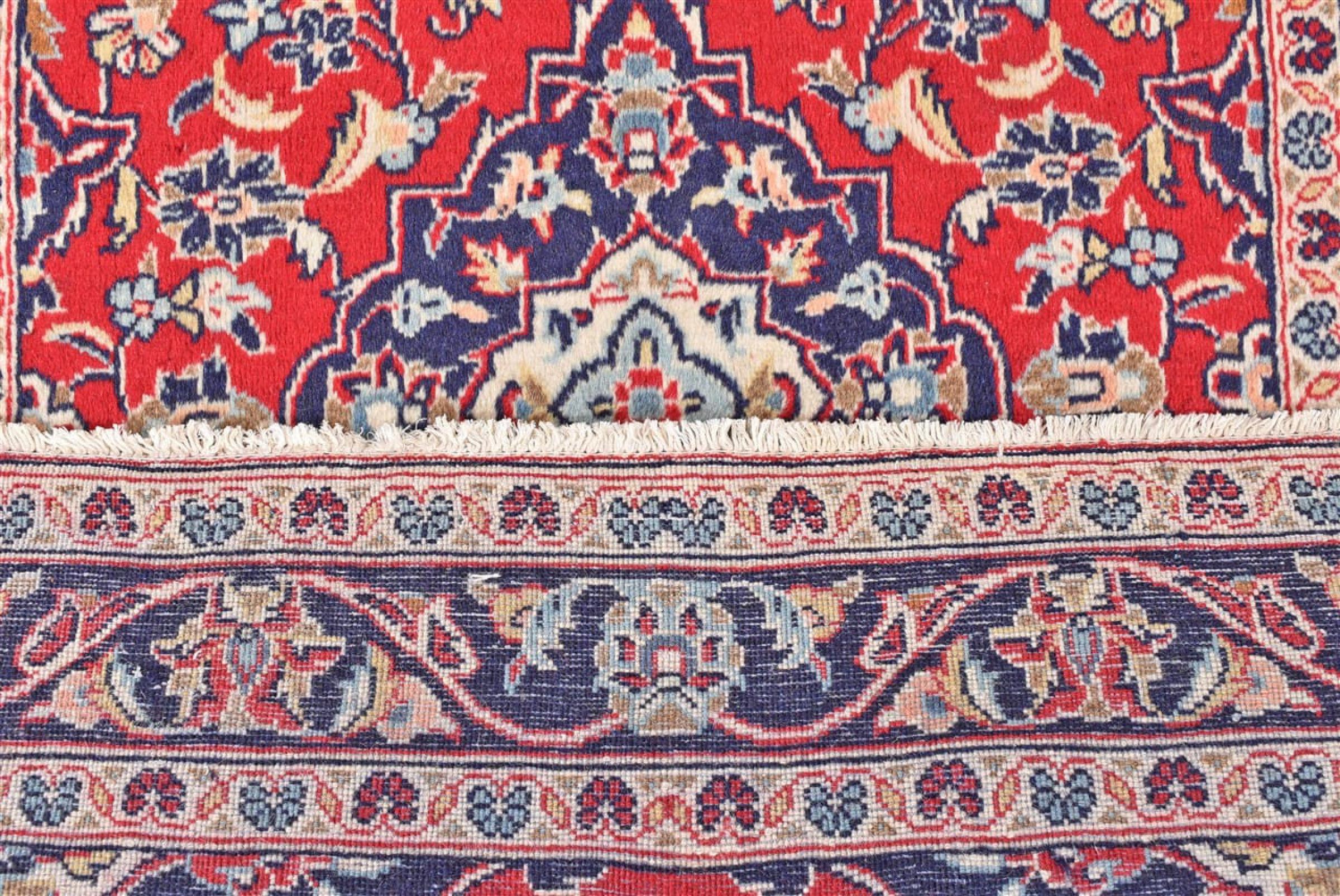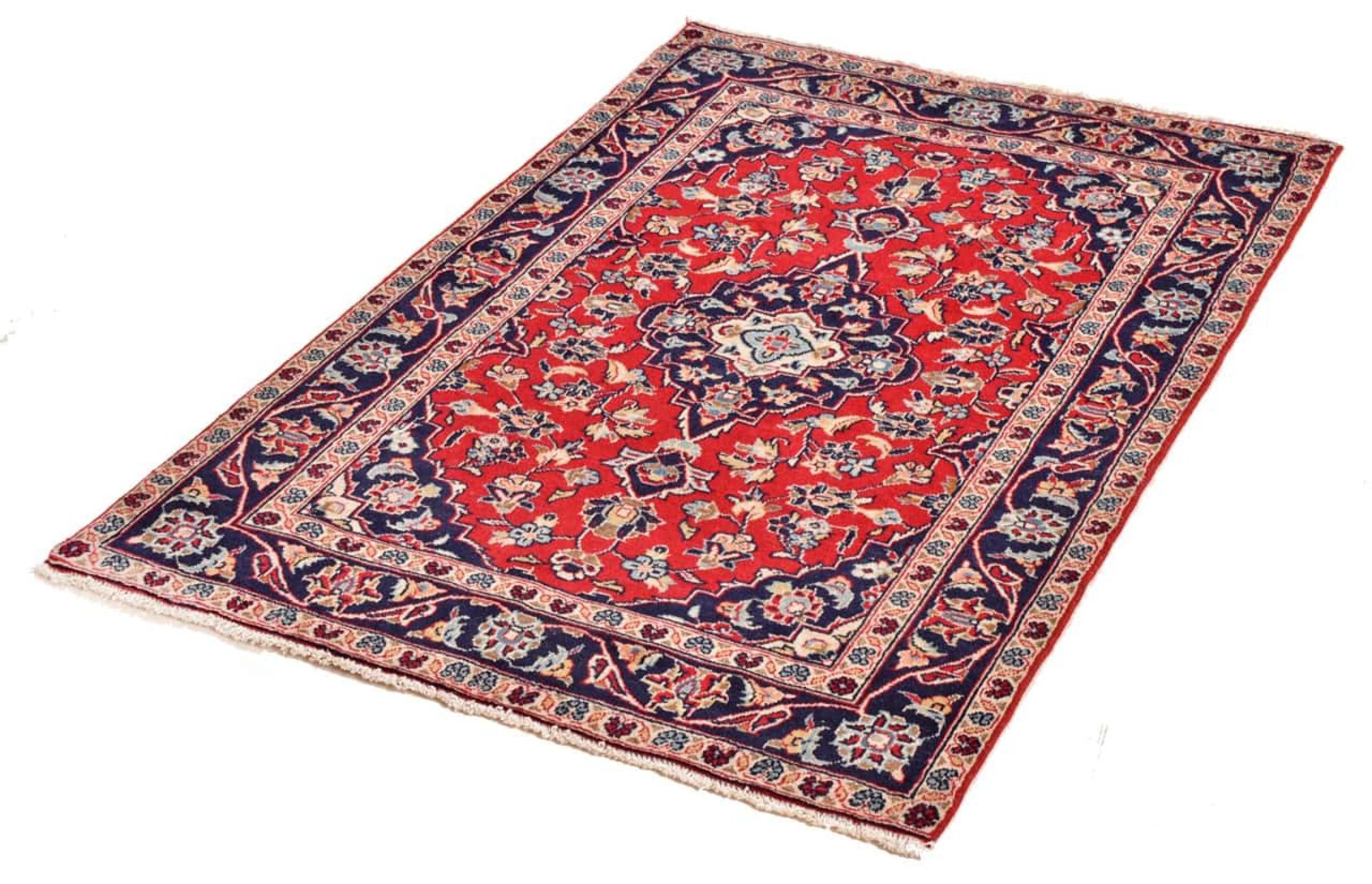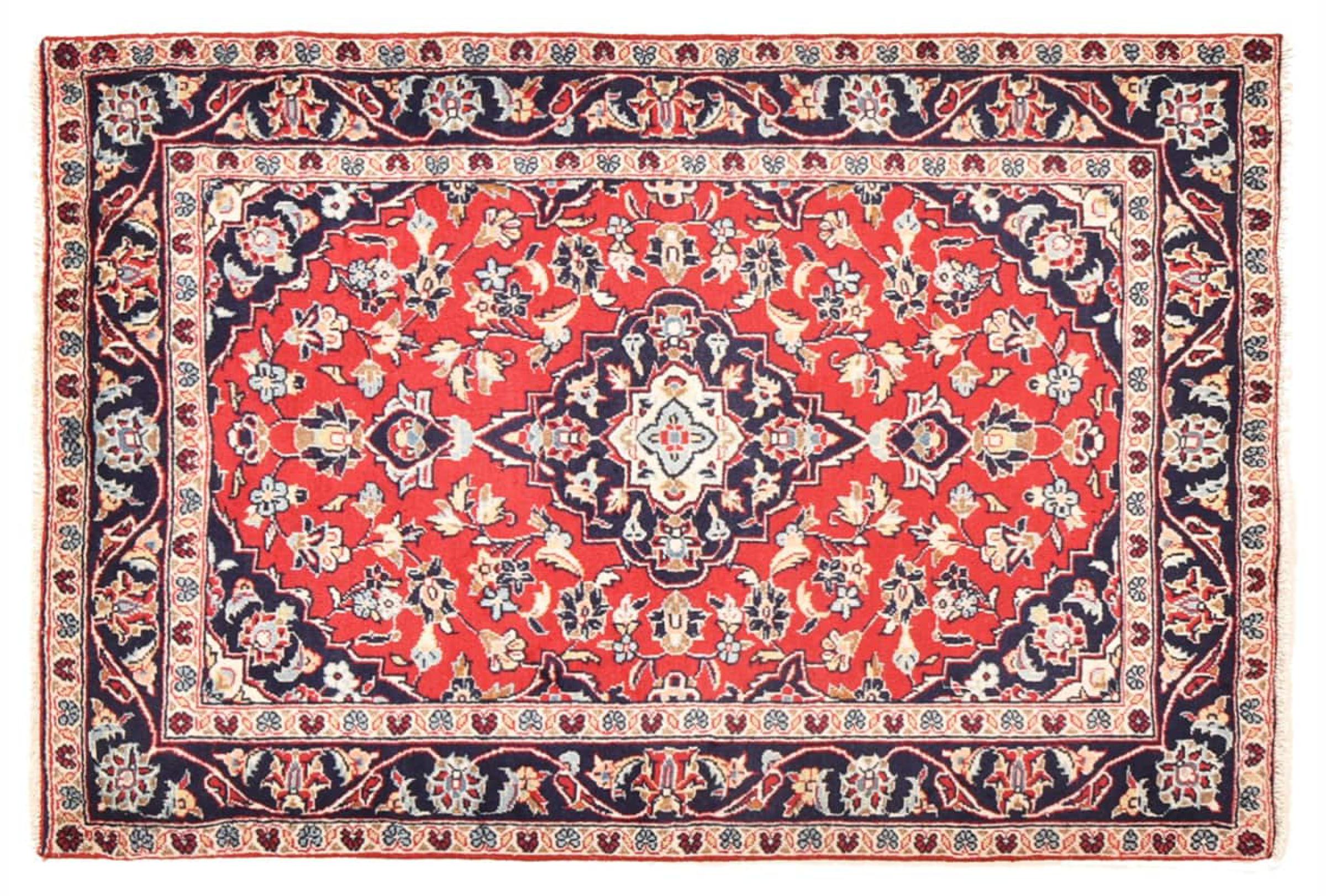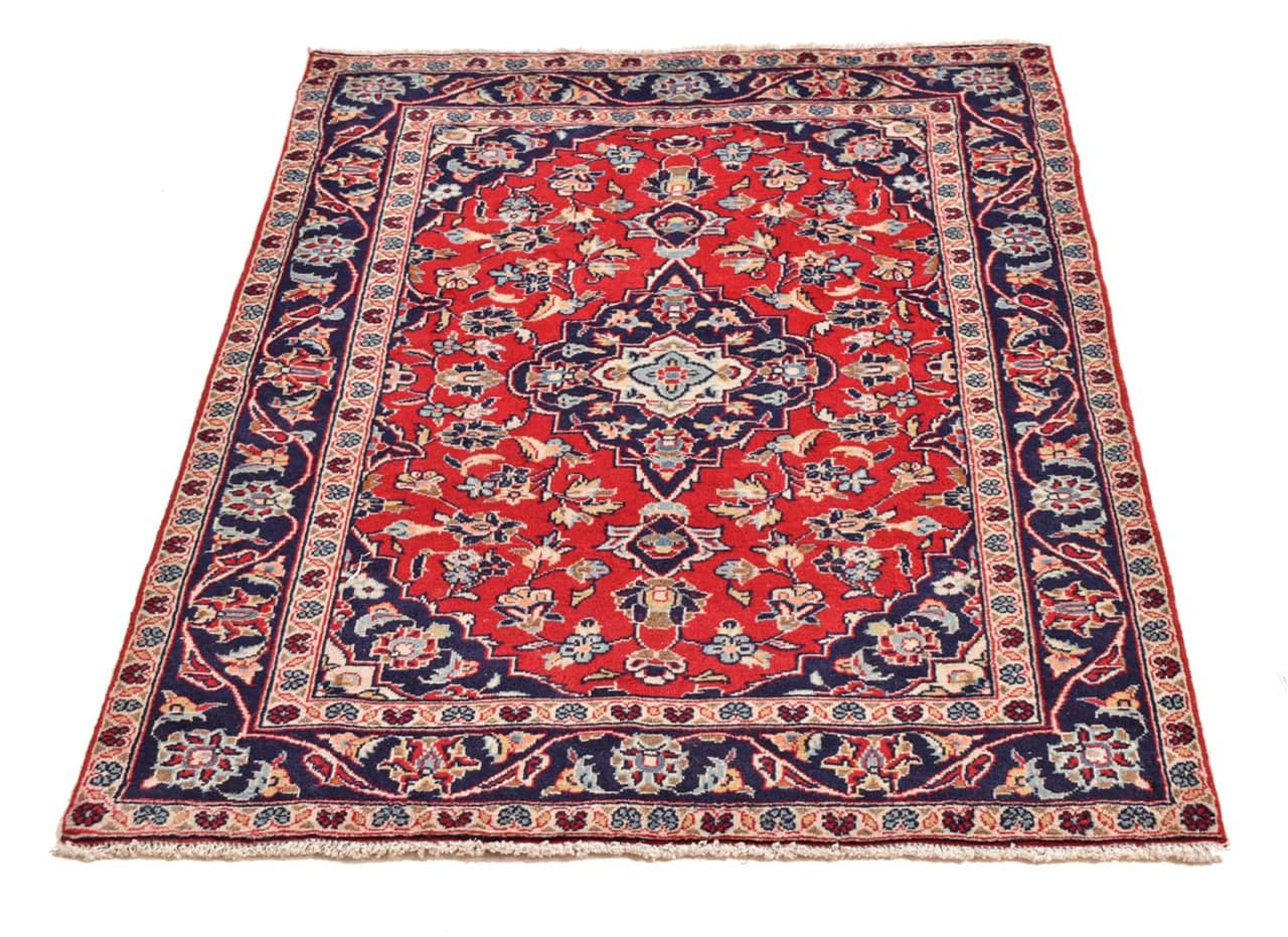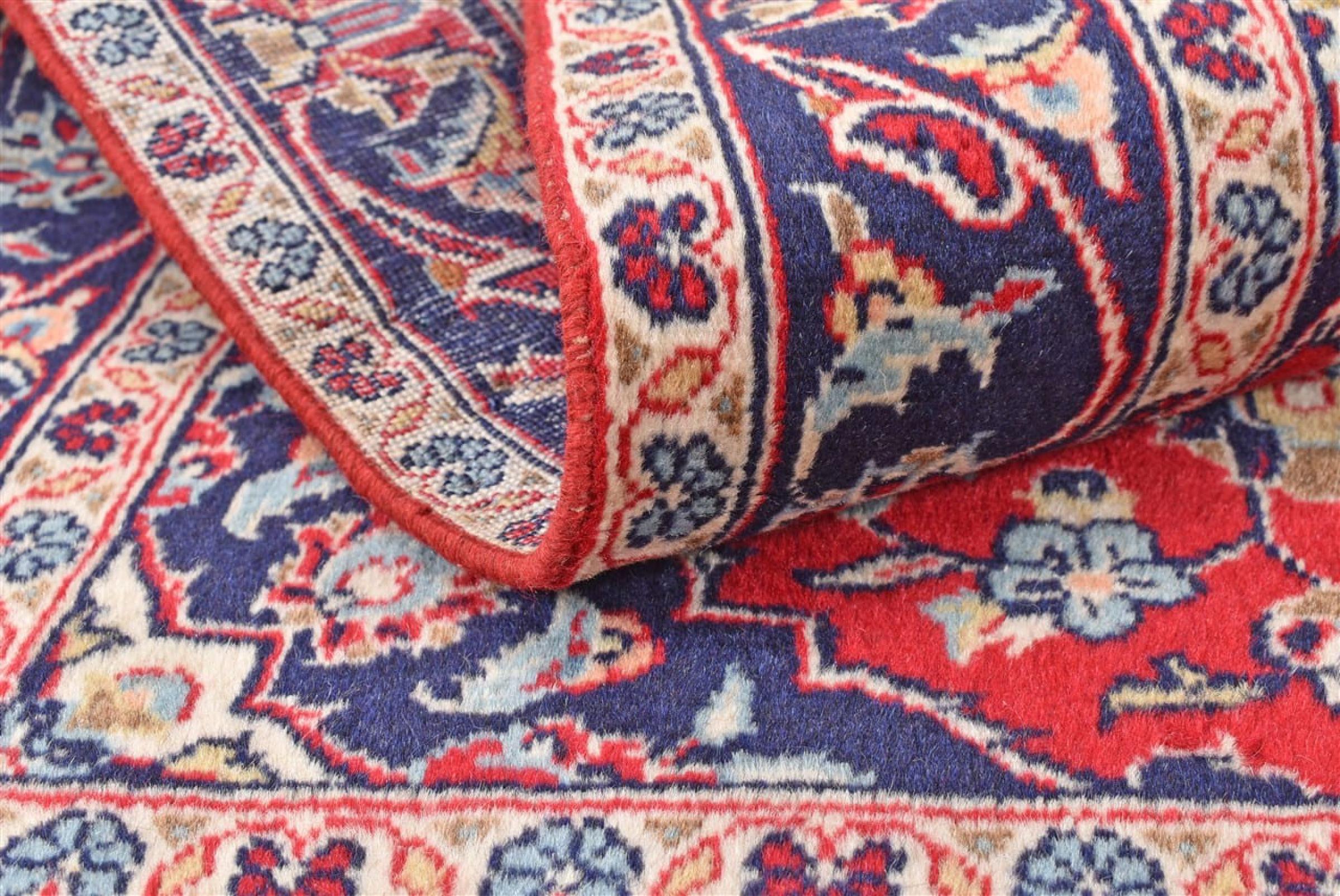 Hand knotted rugs from the city of Kashan (Keshan) are known worldwide. Not only do these Persian rugs have a very popular design, but their quality is undisputedly one of the best. In the Persian Empire the city was considered one of the most important trading places along the famous Silk Road. Kashan rugs usually have a central medallion, floral ornaments and a red background. They are made of high-quality sheep's wool and vegetable dyes.