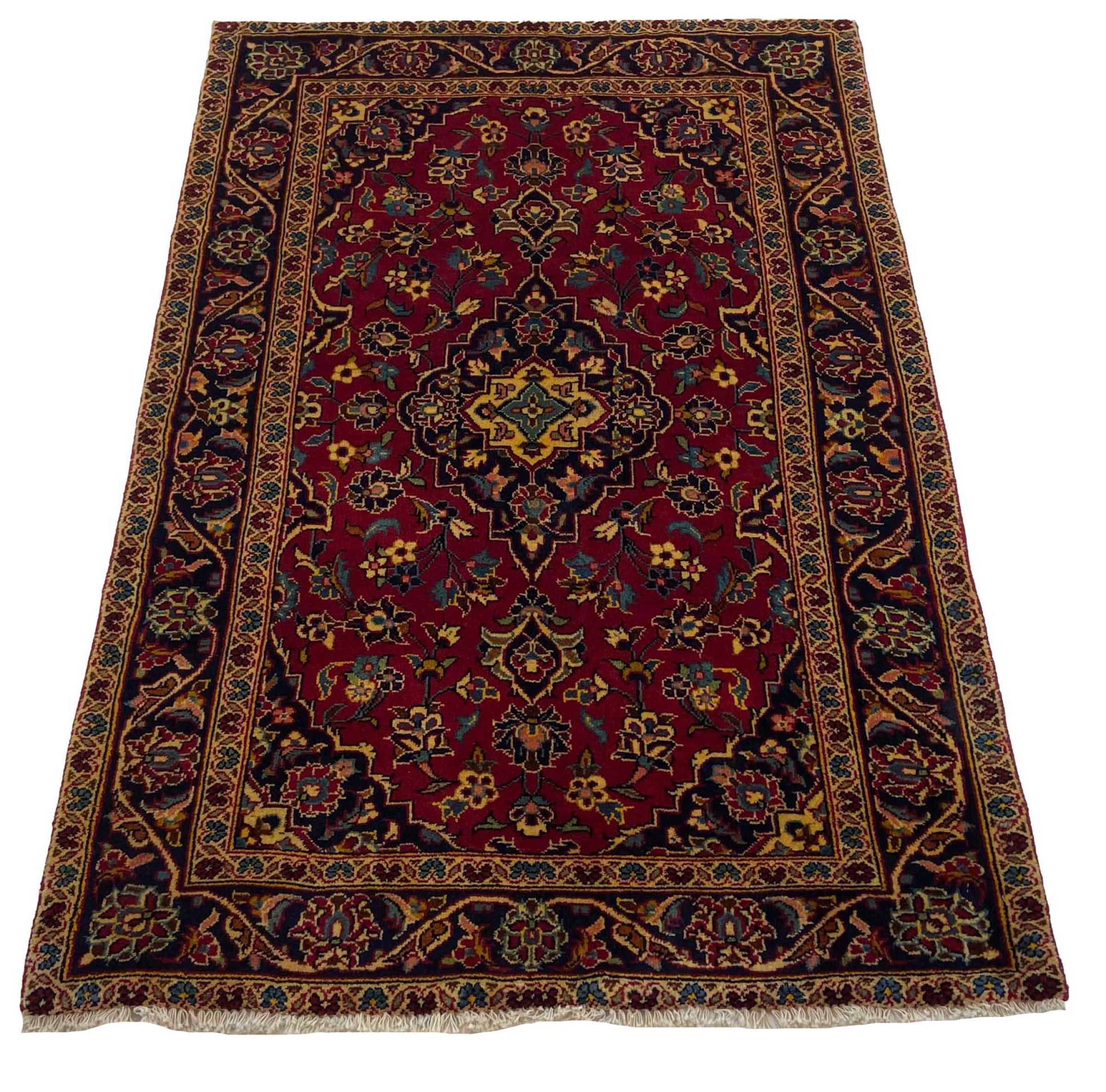 Hand knotted rugs from the city of Kashan (Keshan) are known worldwide. Not only do these Persian rugs have a very popular design, but their quality is undisputedly one of the best. In the Persian Empire the city was considered one of the most important trading places along the famous Silk Road. Kashan rugs usually have a central medallion, floral ornaments and a red background. They are made of high-quality sheep's wool and vegetable dyes.