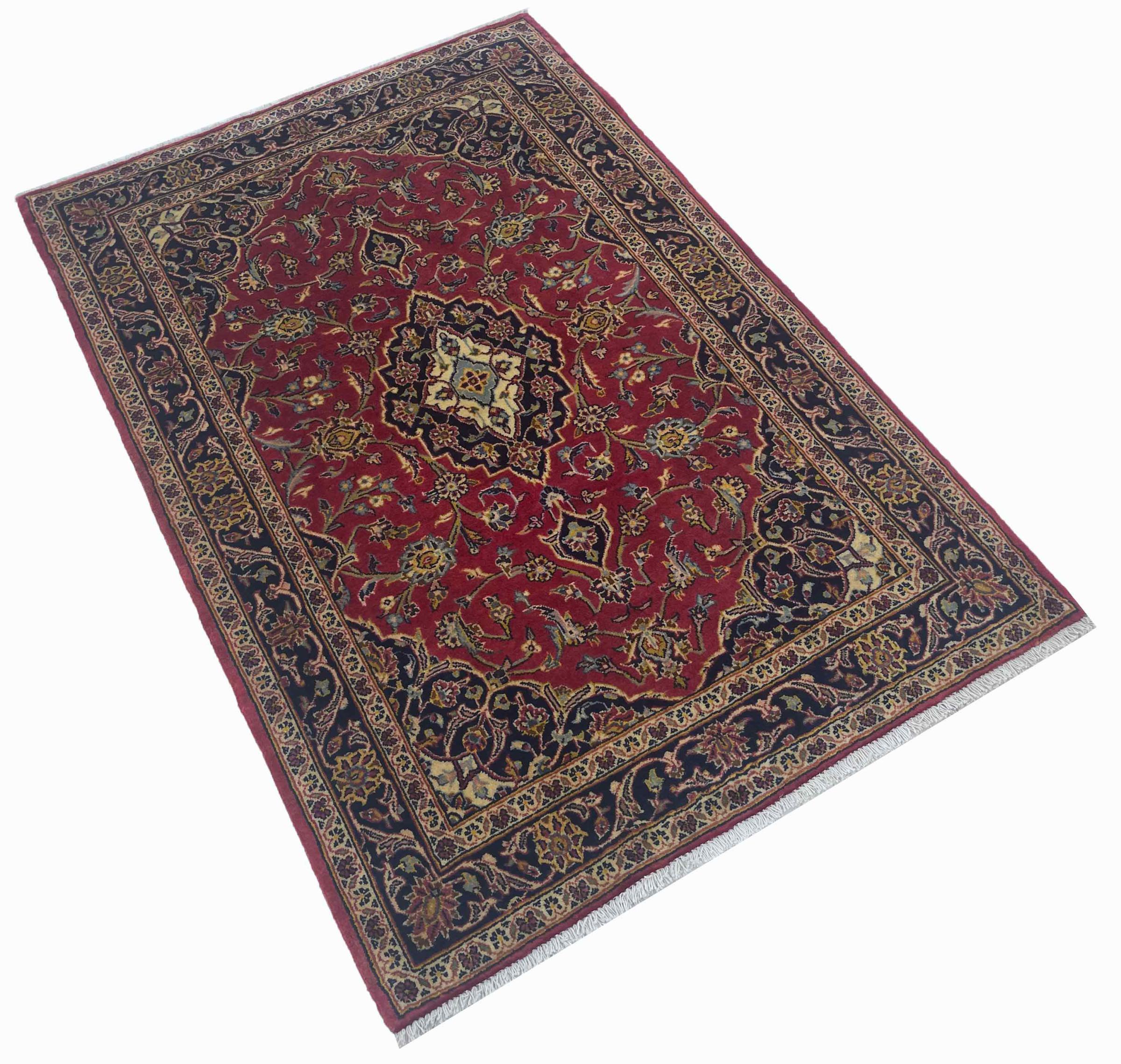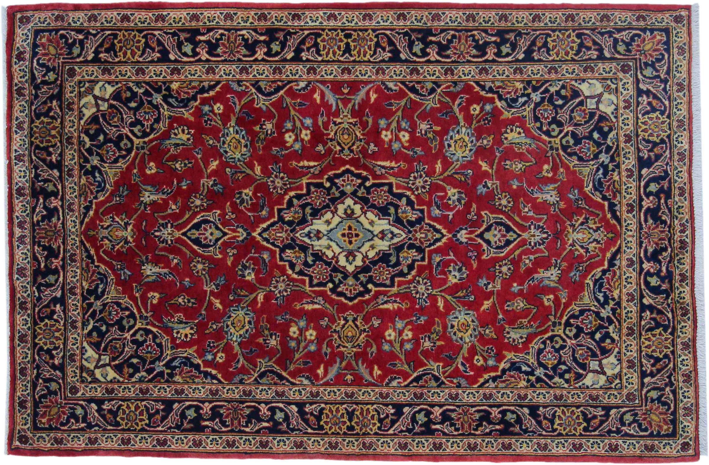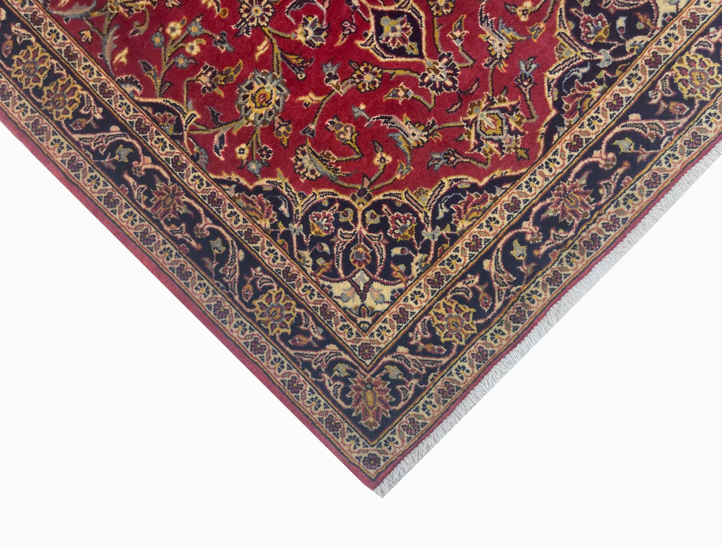 Hand knotted rugs from the city of Kashan (Keshan) are known worldwide. Not only do these Persian rugs have a very popular design, but their quality is undisputedly one of the best. In the Persian Empire the city was considered one of the most important trading places along the famous Silk Road. Kashan rugs usually have a central medallion, floral ornaments and a red background. They are made of high-quality sheep's wool and vegetable dyes.