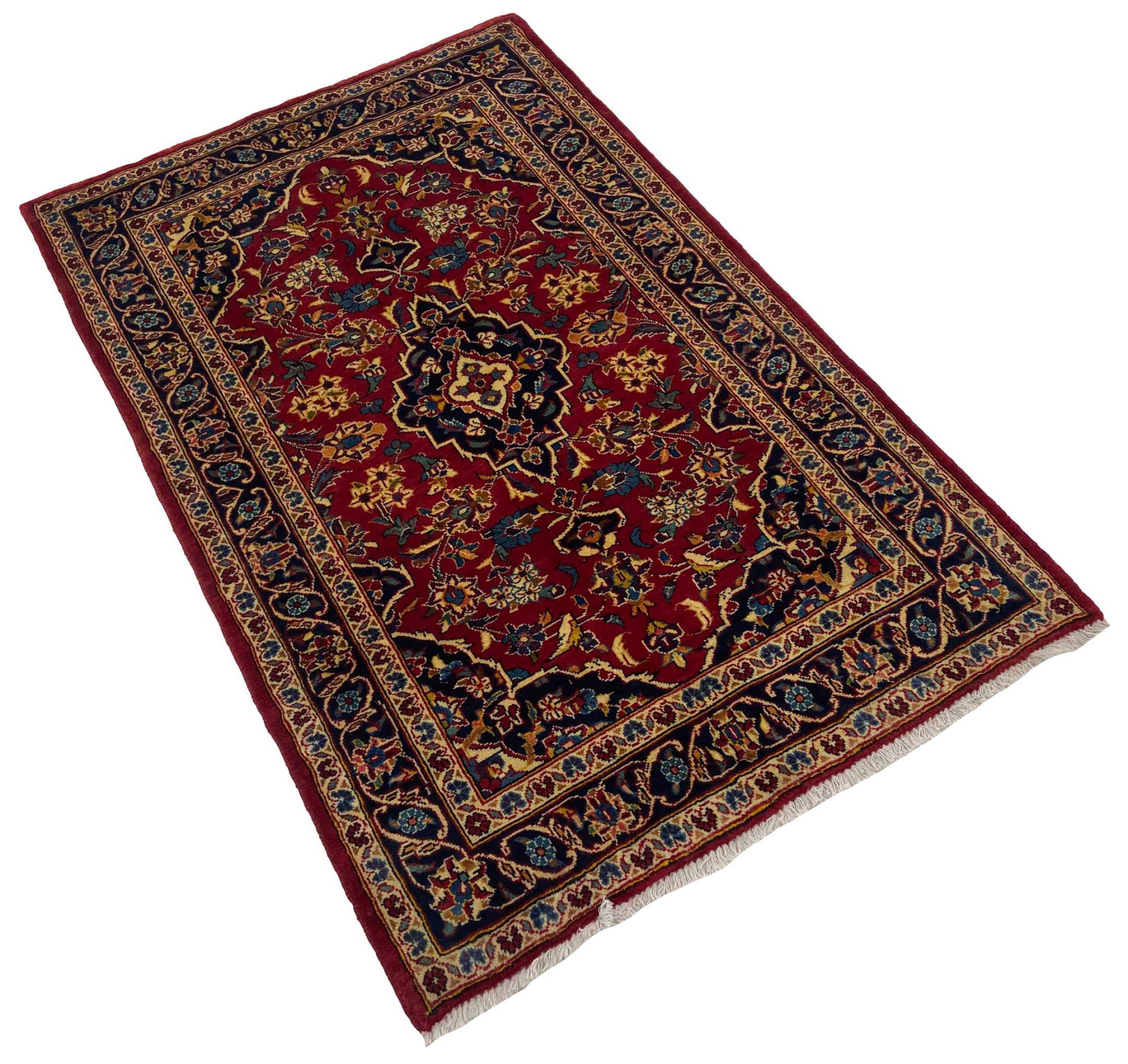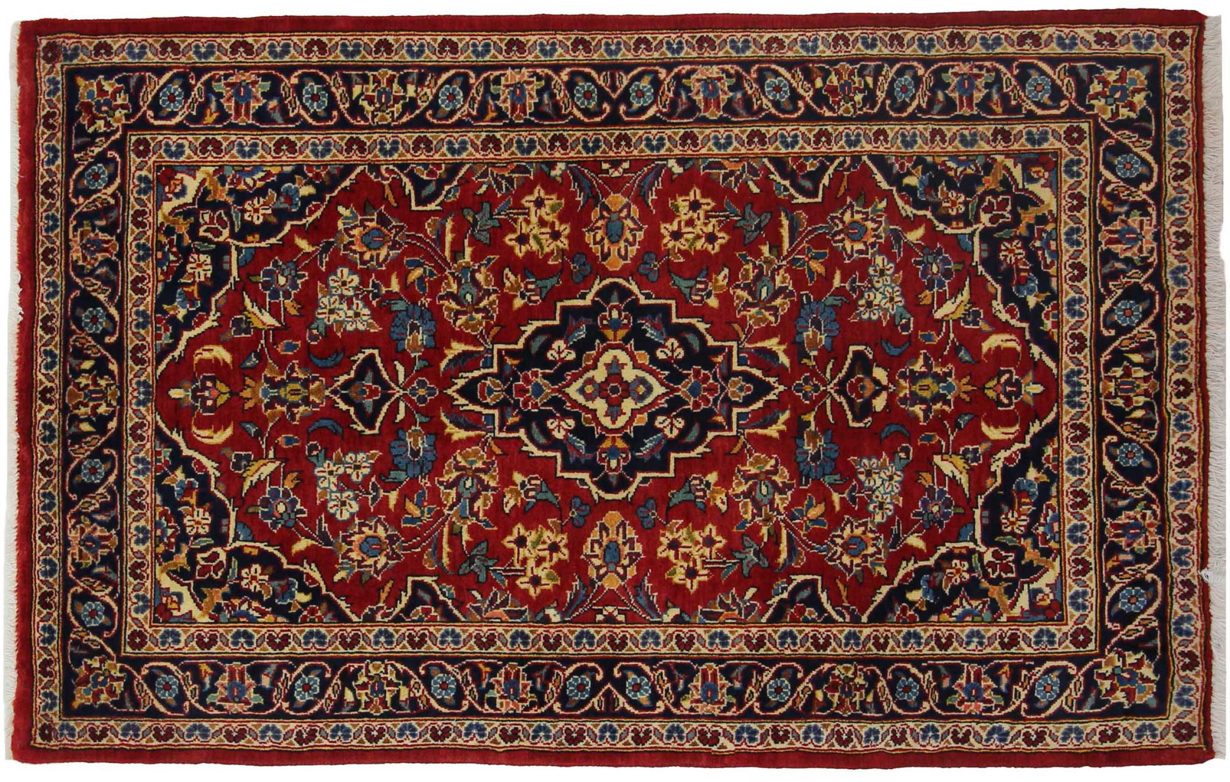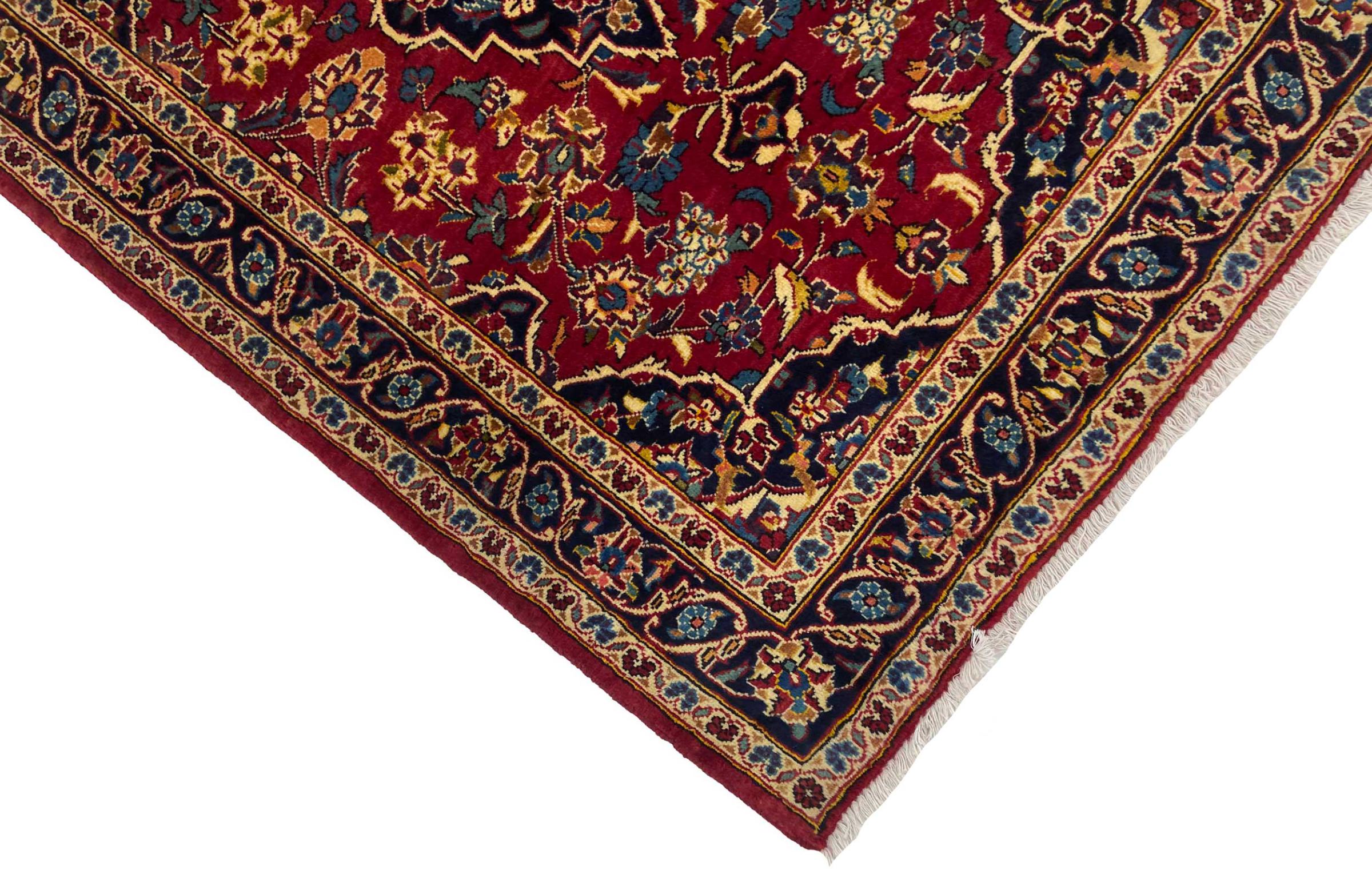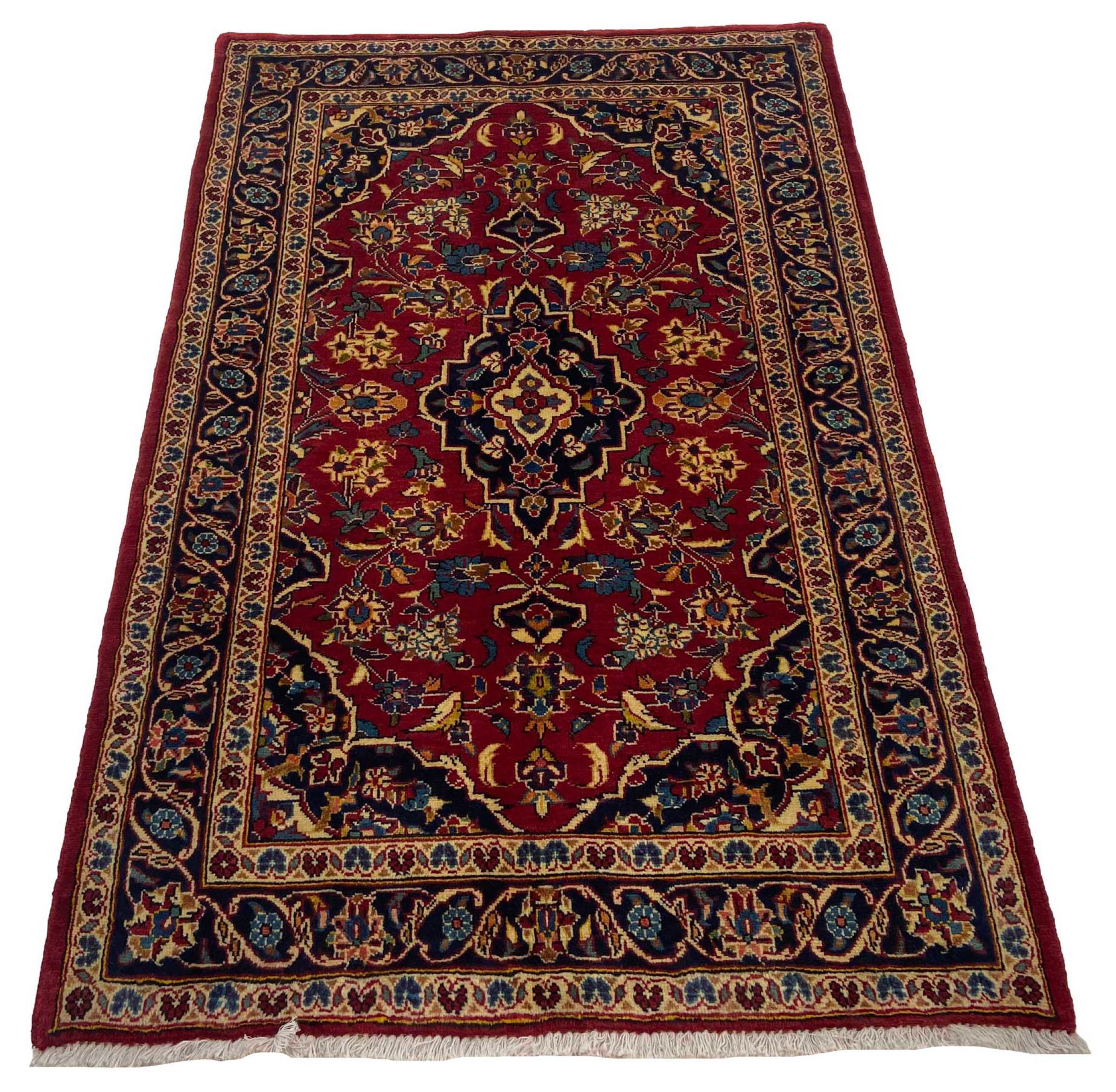 Hand knotted rugs from the city of Kashan (Keshan) are known worldwide. Not only do these Persian rugs have a very popular design, but their quality is undisputedly one of the best. In the Persian Empire the city was considered one of the most important trading places along the famous Silk Road. Kashan rugs usually have a central medallion, floral ornaments and a red background. They are made of high-quality sheep's wool and vegetable dyes.