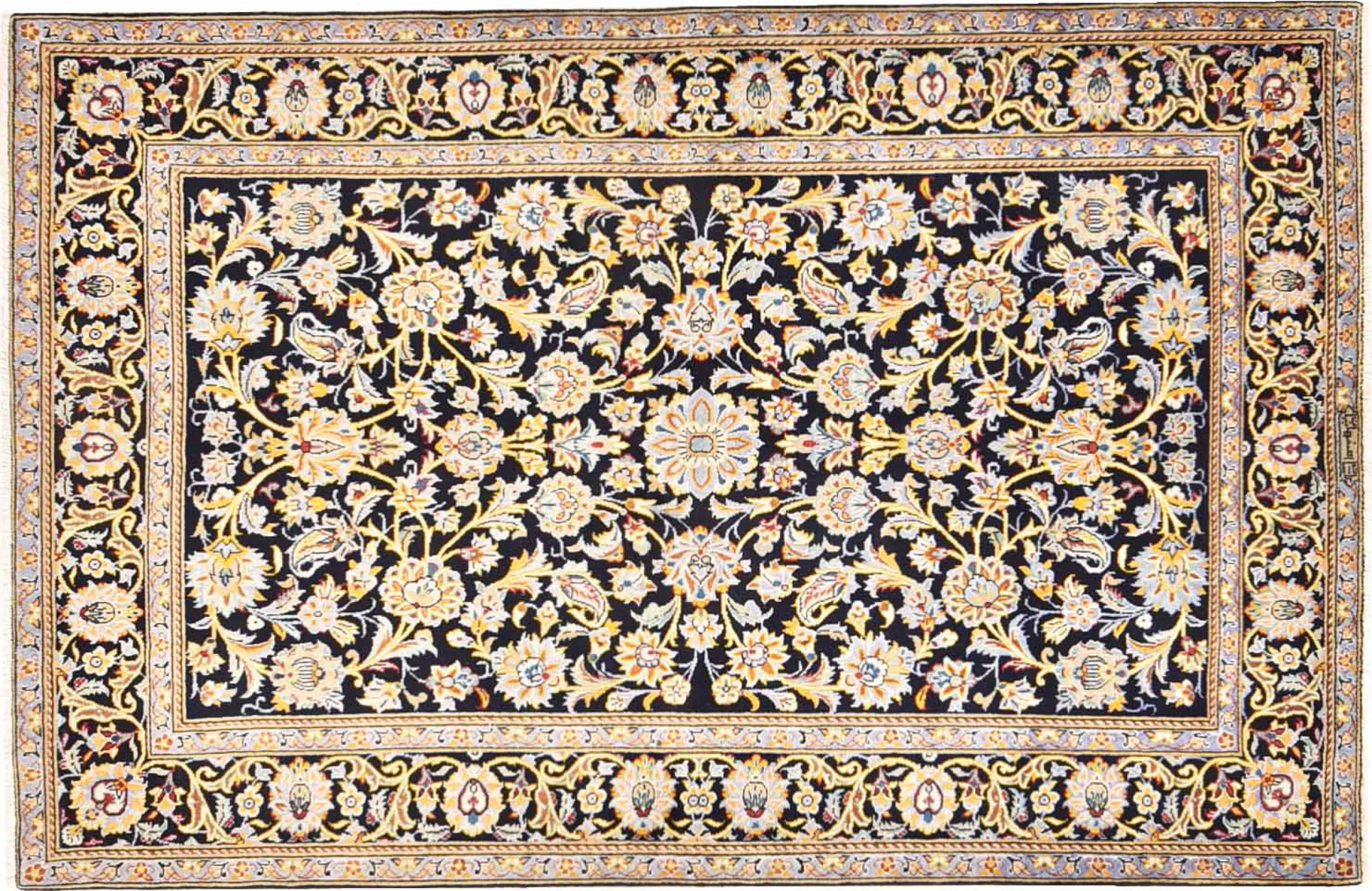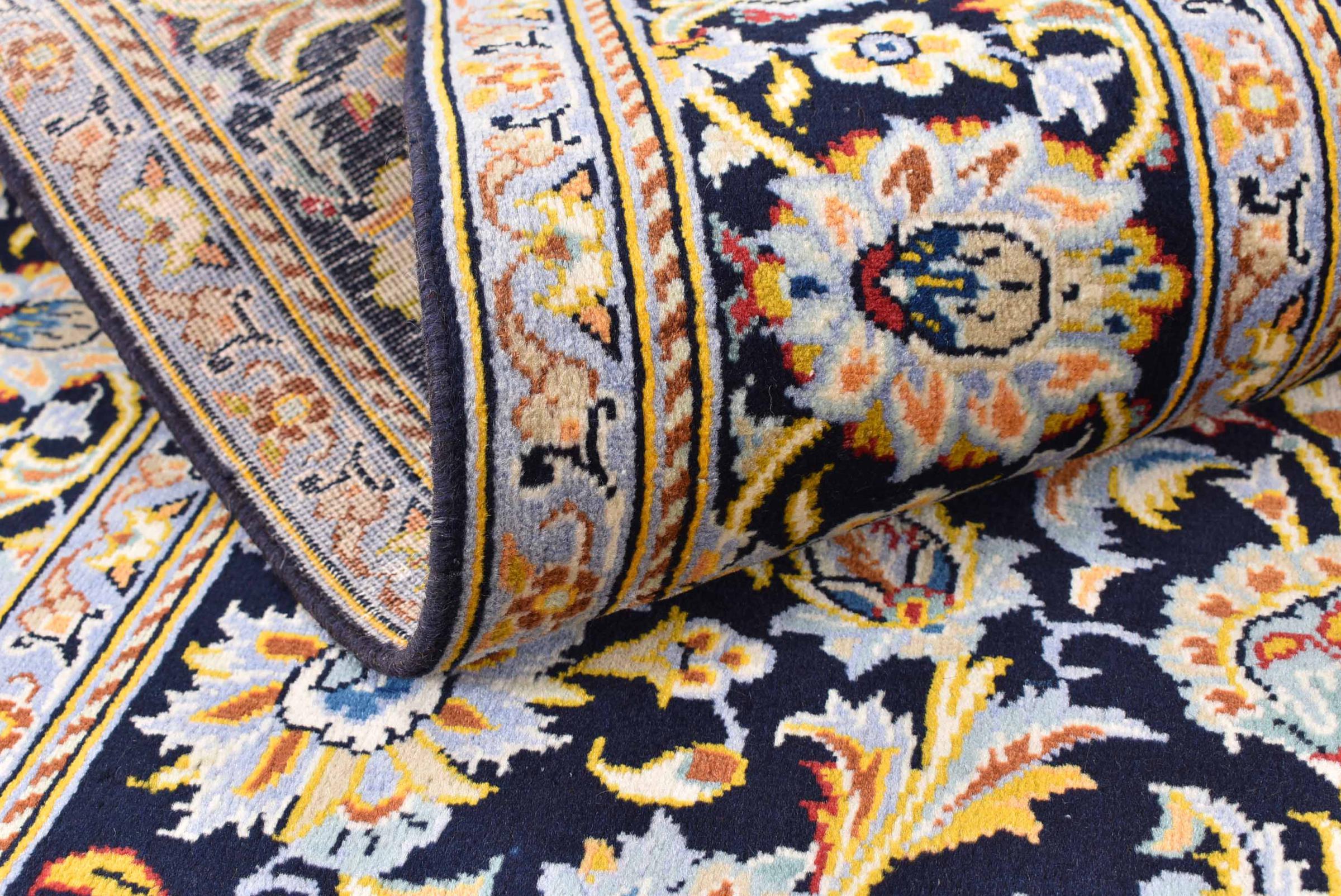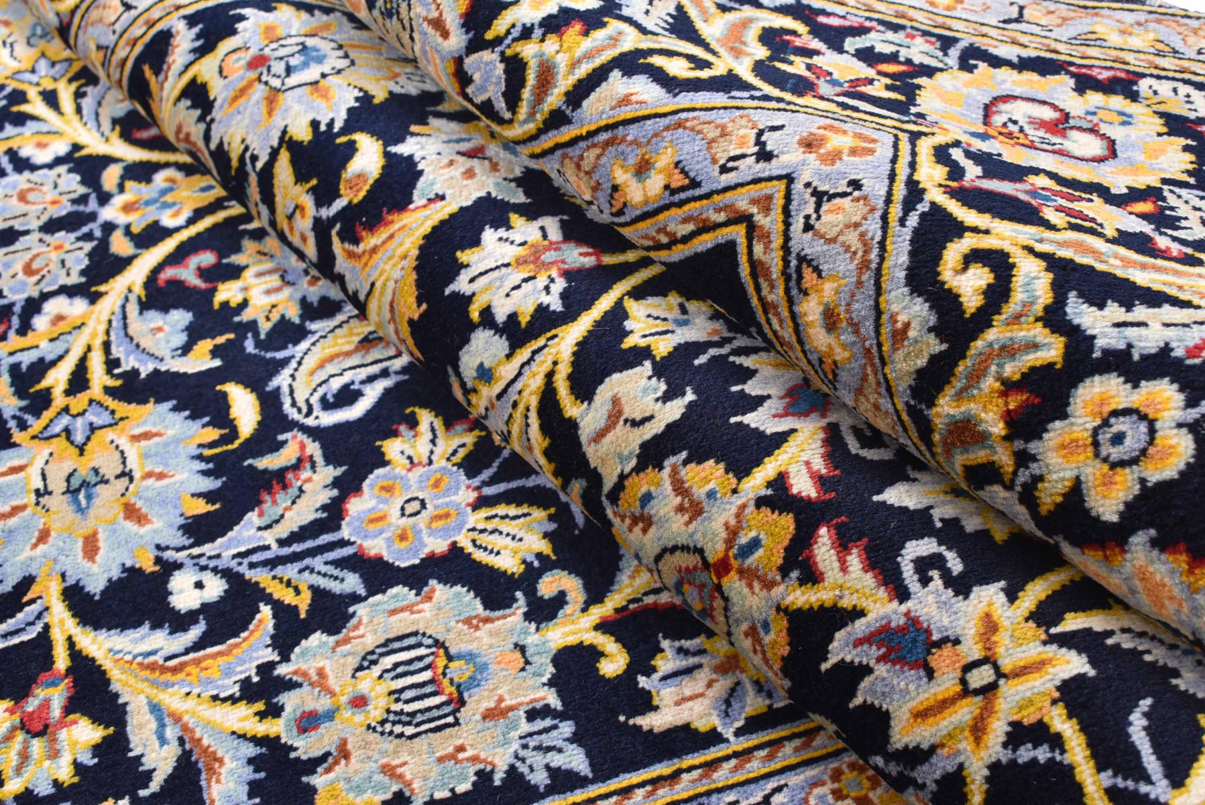 Hand knotted rugs from the city of Kashan (Keshan) are known worldwide. Not only do these Persian rugs have a very popular design, but their quality is undisputedly one of the best. In the Persian Empire the city was considered one of the most important trading places along the famous Silk Road. Kashan rugs usually have a central medallion, floral ornaments and a red background. They are made of high-quality sheep's wool and vegetable dyes.