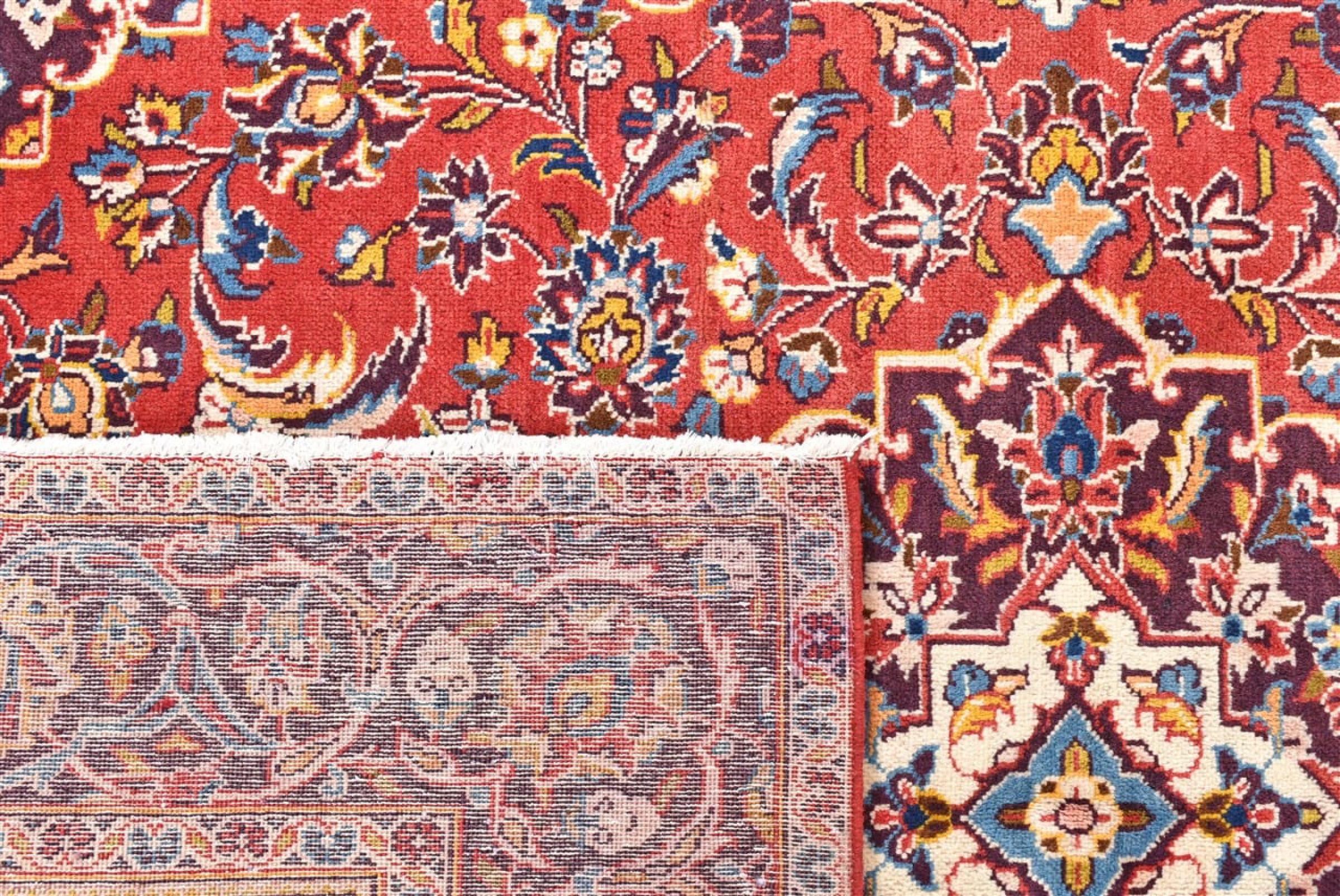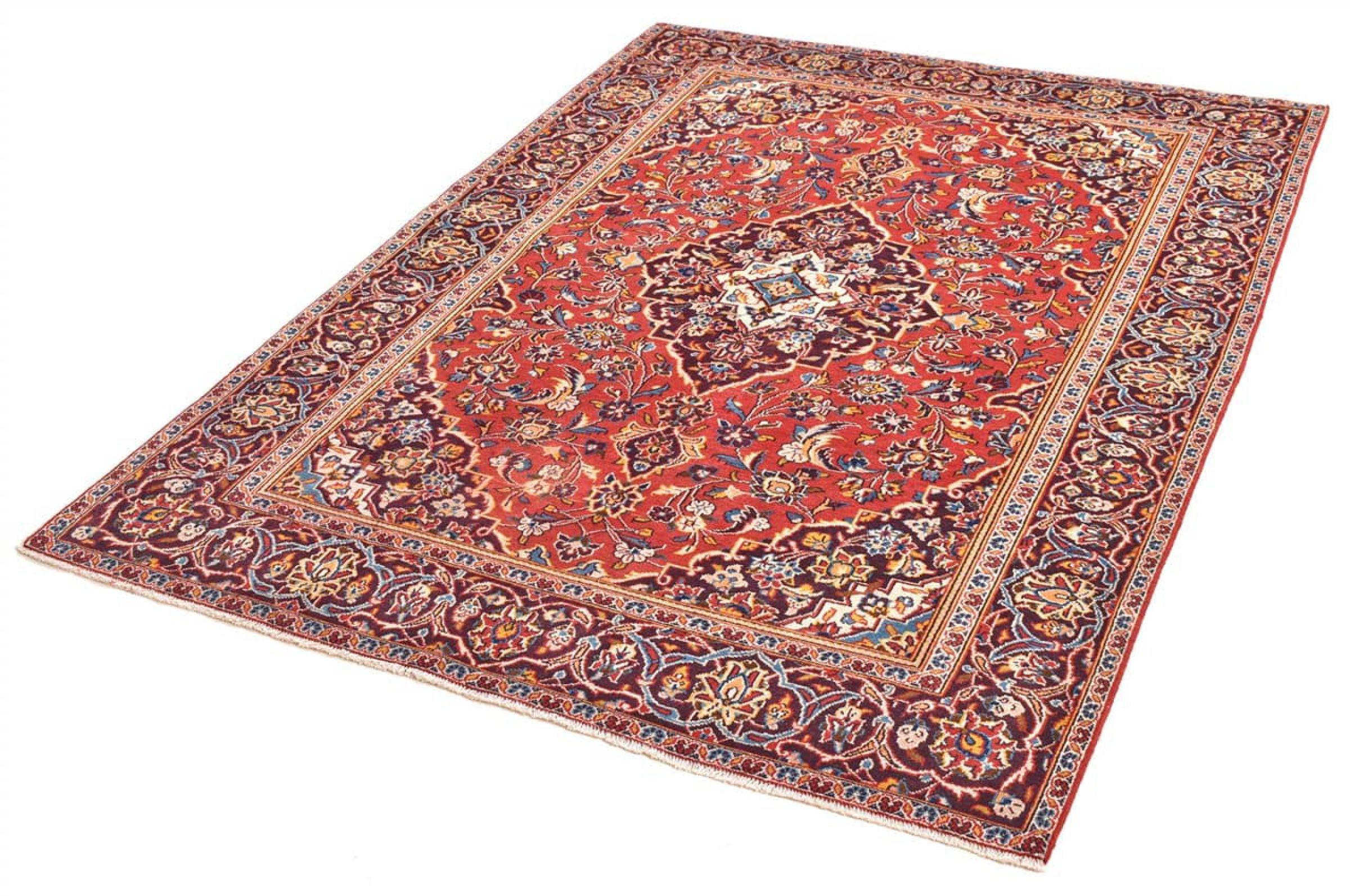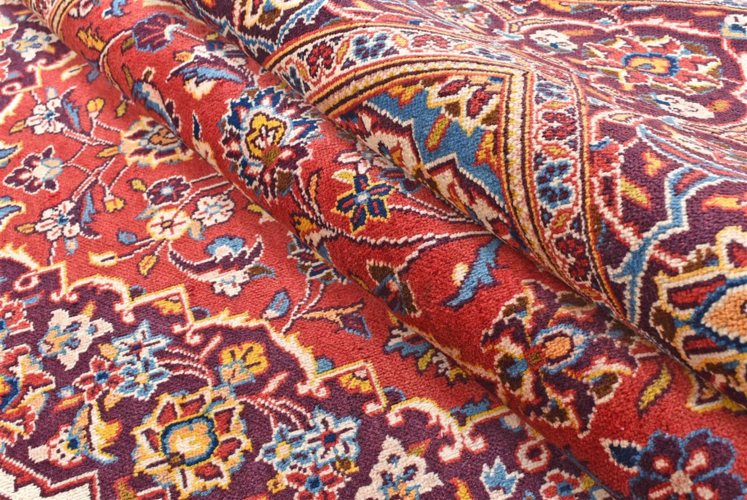 Hand knotted rugs from the city of Kashan (Keshan) are known worldwide. Not only do these Persian rugs have a very popular design, but their quality is undisputedly one of the best. In the Persian Empire the city was considered one of the most important trading places along the famous Silk Road. Kashan rugs usually have a central medallion, floral ornaments and a red background. They are made of high-quality sheep's wool and vegetable dyes.