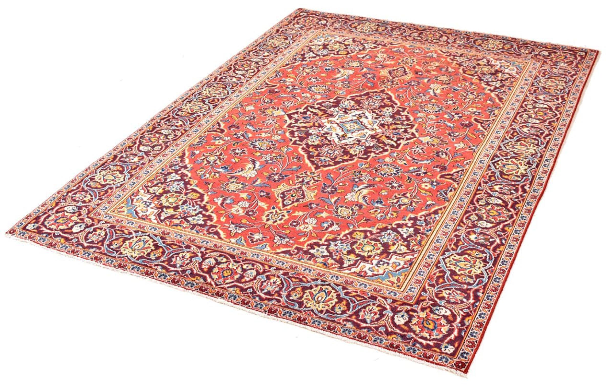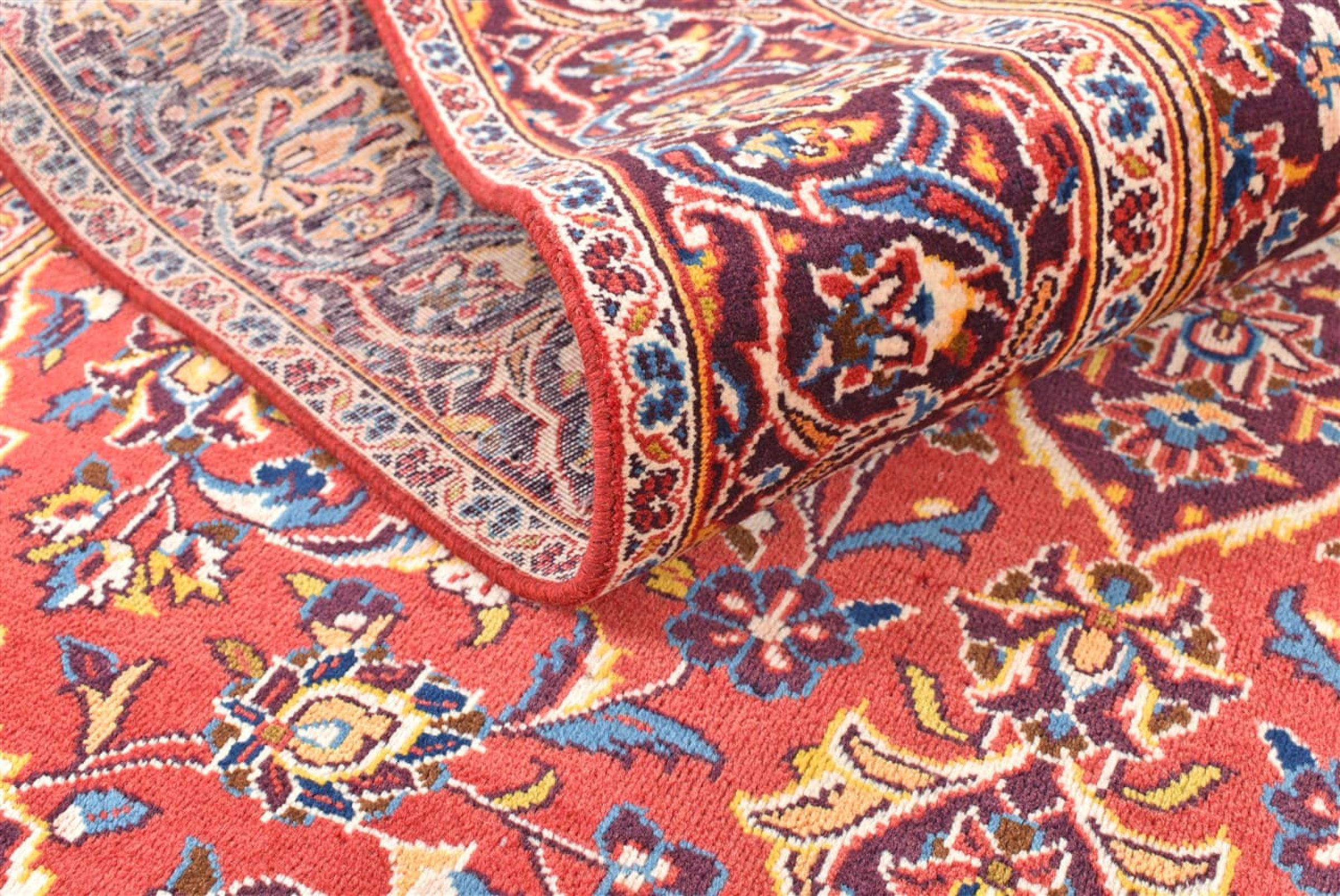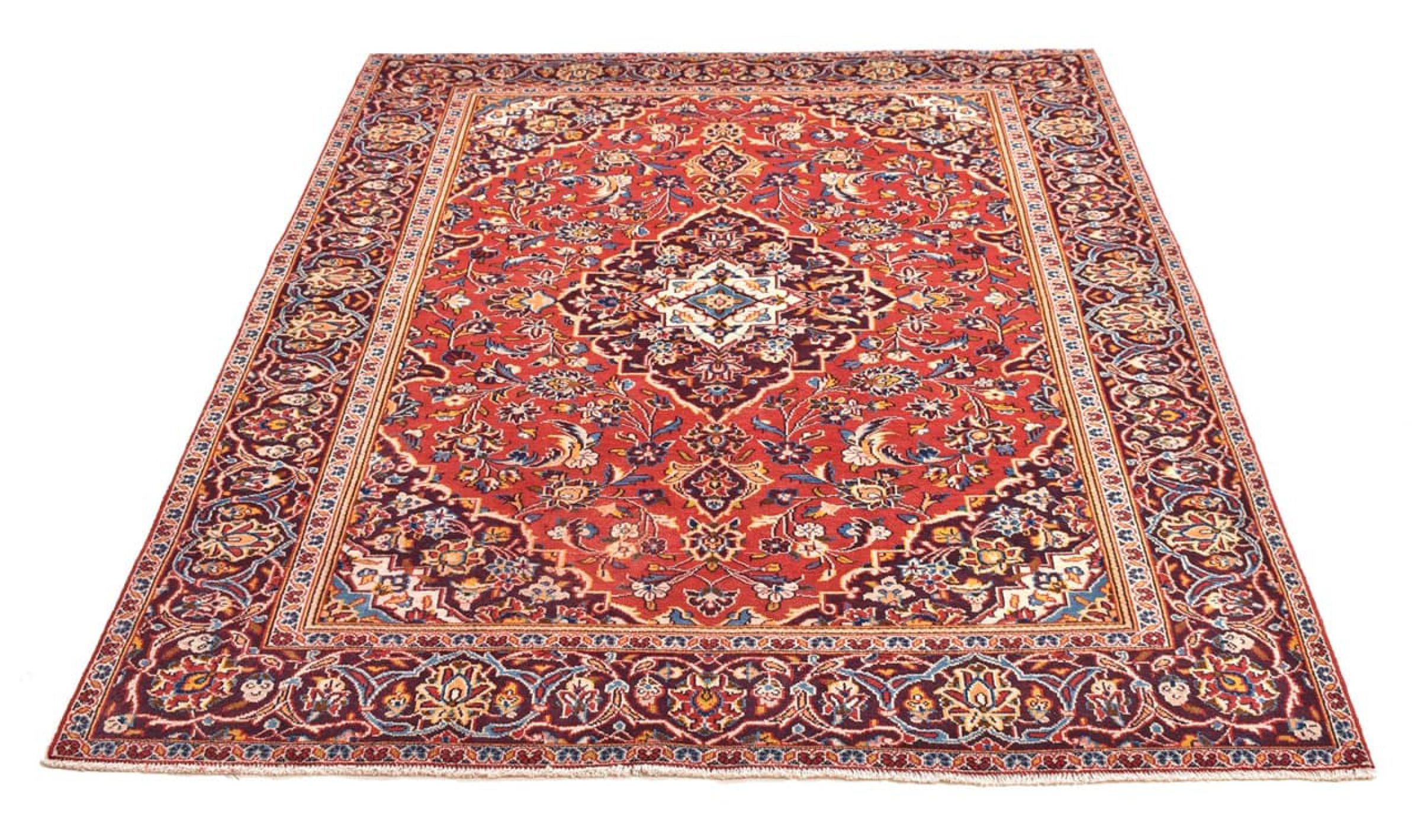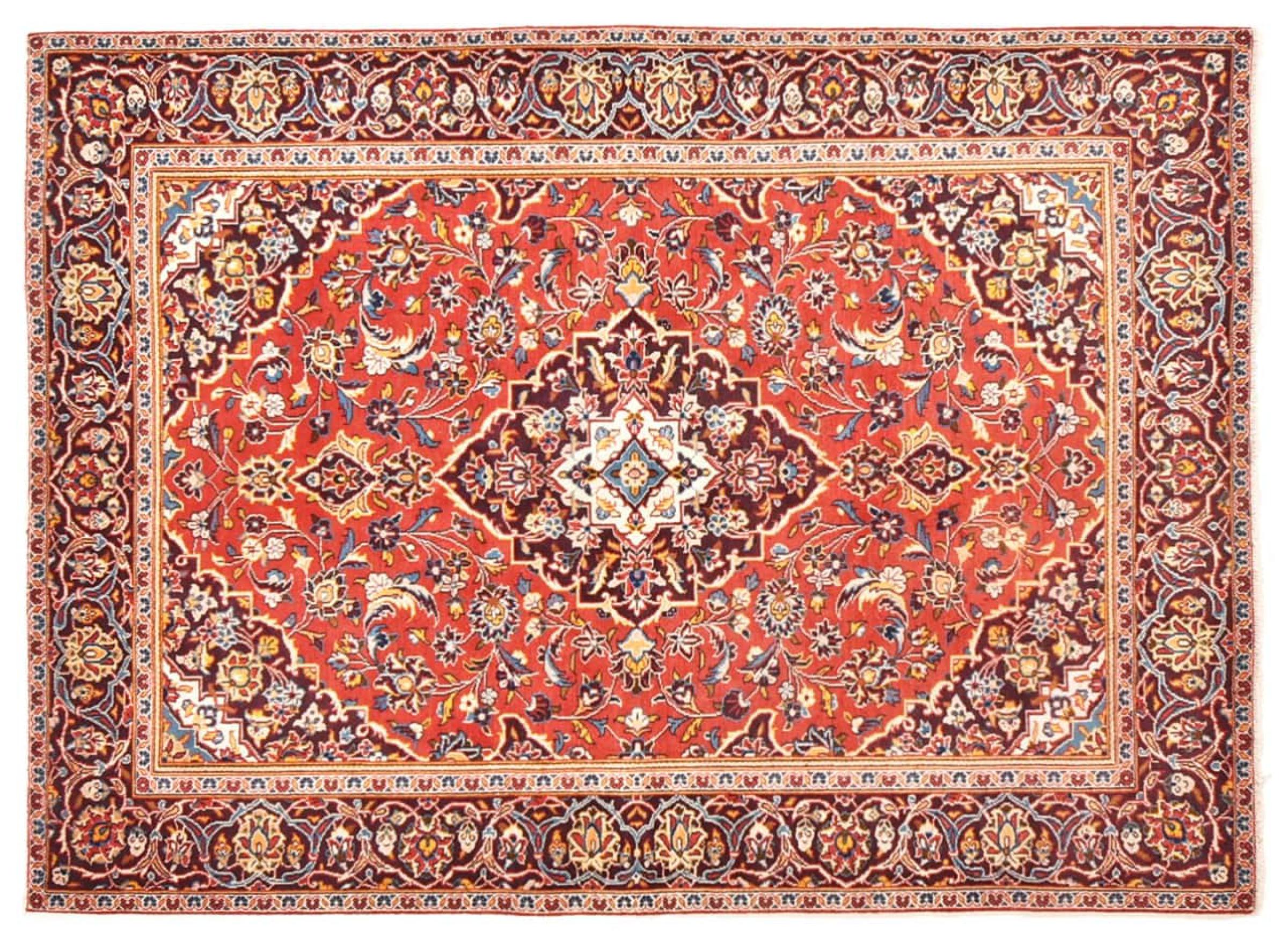 Hand knotted rugs from the city of Kashan (Keshan) are known worldwide. Not only do these Persian rugs have a very popular design, but their quality is undisputedly one of the best. In the Persian Empire the city was considered one of the most important trading places along the famous Silk Road. Kashan rugs usually have a central medallion, floral ornaments and a red background. They are made of high-quality sheep's wool and vegetable dyes.