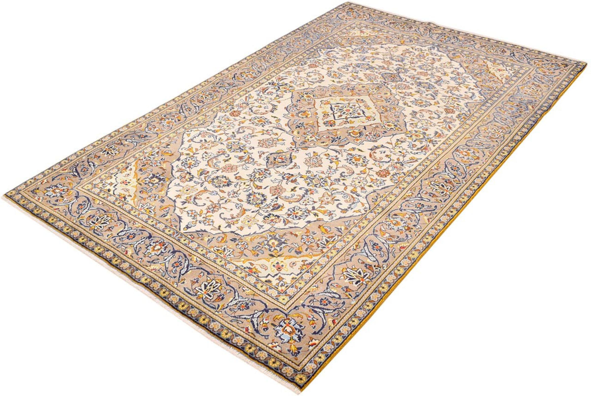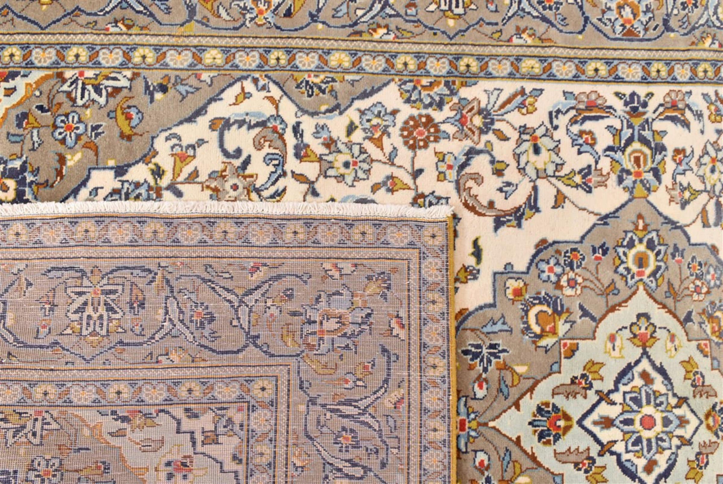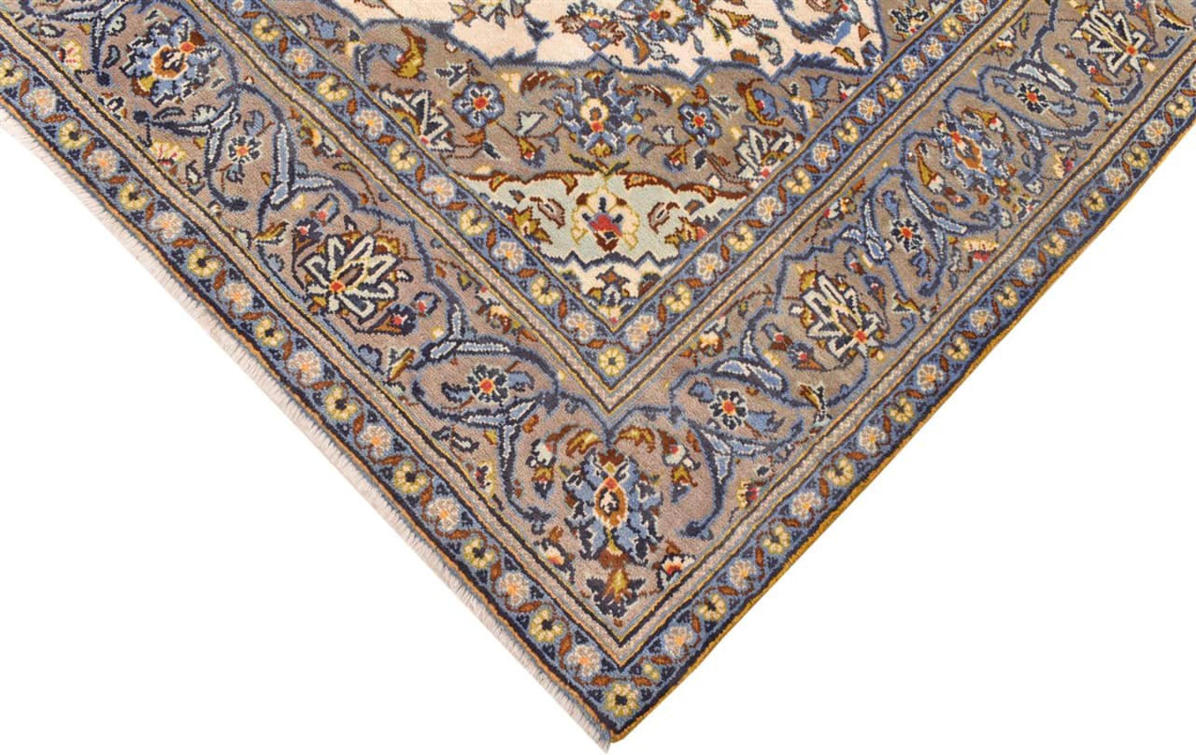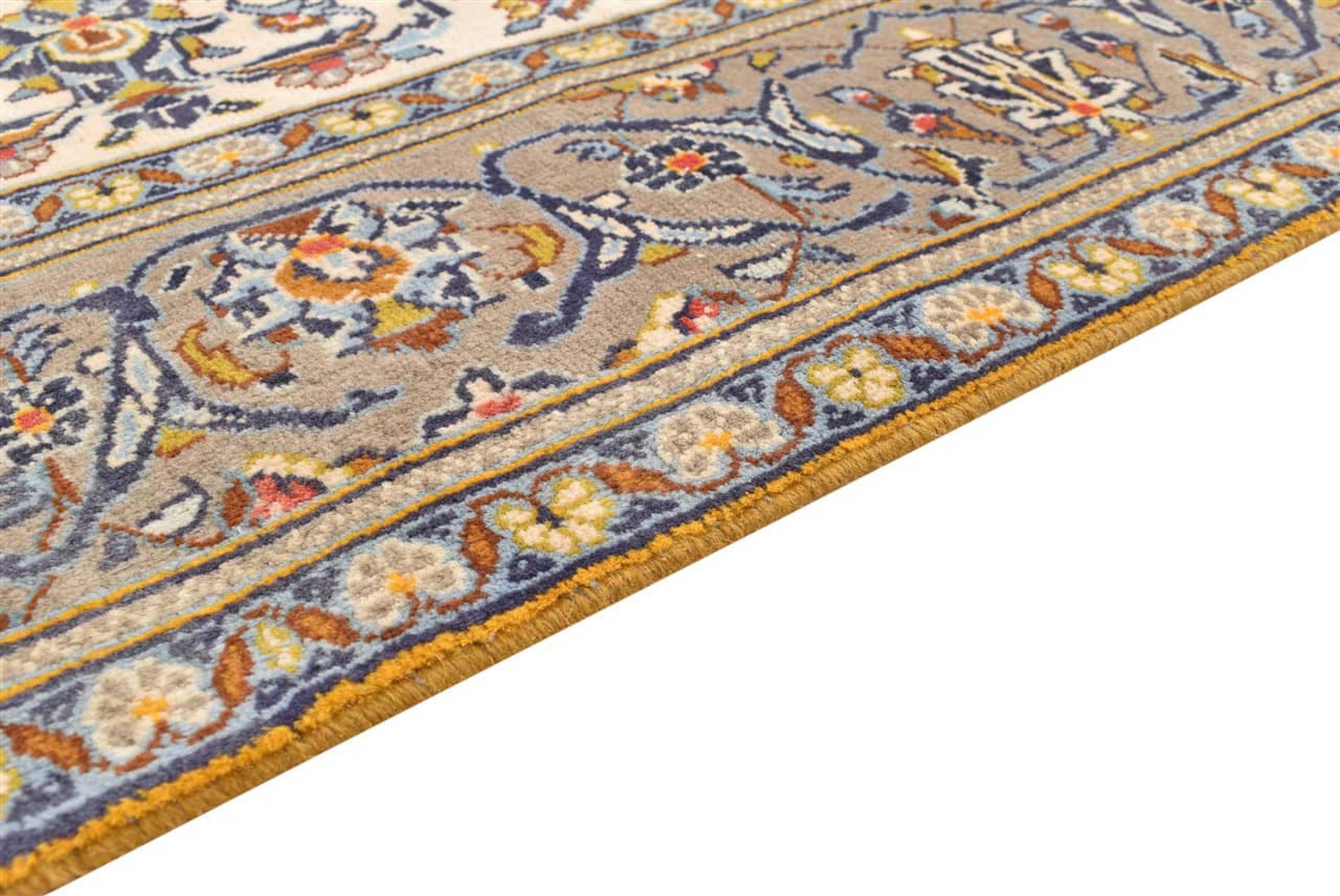 This carpet from Kashan (Keshan) is held in its very traditional and typical Persian design with beautiful ornaments. Kashan rugs are highly popular due to their exceptionally elegant design. These carpets originate from Kashan, a city on the ancient Silk Road. This carpet has been knotted by hand from high grade sheep wool and is going to be an one-of-a-kind highlight in your home.
