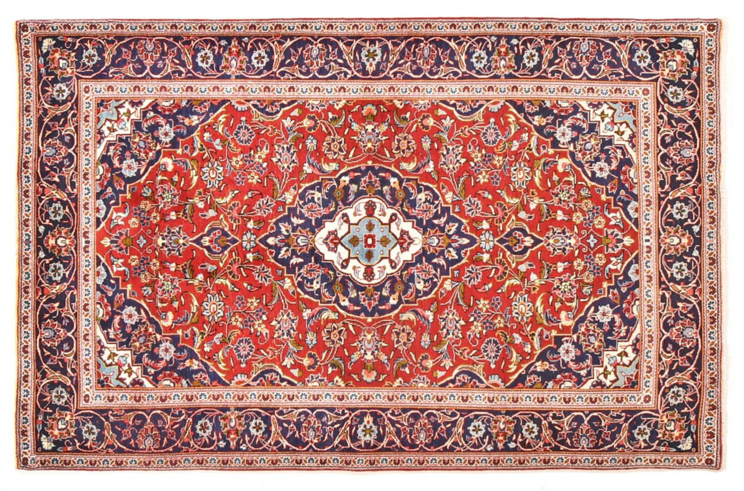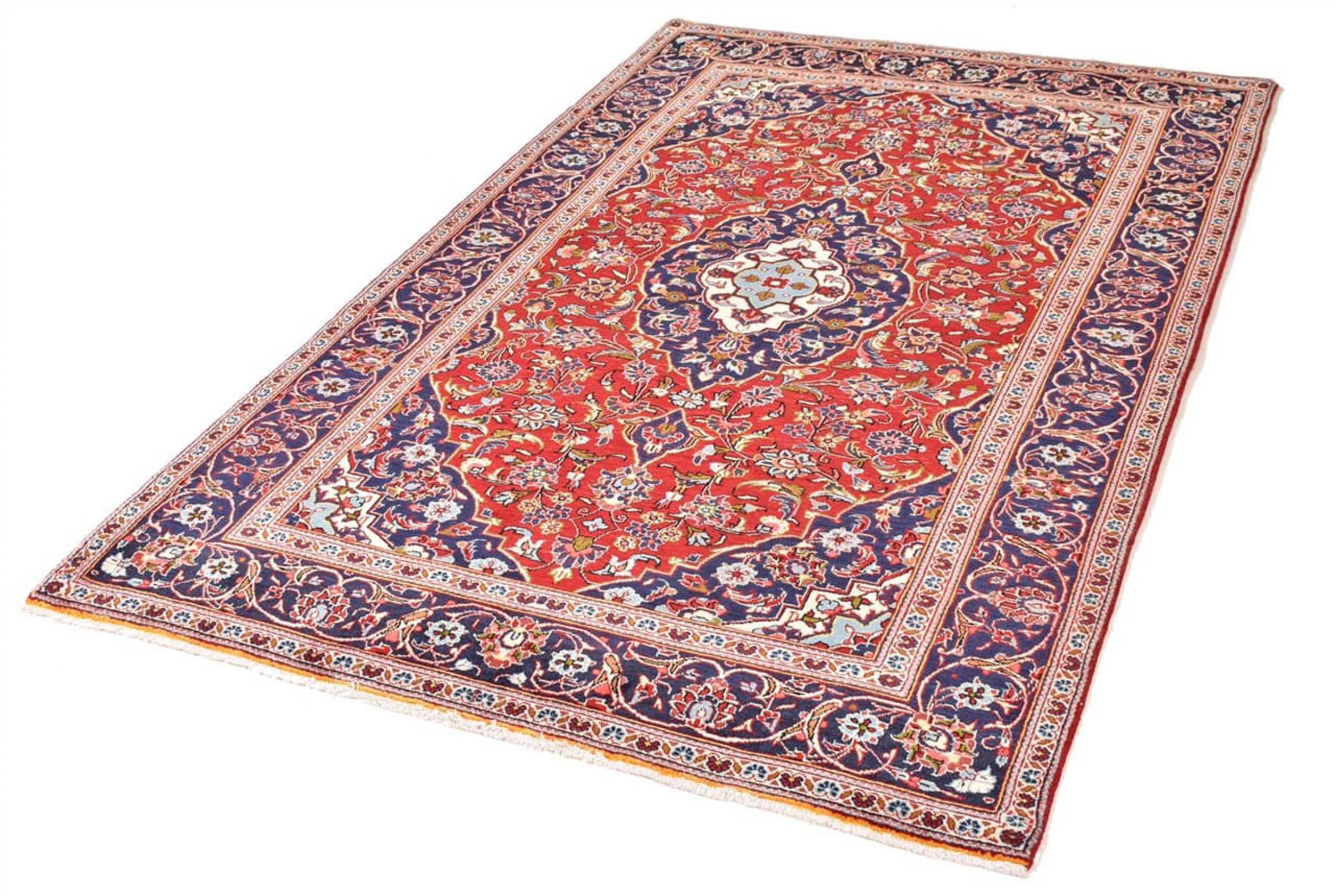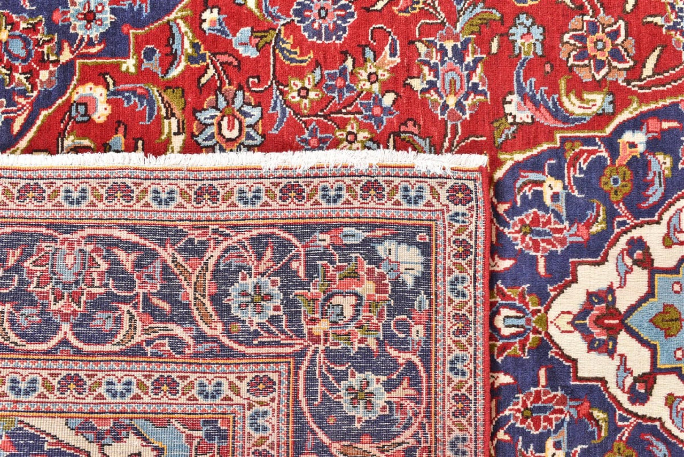 Hand knotted rugs from the city of Kashan (Keshan) are known worldwide. Not only do these Persian rugs have a very popular design, but their quality is undisputedly one of the best. In the Persian Empire the city was considered one of the most important trading places along the famous Silk Road. Kashan rugs usually have a central medallion, floral ornaments and a red background. They are made of high-quality sheep's wool and vegetable dyes.