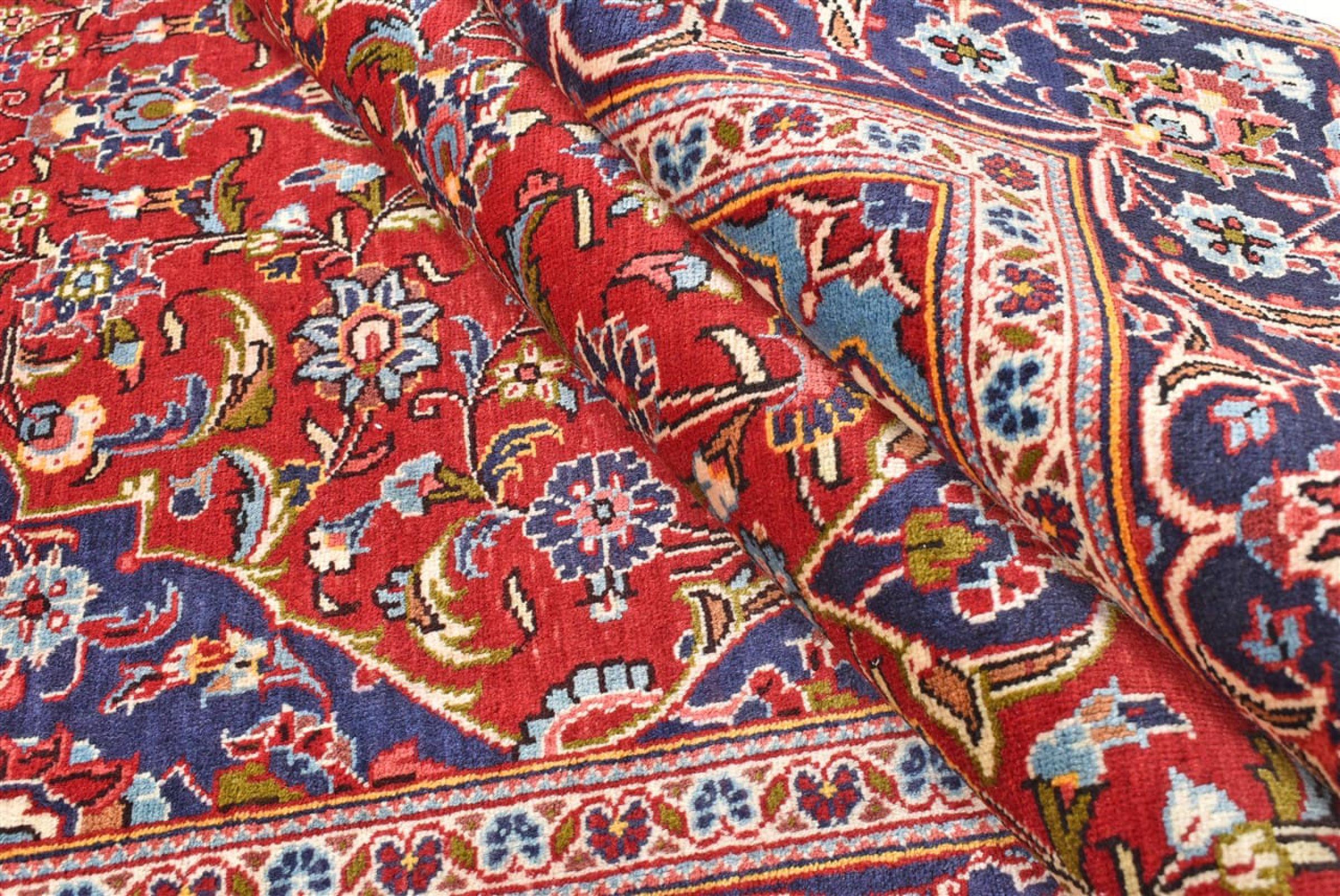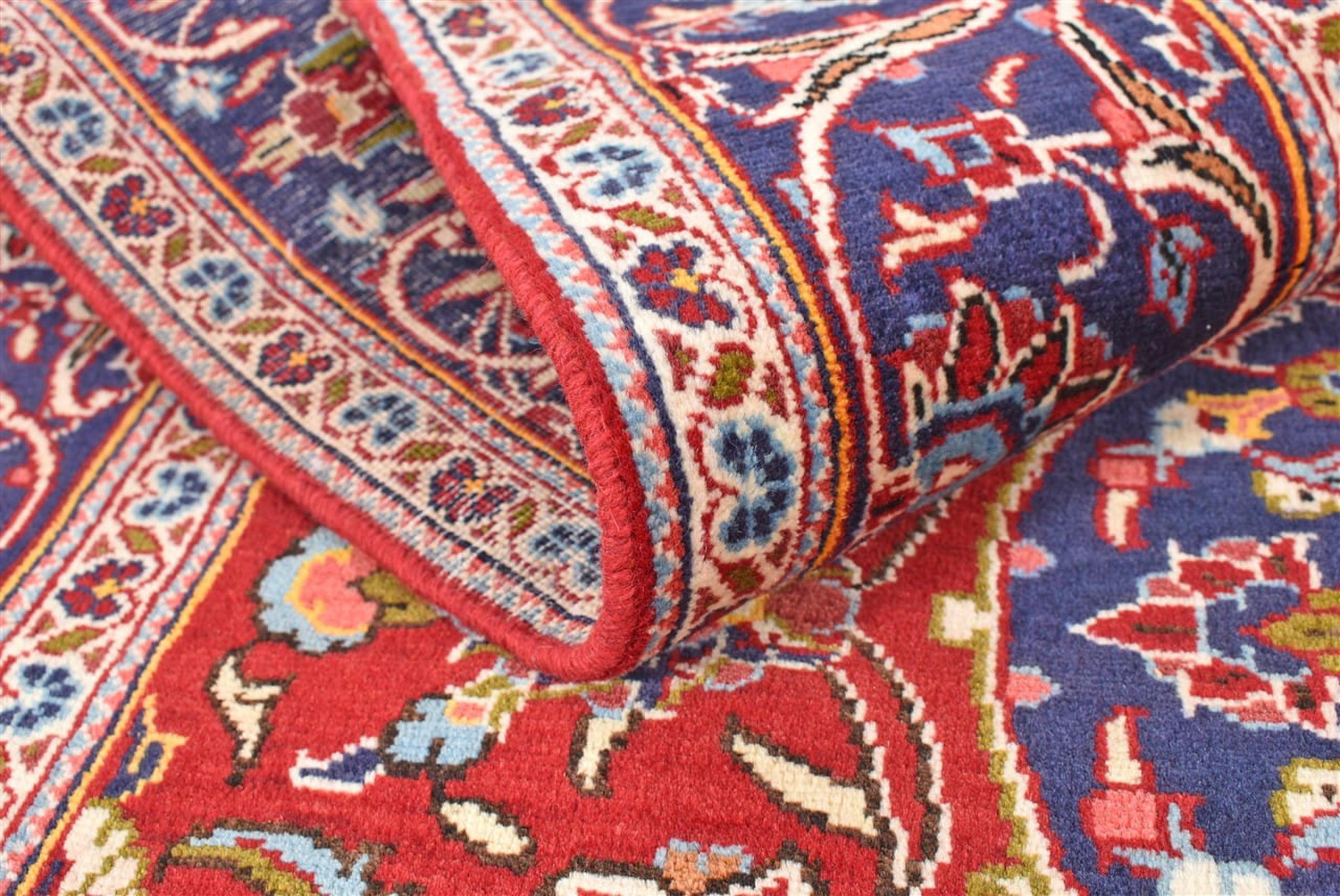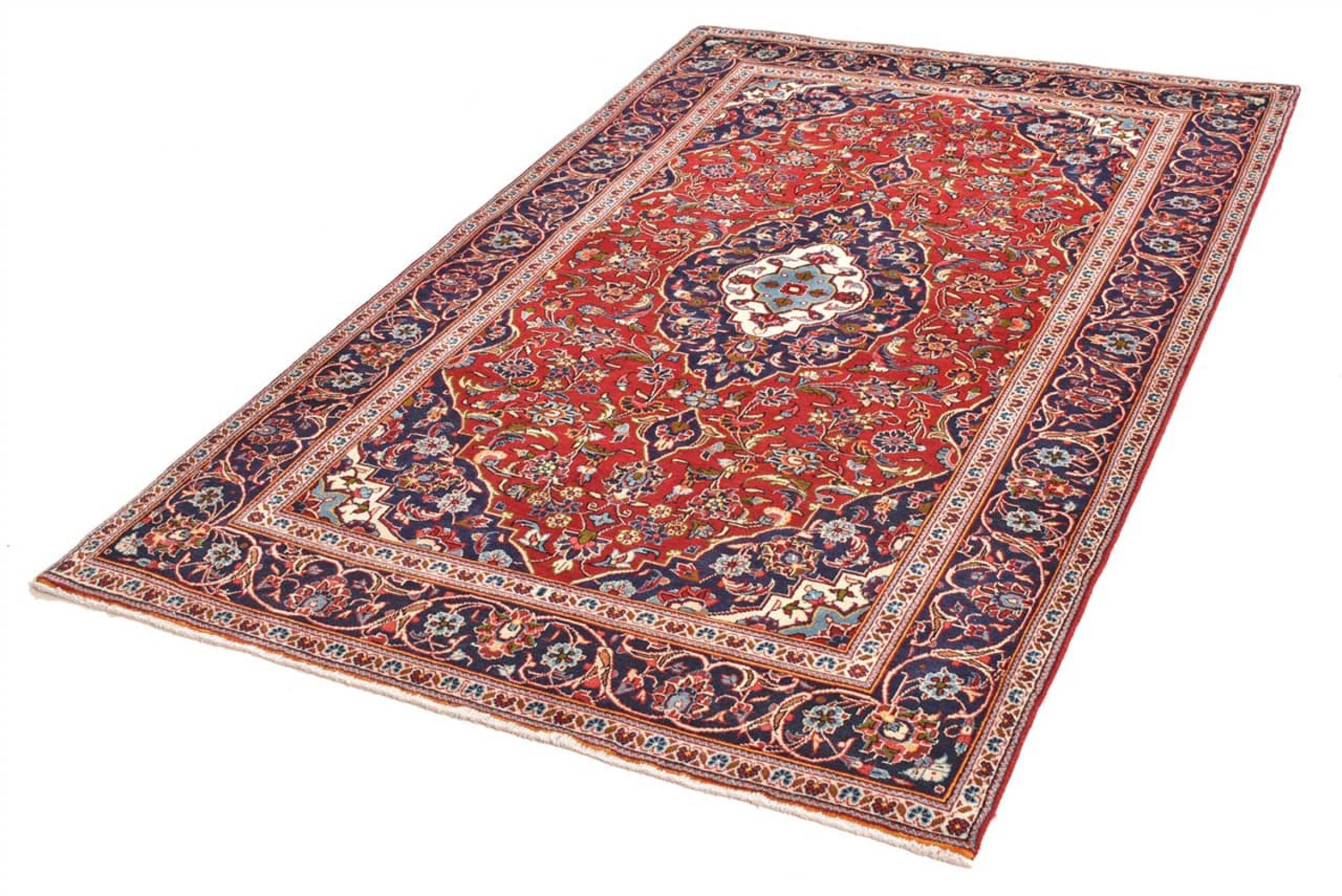 Hand knotted rugs from the city of Kashan (Keshan) are known worldwide. Not only do these Persian rugs have a very popular design, but their quality is undisputedly one of the best. In the Persian Empire the city was considered one of the most important trading places along the famous Silk Road. Kashan rugs usually have a central medallion, floral ornaments and a red background. They are made of high-quality sheep's wool and vegetable dyes.