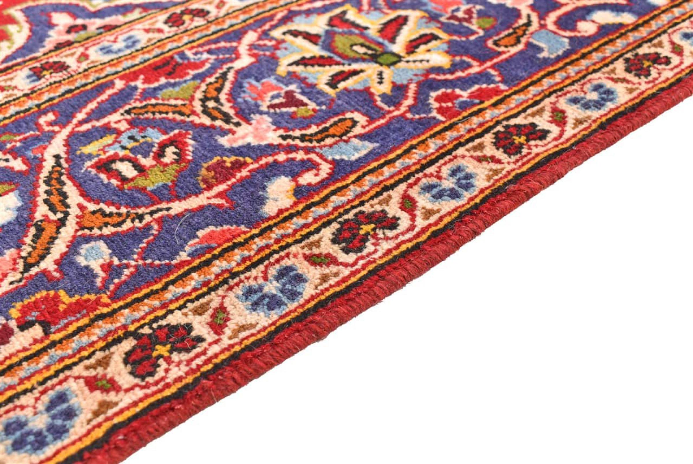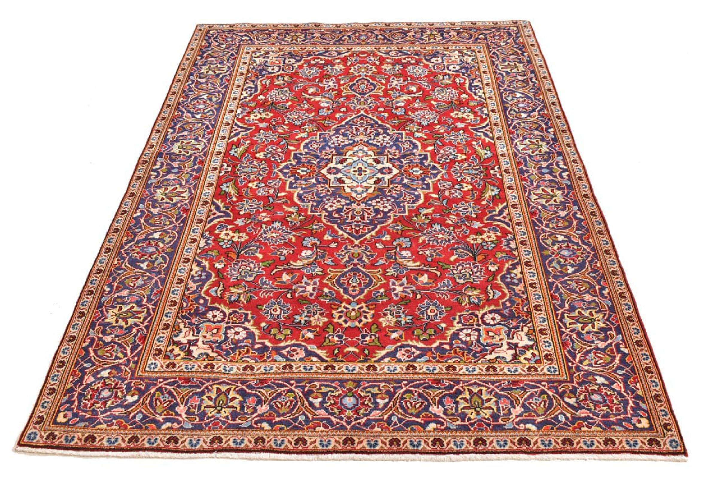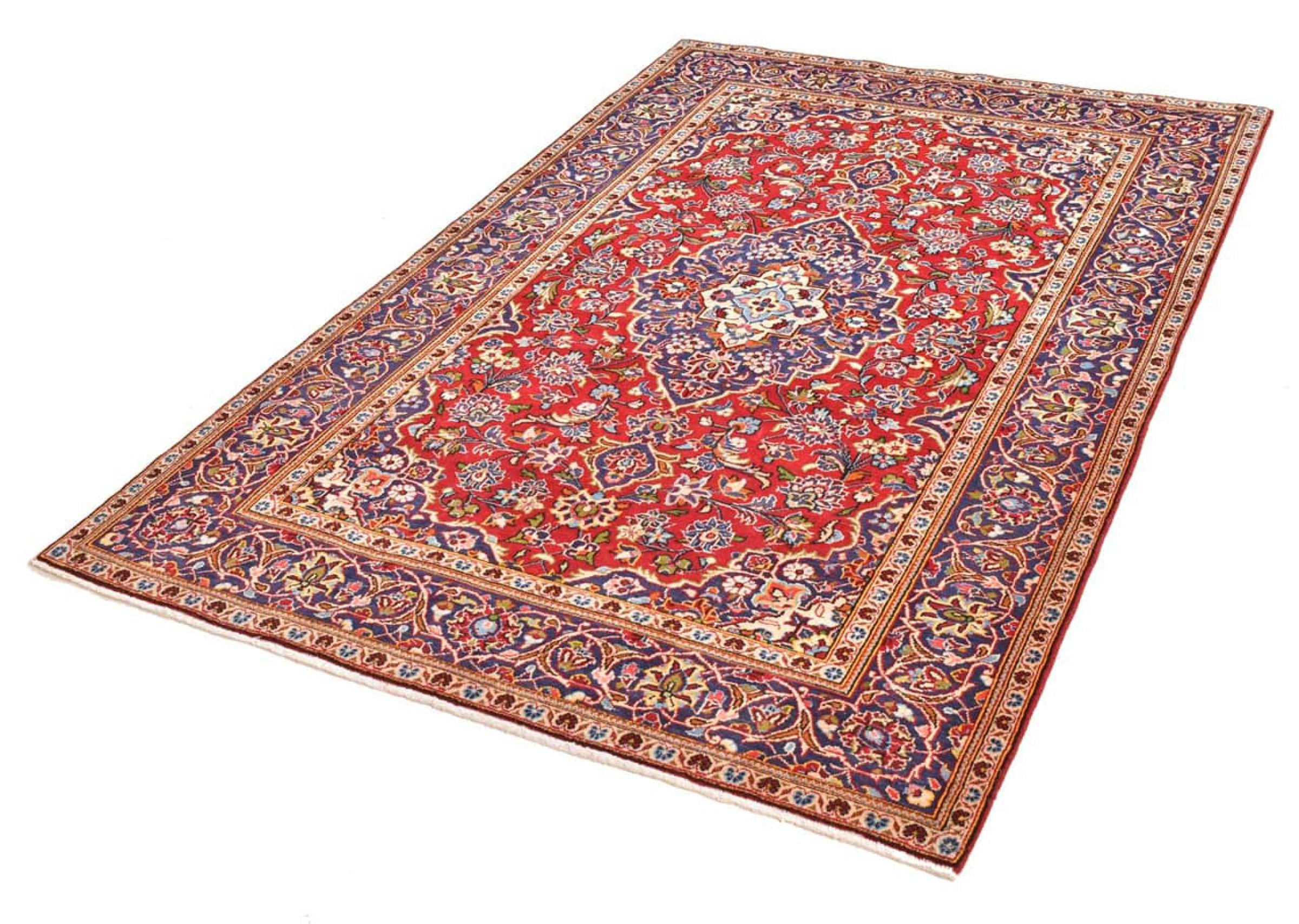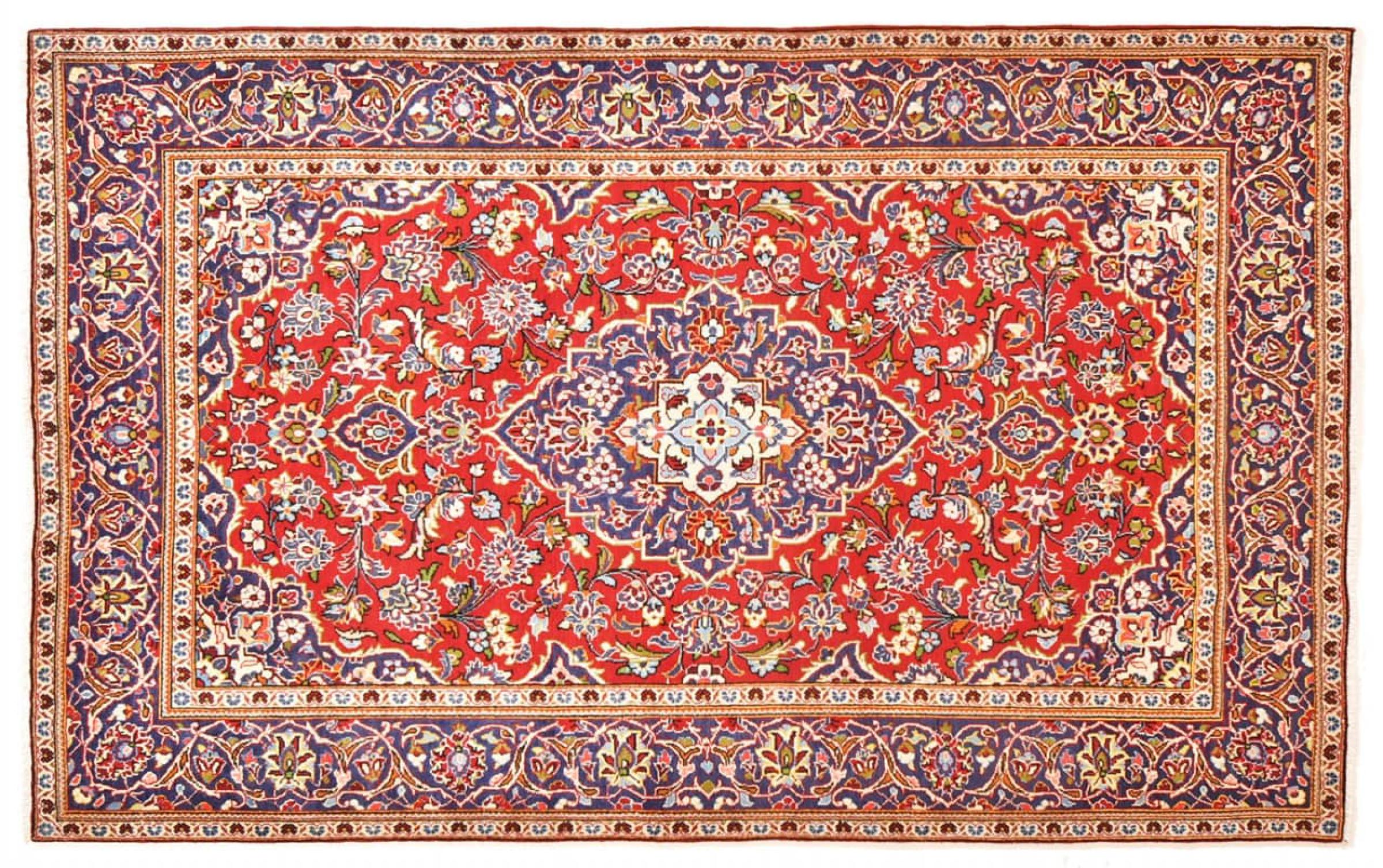 Hand knotted rugs from the city of Kashan (Keshan) are known worldwide. Not only do these Persian rugs have a very popular design, but their quality is undisputedly one of the best. In the Persian Empire the city was considered one of the most important trading places along the famous Silk Road. Kashan rugs usually have a central medallion, floral ornaments and a red background. They are made of high-quality sheep's wool and vegetable dyes.