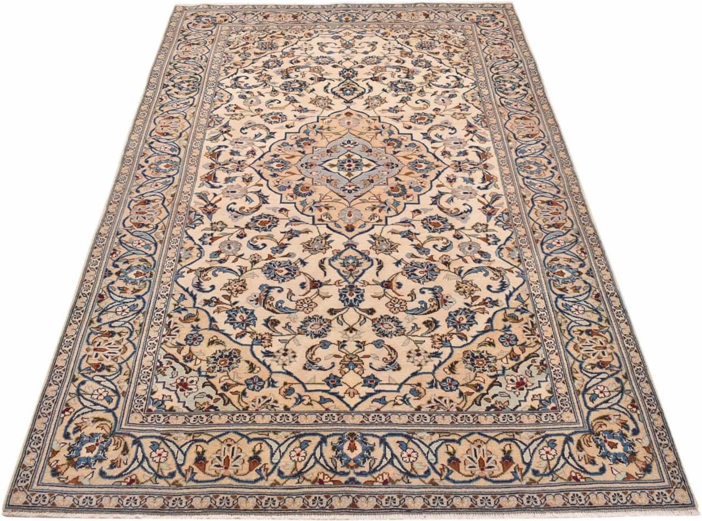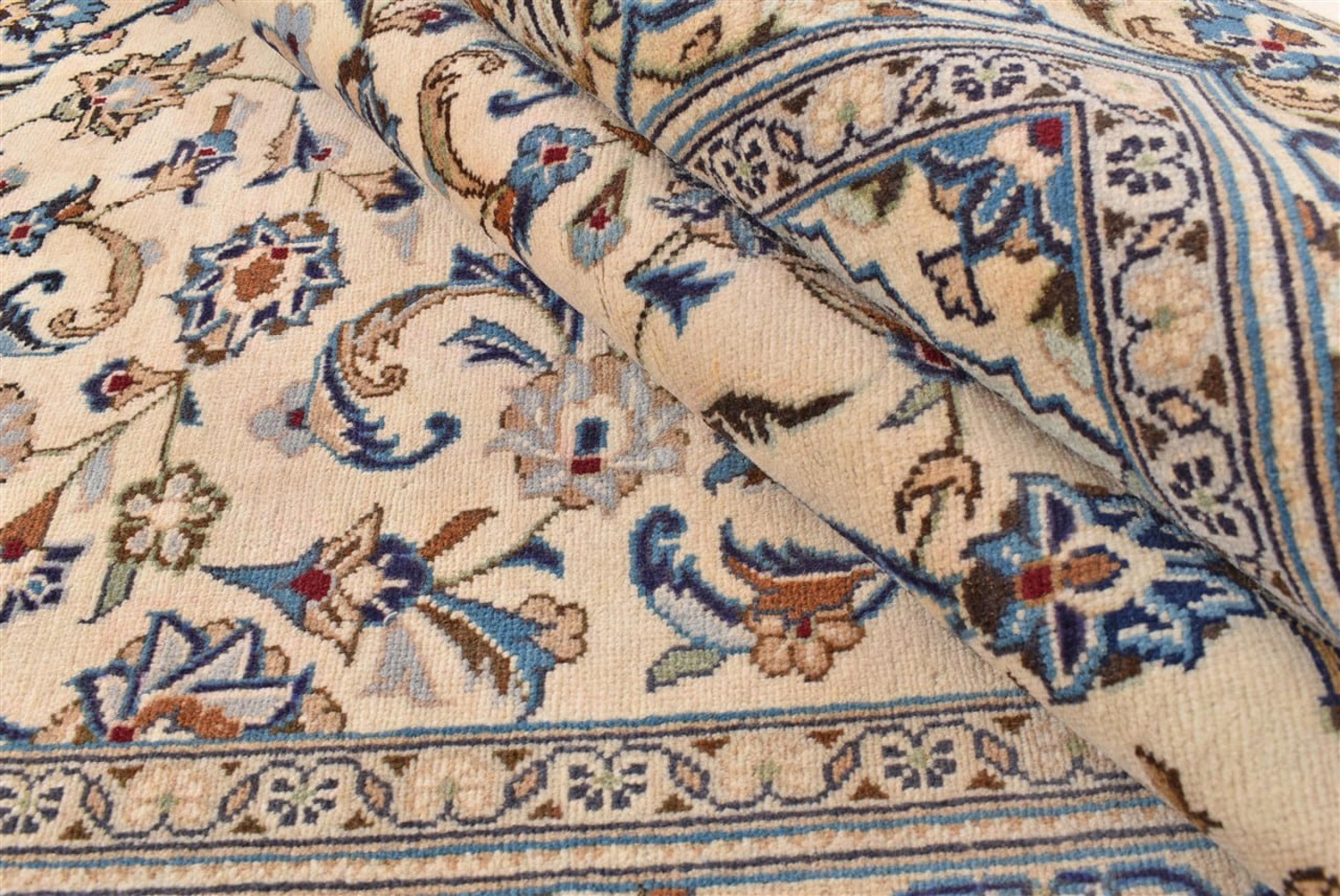 Hand knotted rugs from the city of Kashan (Keshan) are known worldwide. Not only do these Persian rugs have a very popular design, but their quality is undisputedly one of the best. In the Persian Empire the city was considered one of the most important trading places along the famous Silk Road. Kashan rugs usually have a central medallion, floral ornaments and a red background. They are made of high-quality sheep's wool and vegetable dyes.