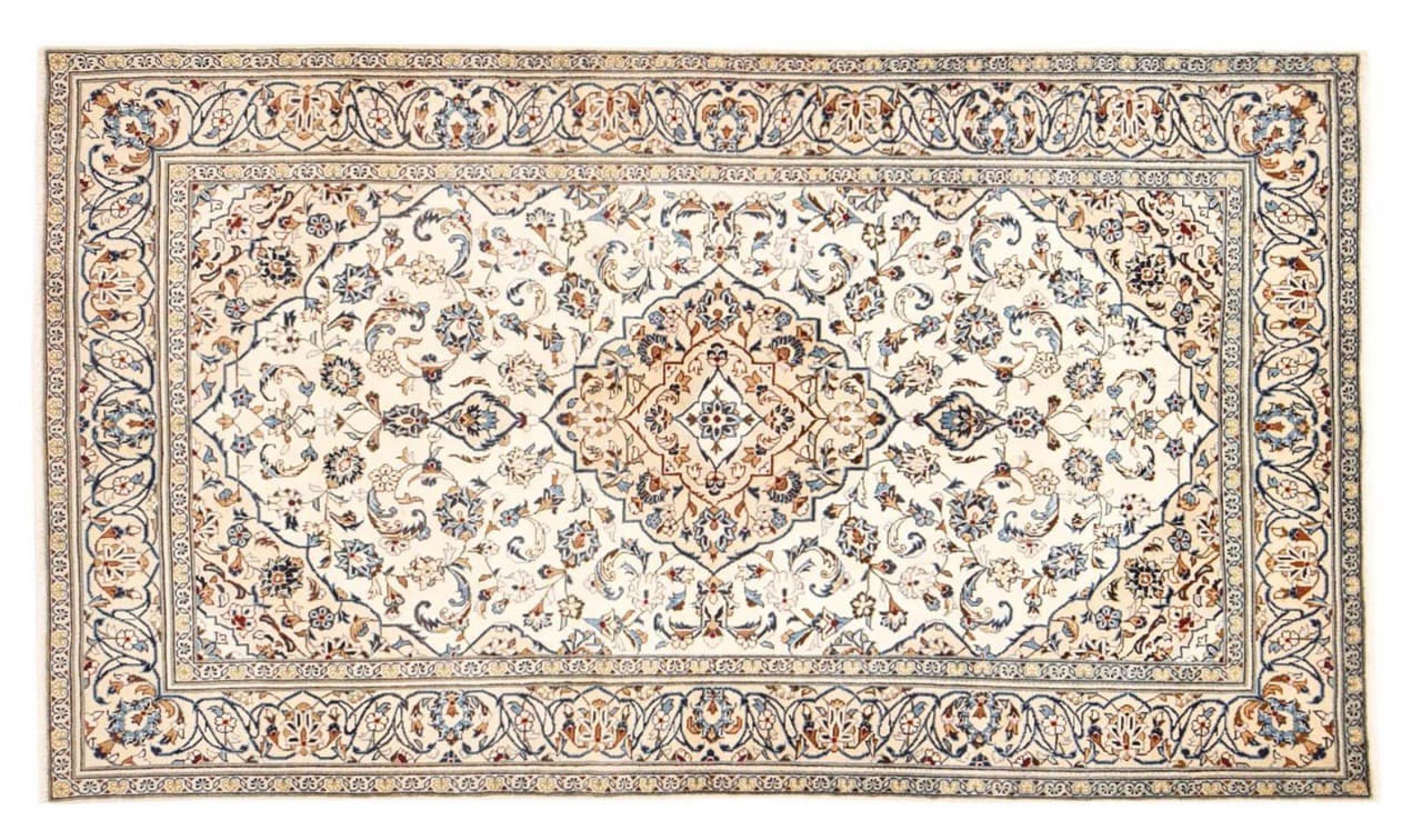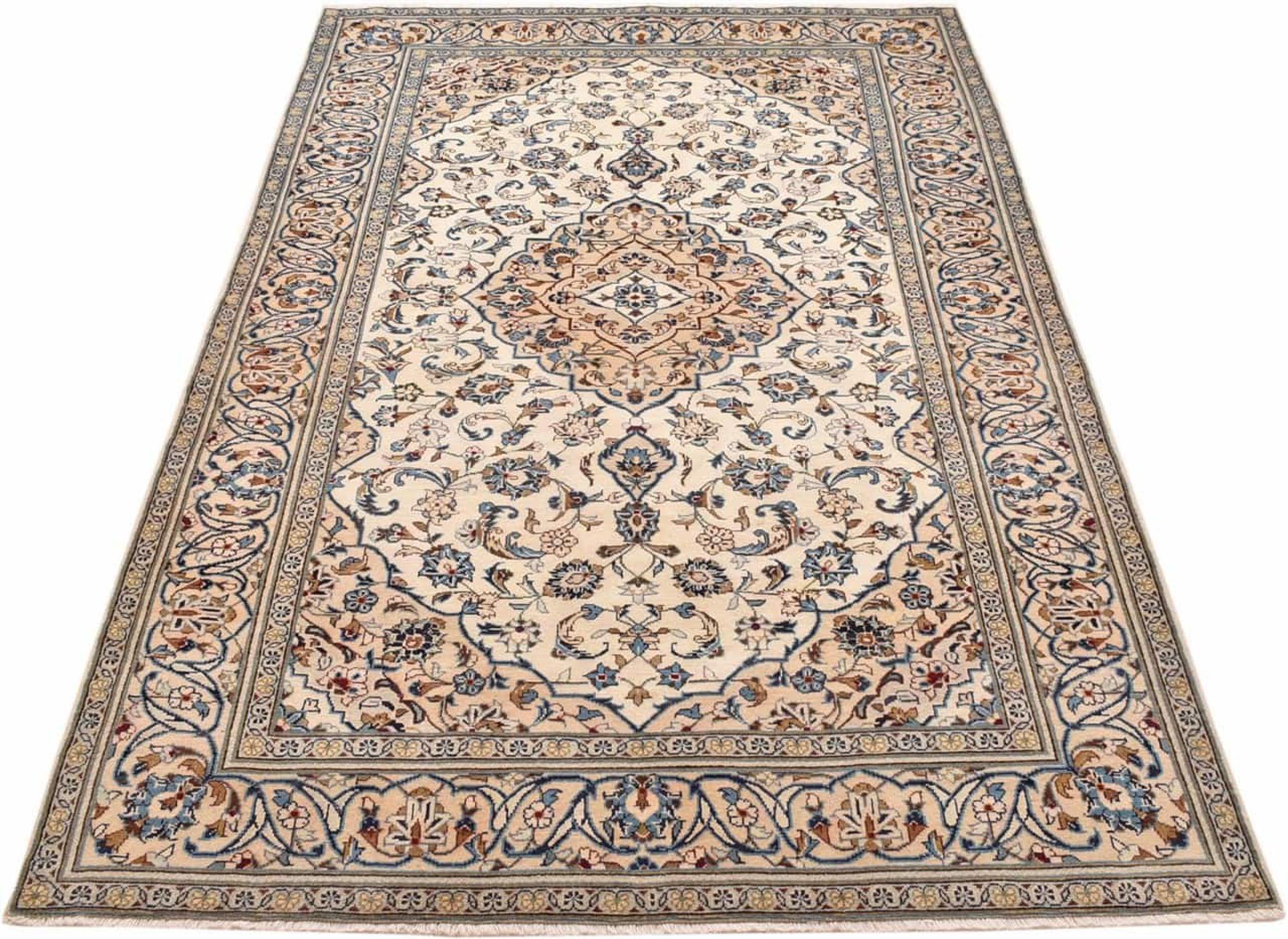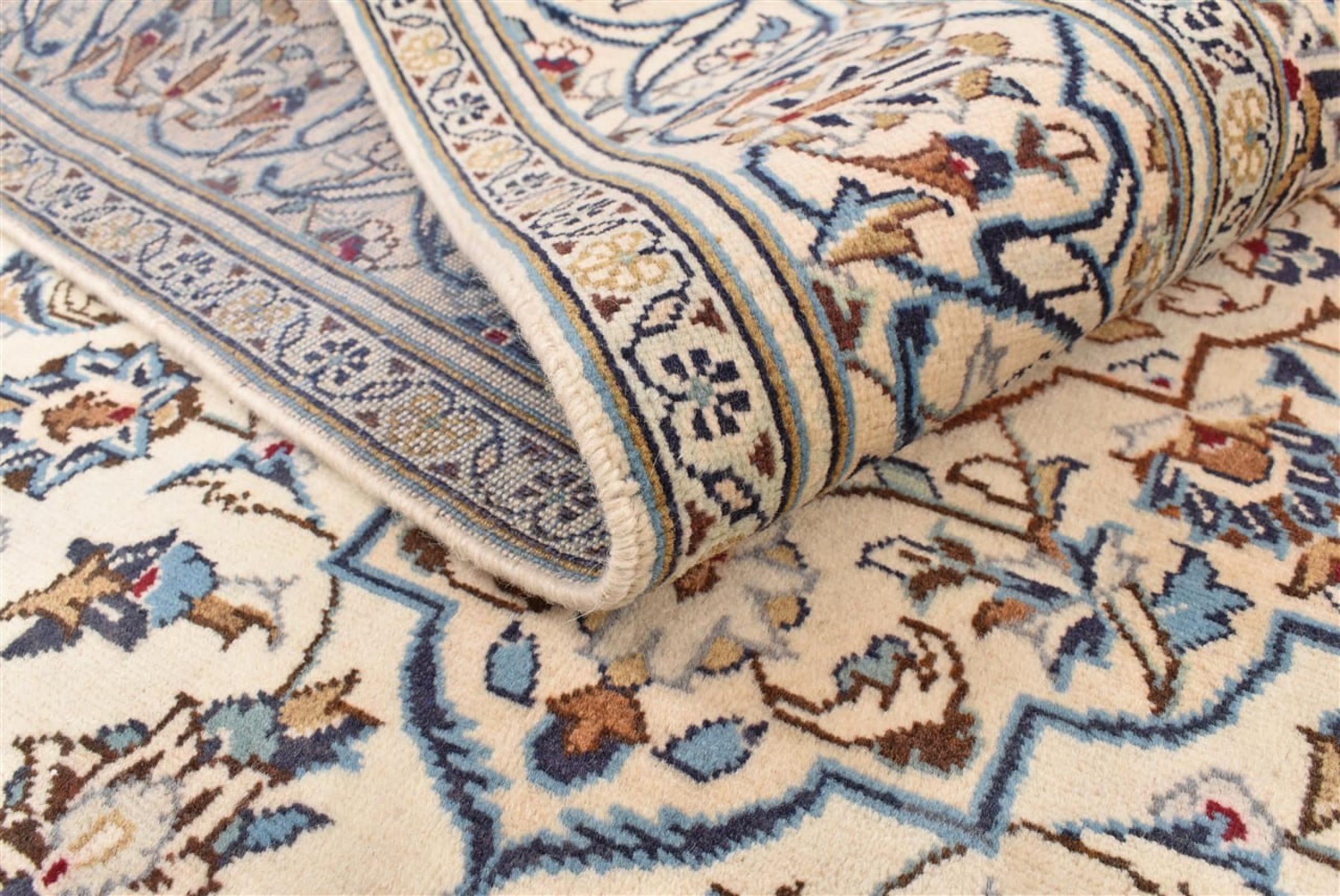Hand knotted rugs from the city of Kashan (Keshan) are known worldwide. Not only do these Persian rugs have a very popular design, but their quality is undisputedly one of the best. In the Persian Empire the city was considered one of the most important trading places along the famous Silk Road. Kashan rugs usually have a central medallion, floral ornaments and a red background. They are made of high-quality sheep's wool and vegetable dyes.