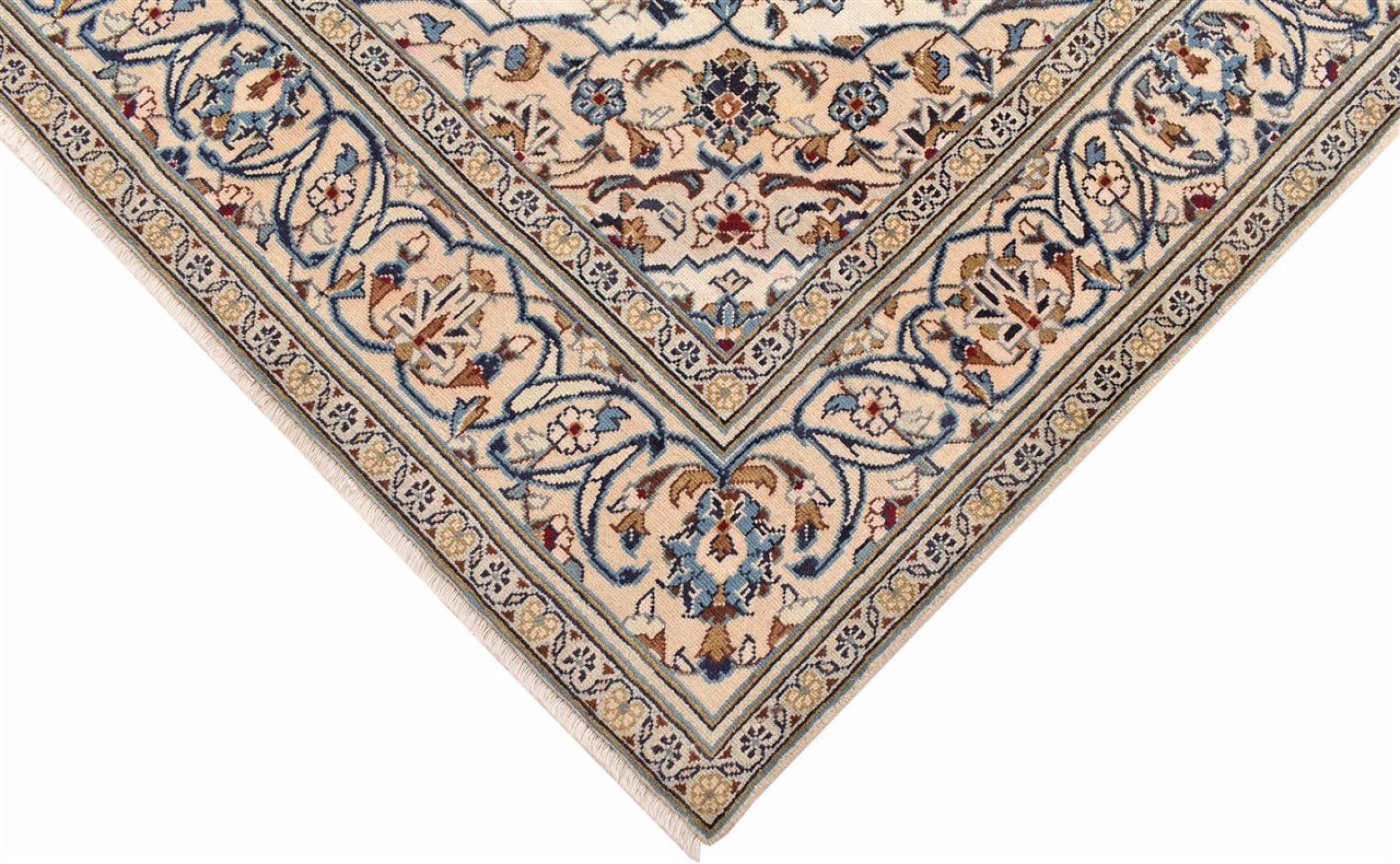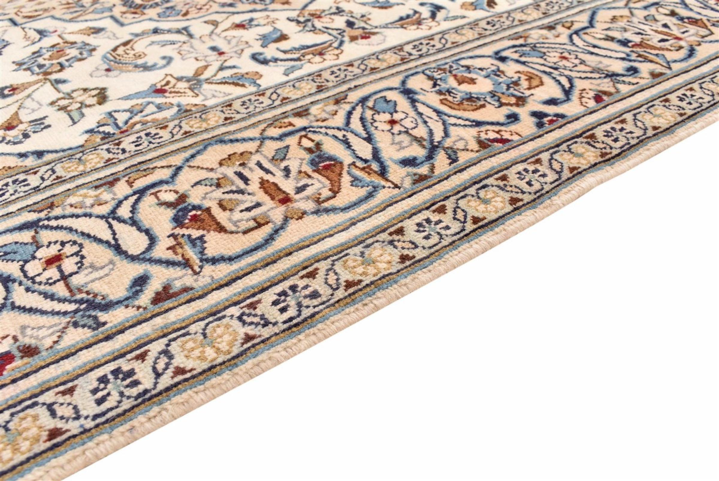 This carpet from Kashan (Keshan) is held in its very traditional and typical Persian design with beautiful ornaments. Kashan rugs are highly popular due to their exceptionally elegant design. These carpets originate from Kashan, a city on the ancient Silk Road. This carpet has been knotted by hand from high grade sheep wool and is going to be an one-of-a-kind highlight in your home.