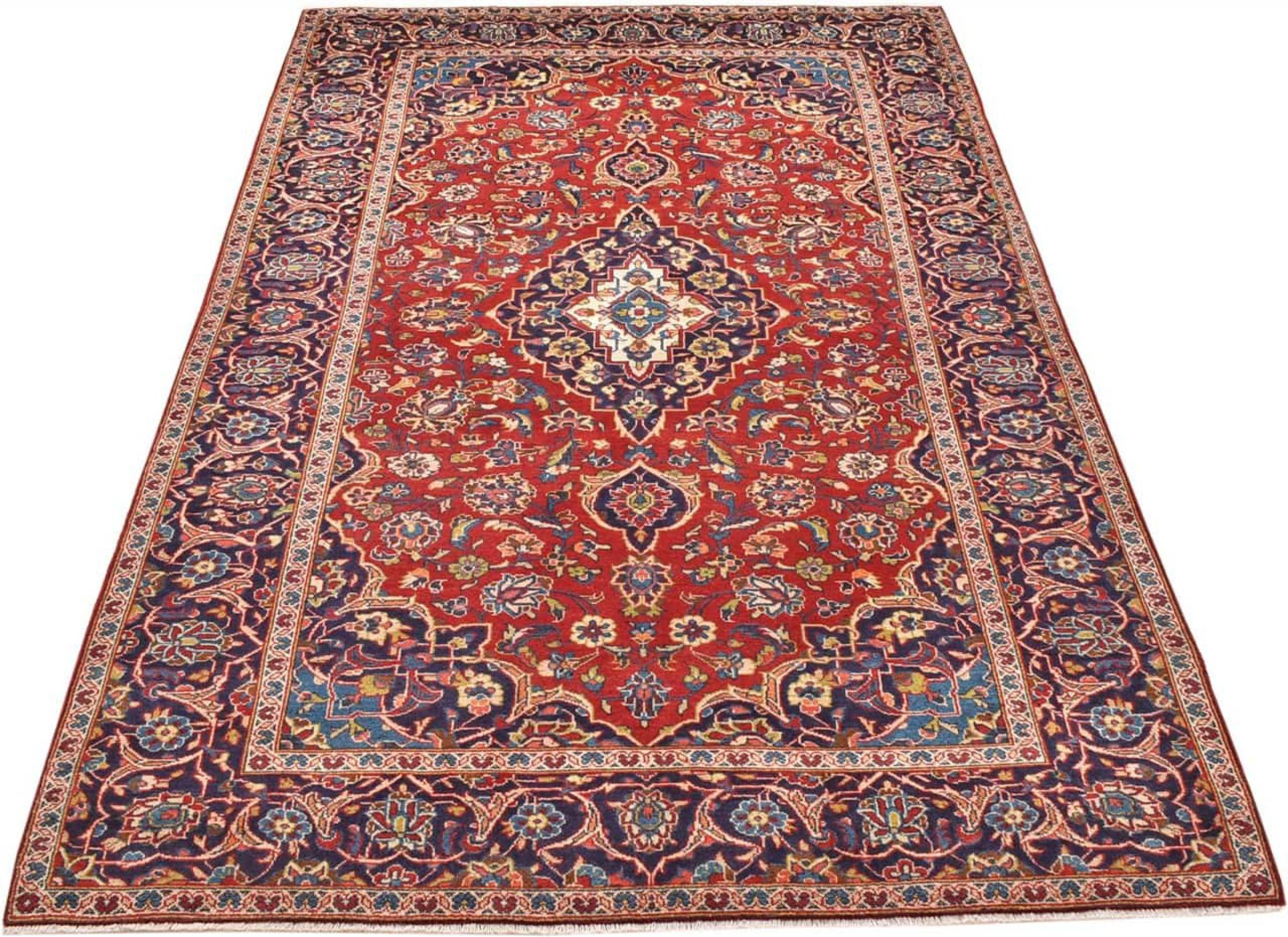 Hand knotted rugs from the city of Kashan (Keshan) are known worldwide. Not only do these Persian rugs have a very popular design, but their quality is undisputedly one of the best. In the Persian Empire the city was considered one of the most important trading places along the famous Silk Road. Kashan rugs usually have a central medallion, floral ornaments and a red background. They are made of high-quality sheep's wool and vegetable dyes.