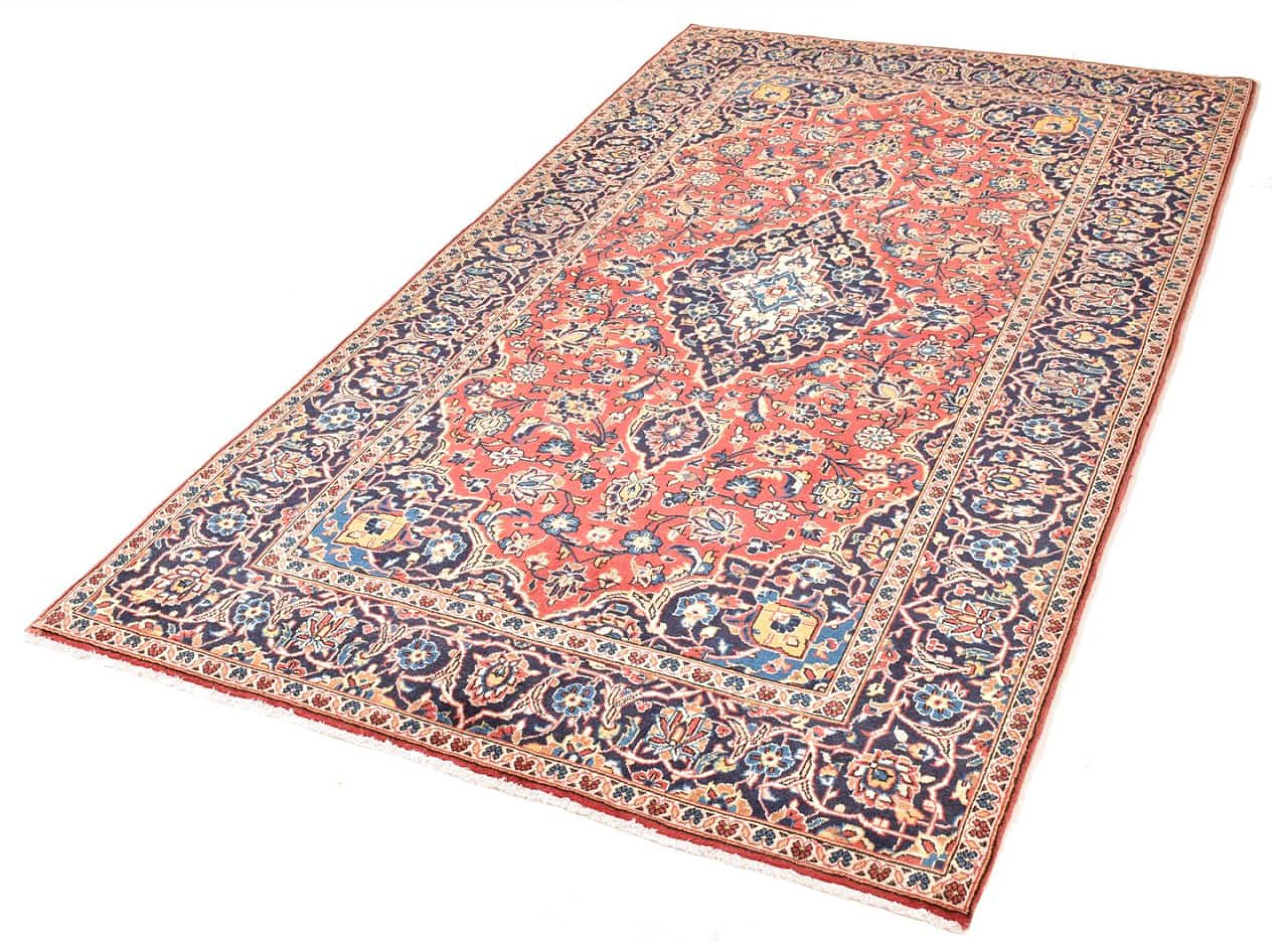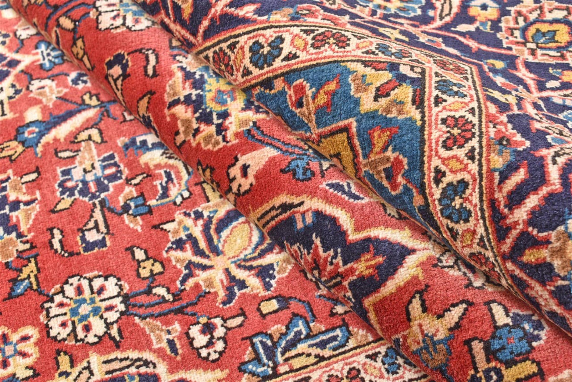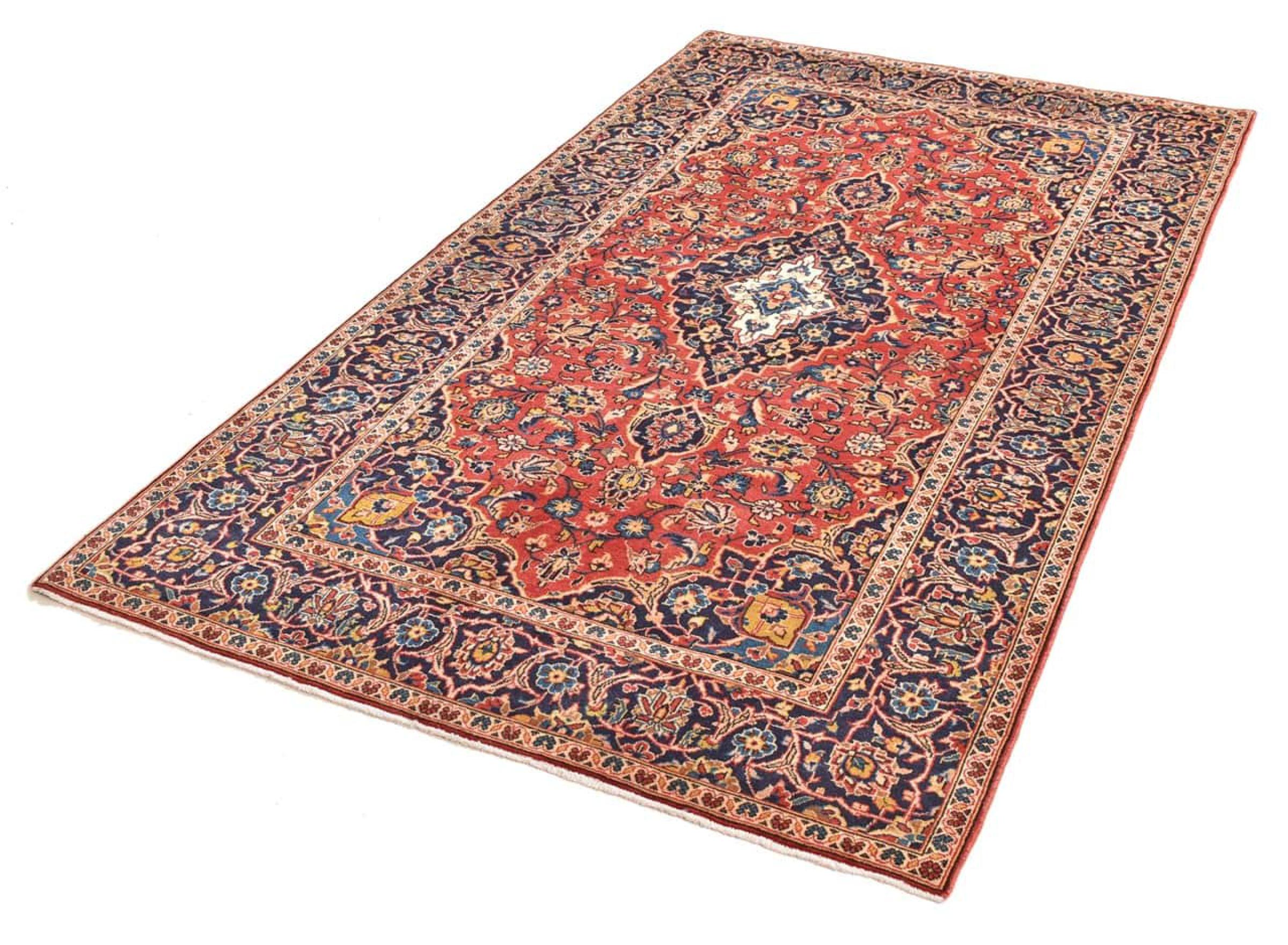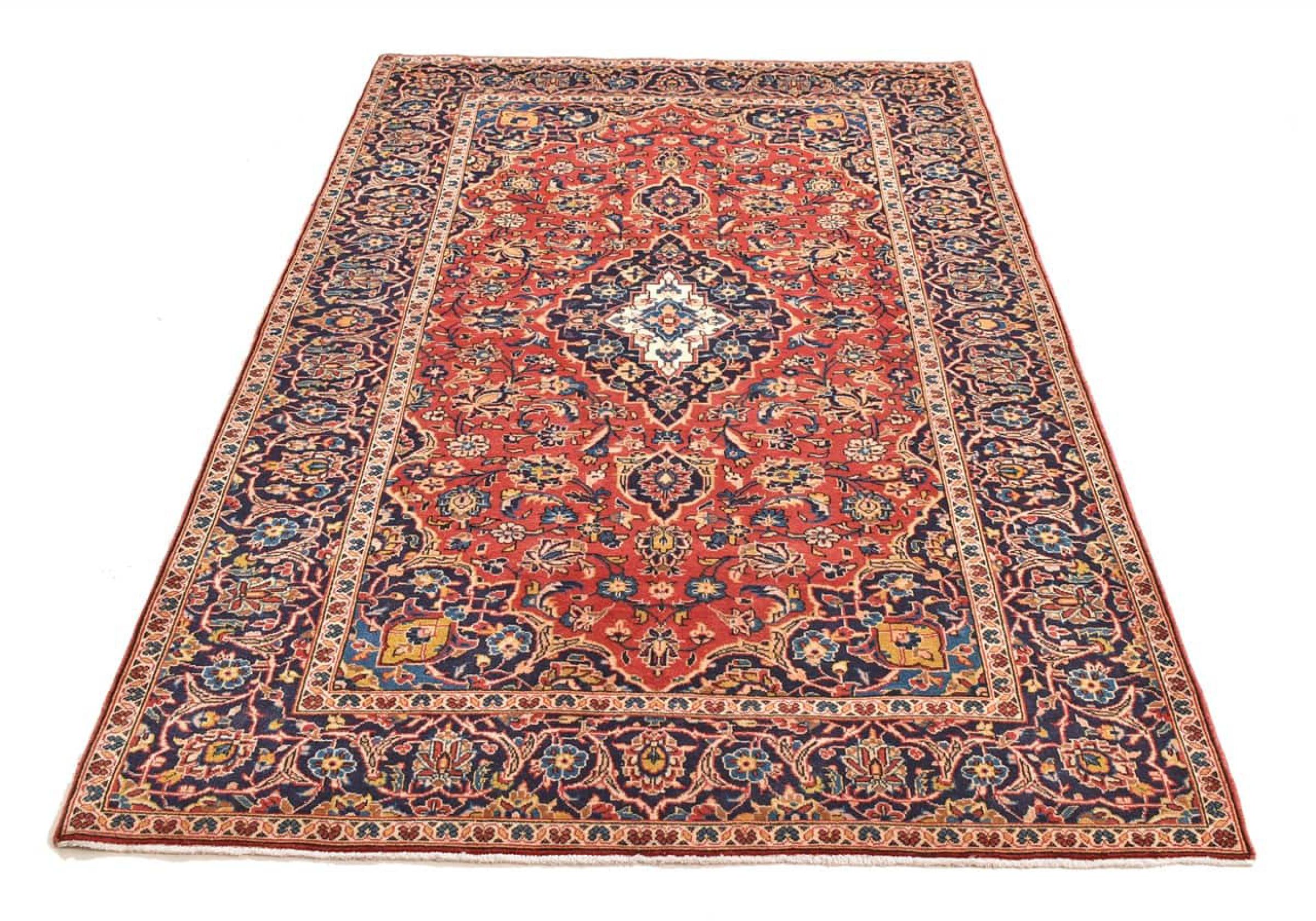Hand knotted rugs from the city of Kashan (Keshan) are known worldwide. Not only do these Persian rugs have a very popular design, but their quality is undisputedly one of the best. In the Persian Empire the city was considered one of the most important trading places along the famous Silk Road. Kashan rugs usually have a central medallion, floral ornaments and a red background. They are made of high-quality sheep's wool and vegetable dyes.