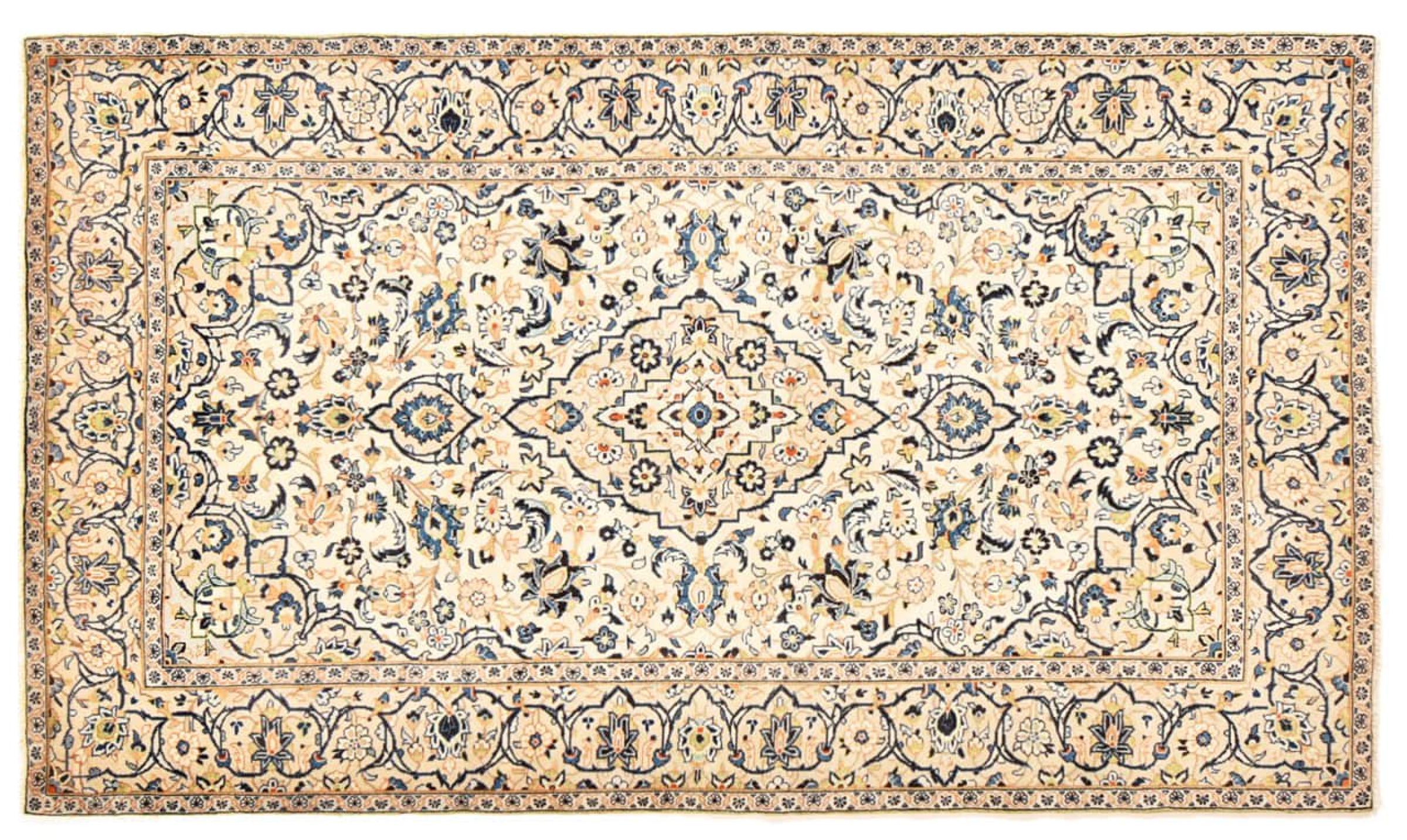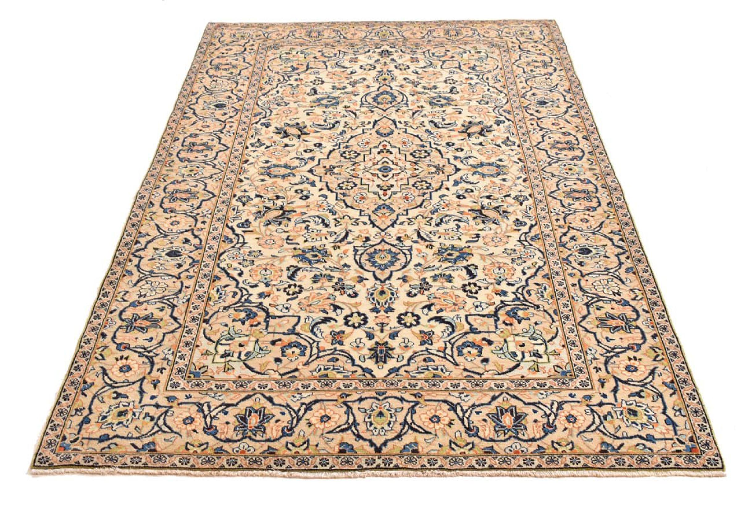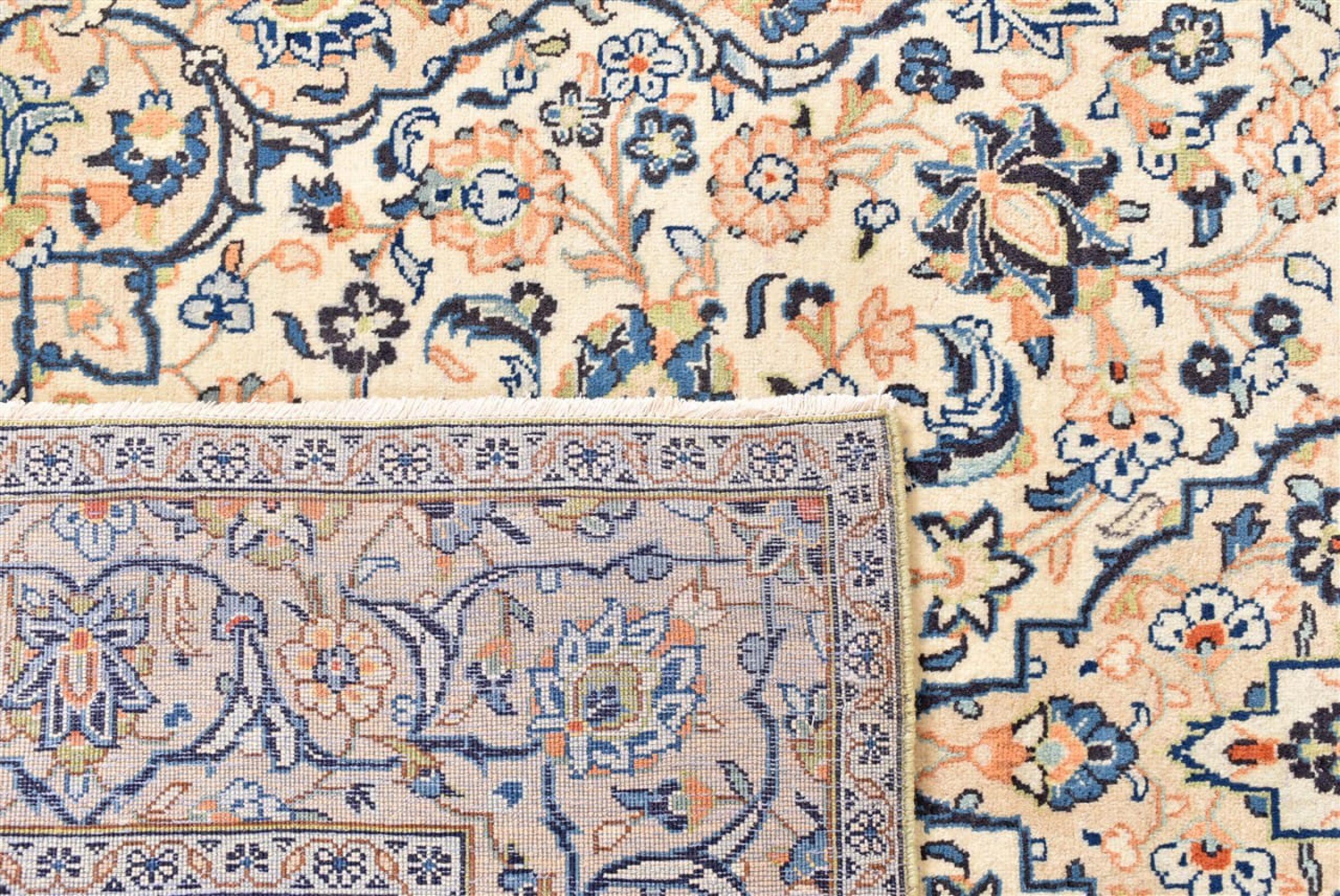 Hand knotted rugs from the city of Kashan (Keshan) are known worldwide. Not only do these Persian rugs have a very popular design, but their quality is undisputedly one of the best. In the Persian Empire the city was considered one of the most important trading places along the famous Silk Road. Kashan rugs usually have a central medallion, floral ornaments and a red background. They are made of high-quality sheep's wool and vegetable dyes.